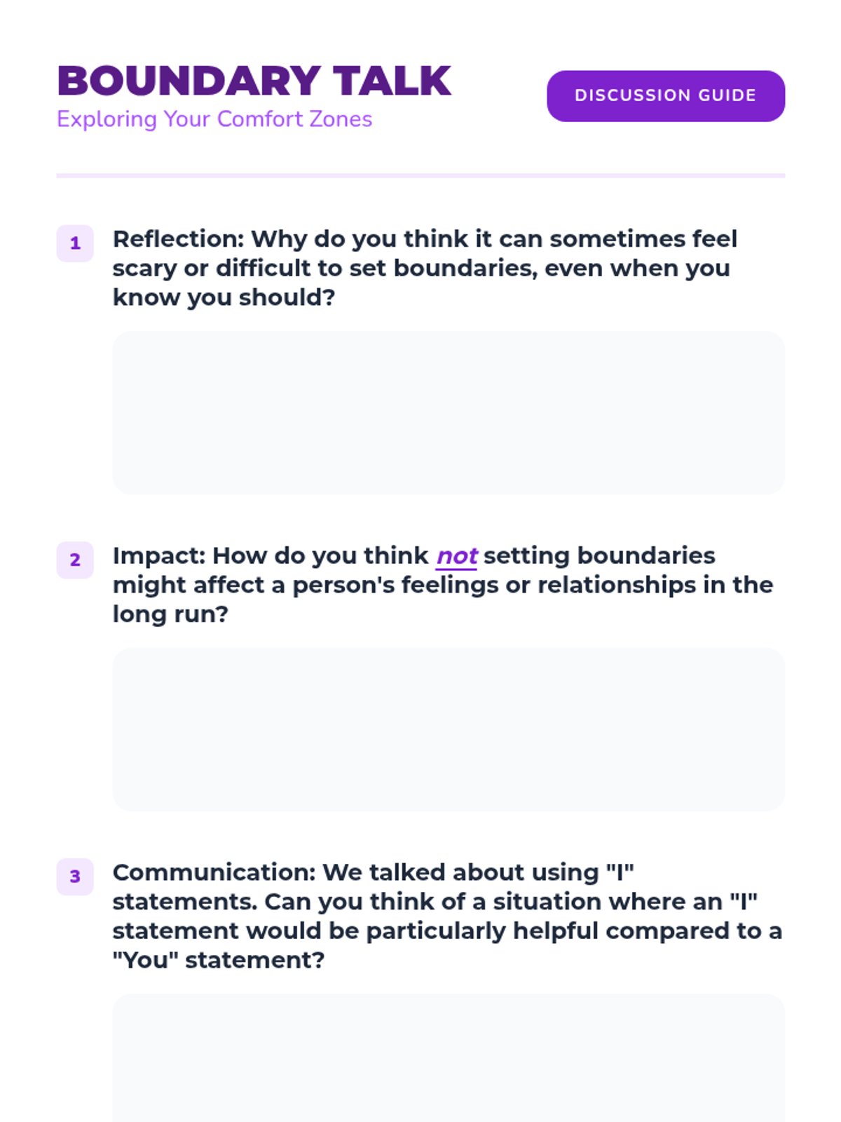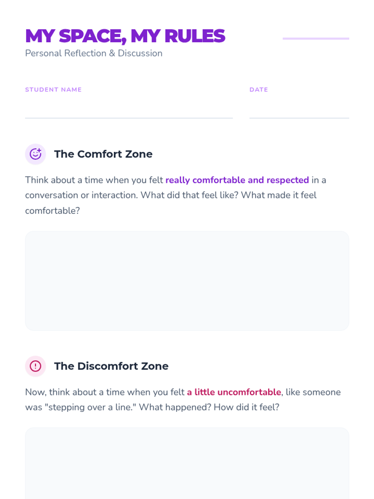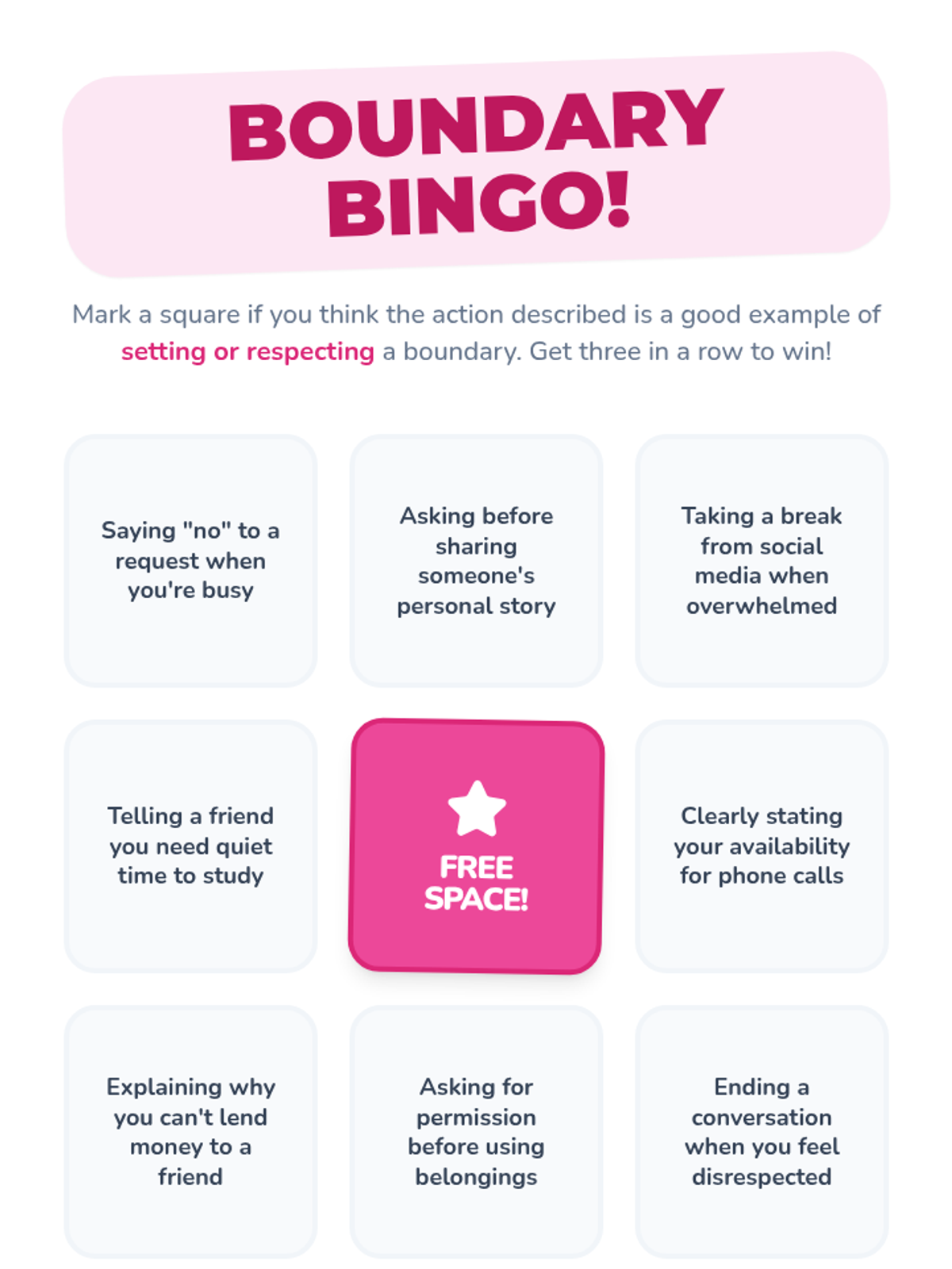 This individual lesson helps an 8th-grade female student understand and practice setting healthy boundaries in her relationships through engaging activities, discussions, and role-play.
