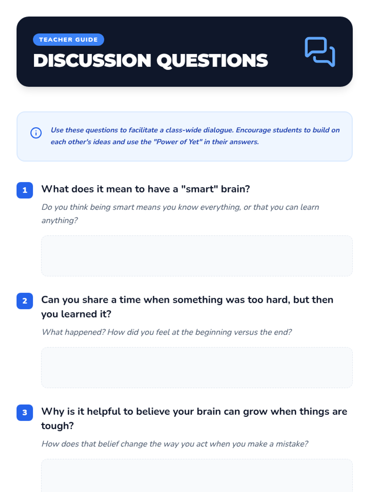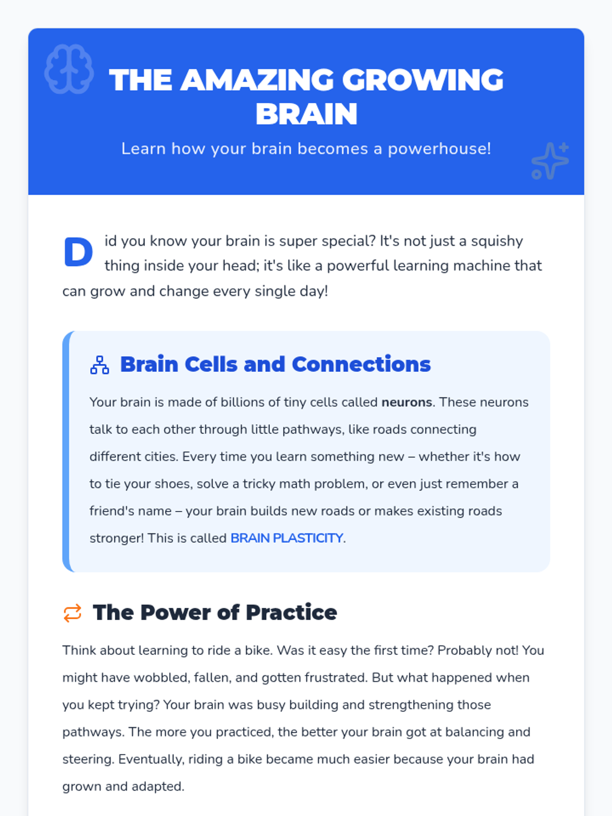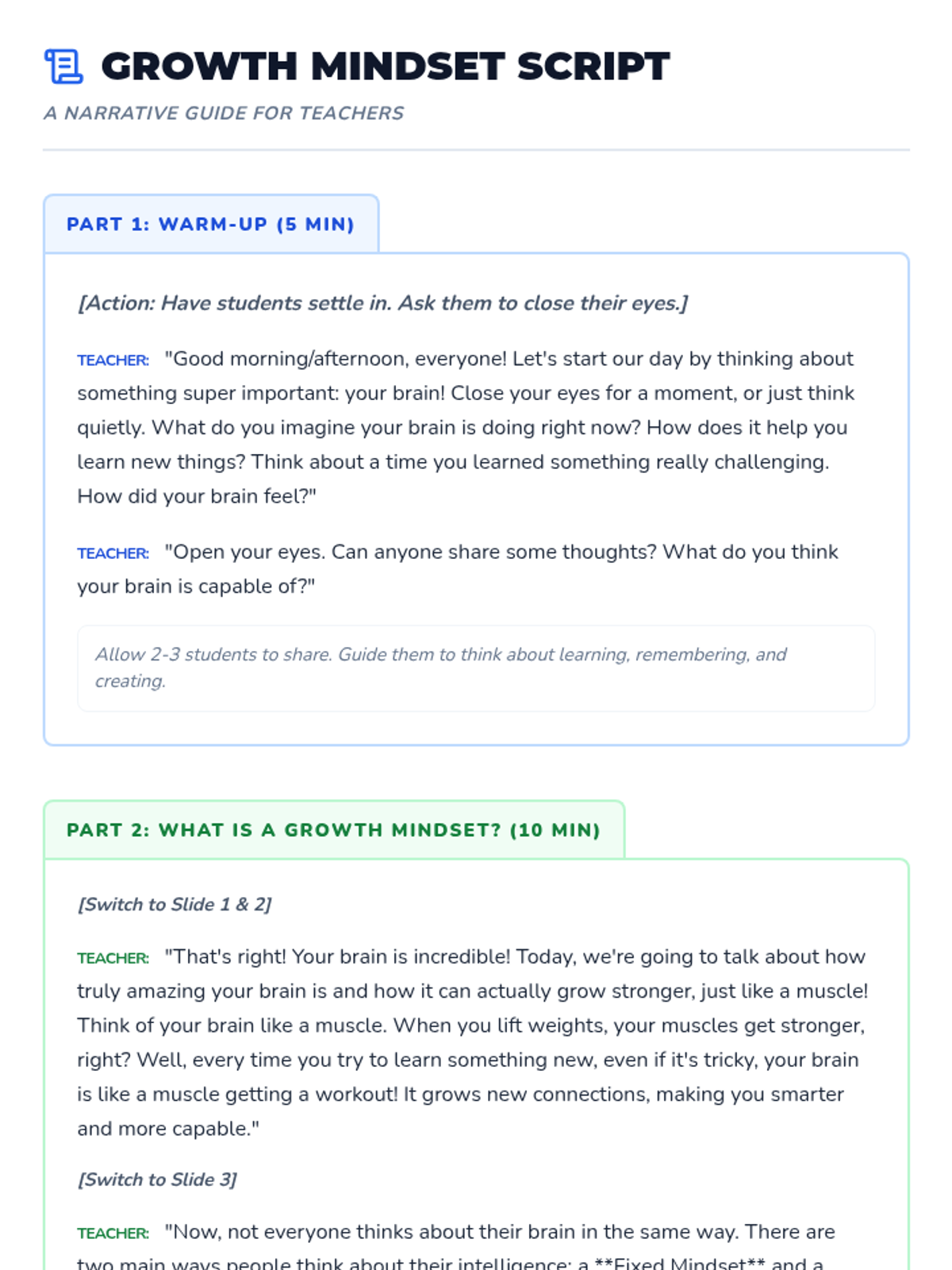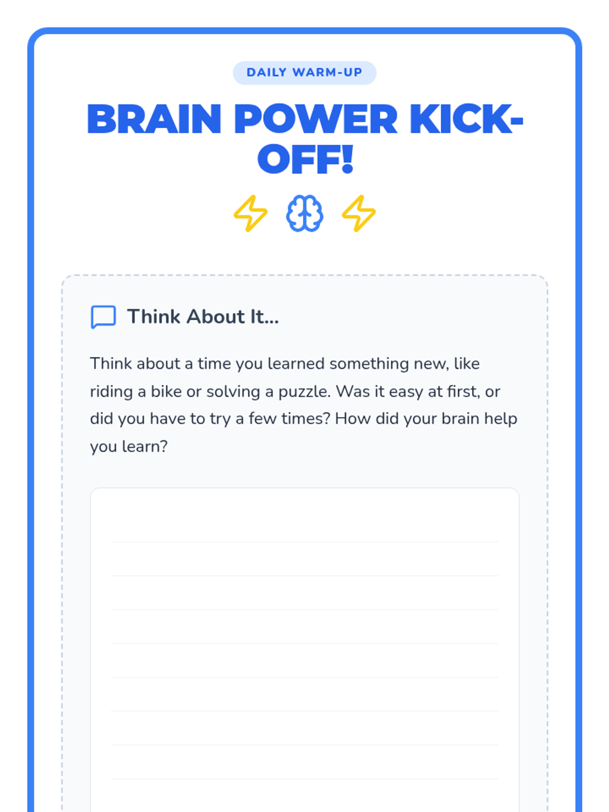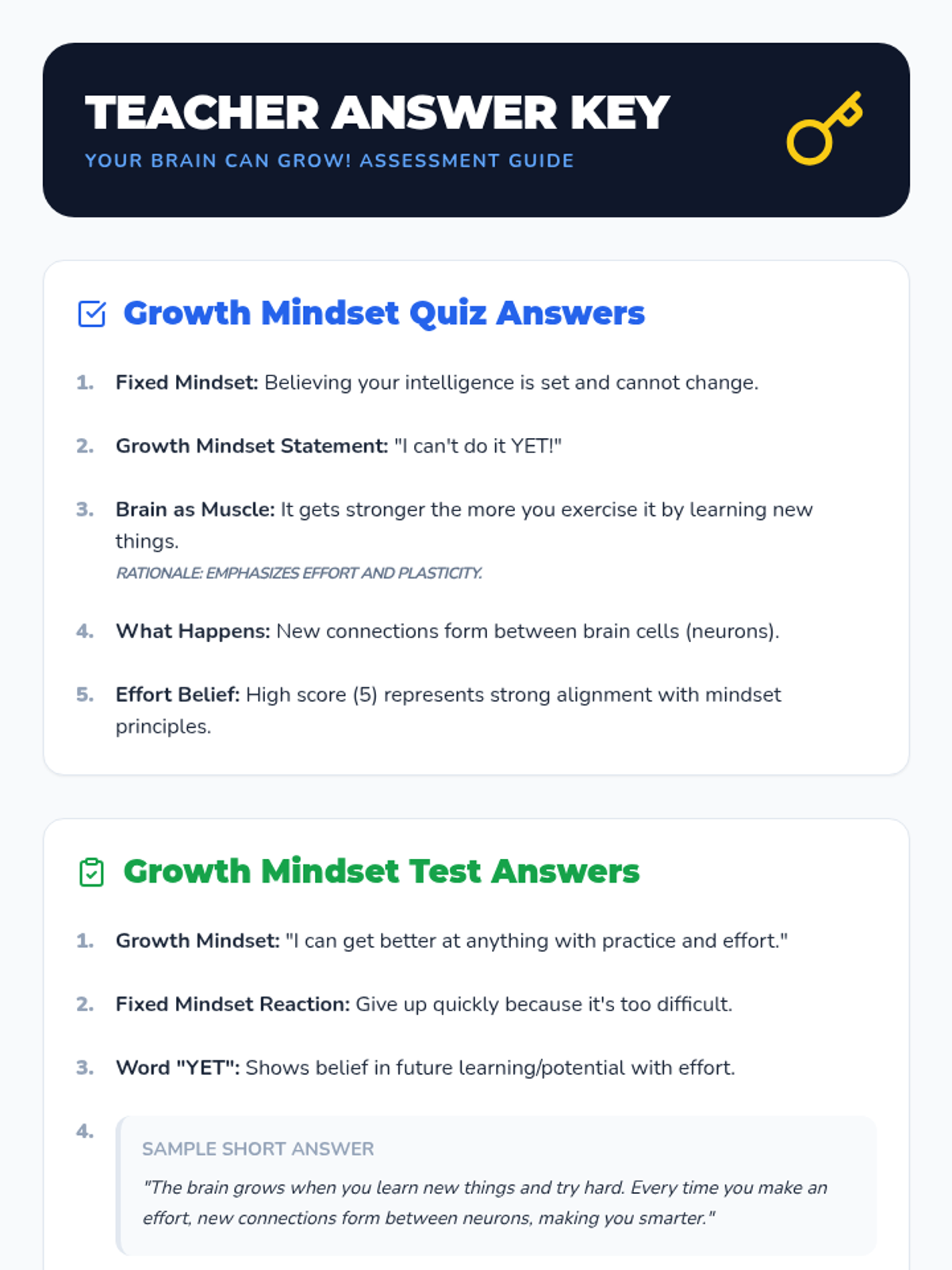 A 60-minute interactive lesson for elementary students that explores brain plasticity and the difference between fixed and growth mindsets through videos, reading, and role-play.