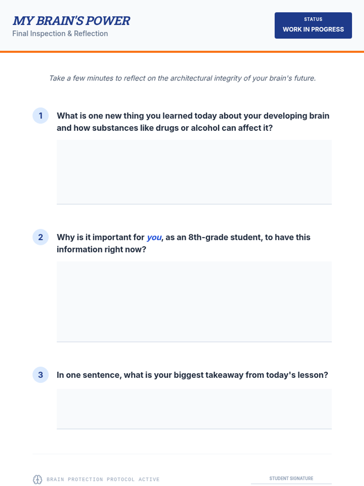 A comprehensive, in-depth unit on mental health literacy, identifying system alerts (Anxiety, Depression, Anger), and building a proactive coping toolkit. Includes detailed reading, scenario analysis, and a 10-question final assessment.