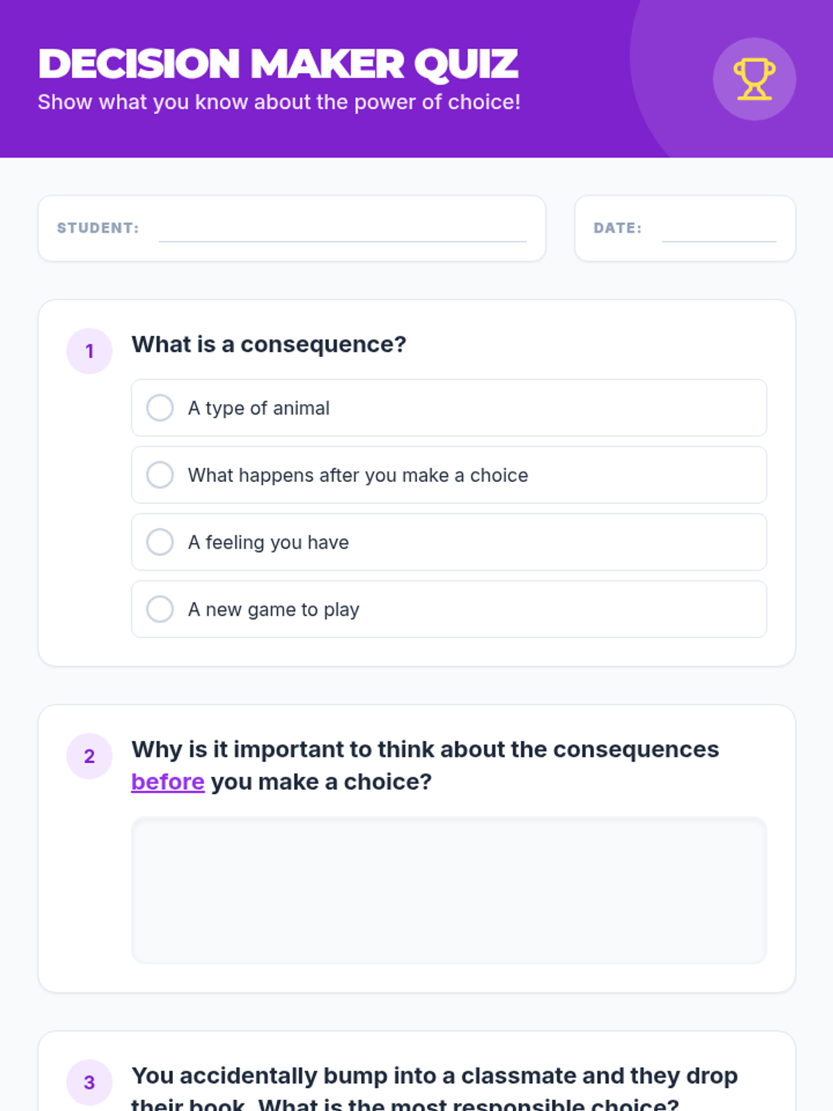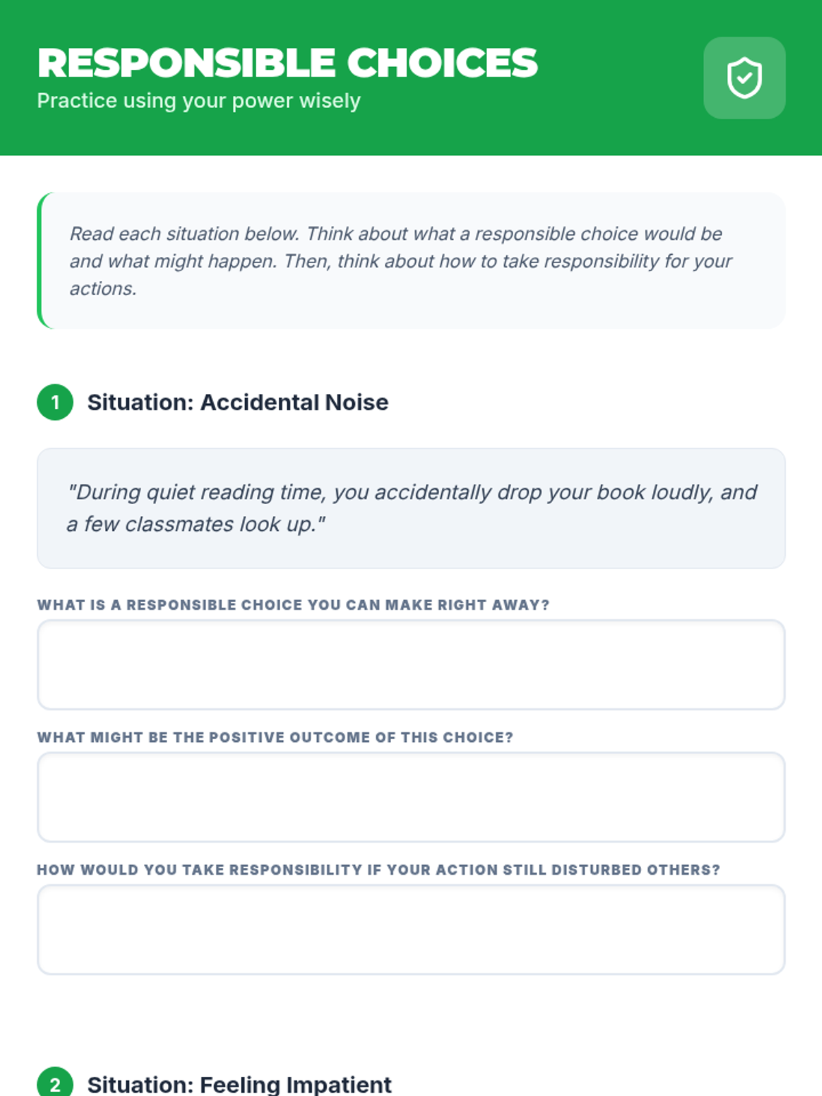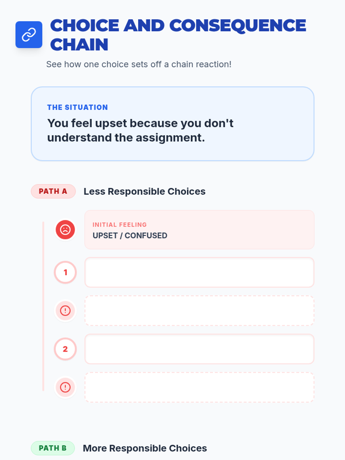 A 25-minute individual session helping students understand the impact of their choices and develop strategies for responsible decision-making in the classroom.