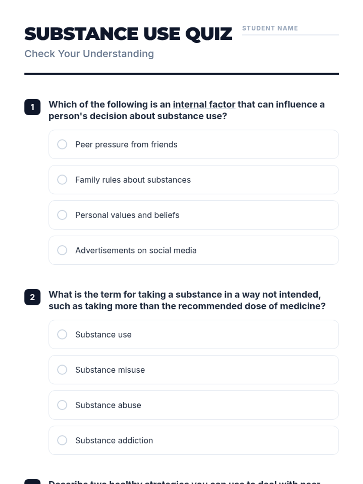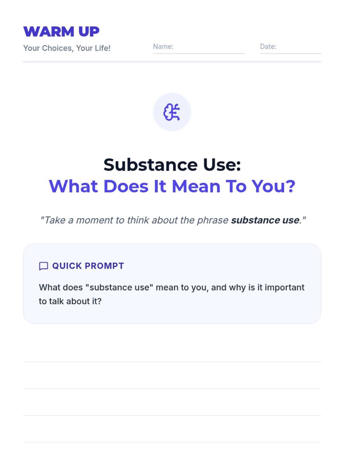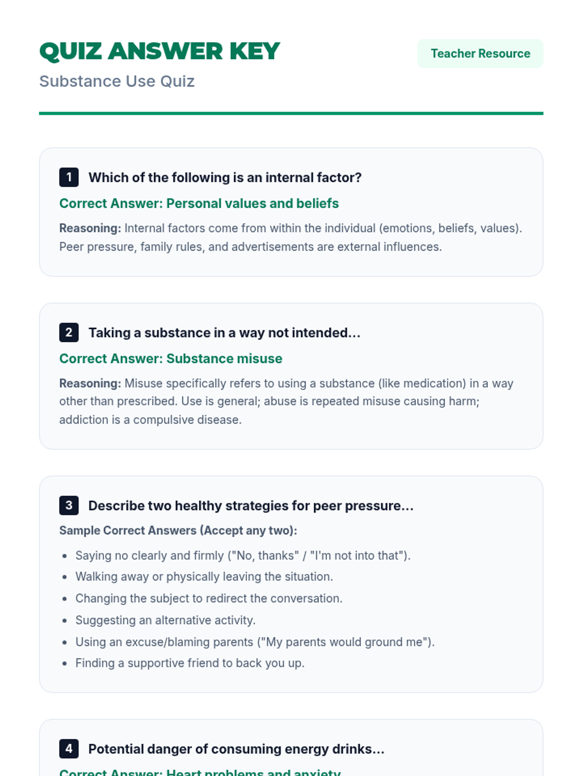 A comprehensive lesson examining the differences between substance use, misuse, and abuse, focusing on vaping, tobacco, alcohol, marijuana, and drugs.