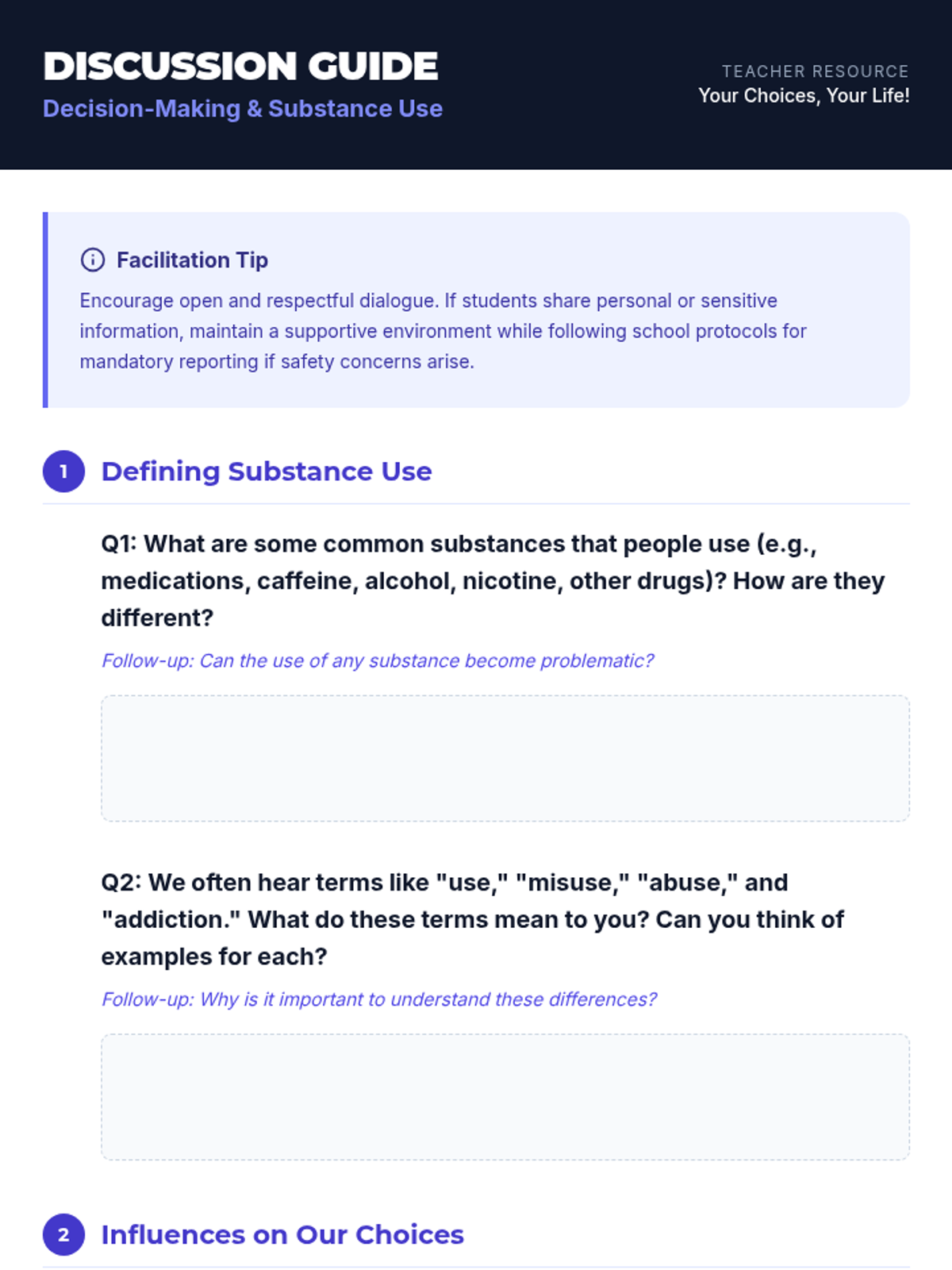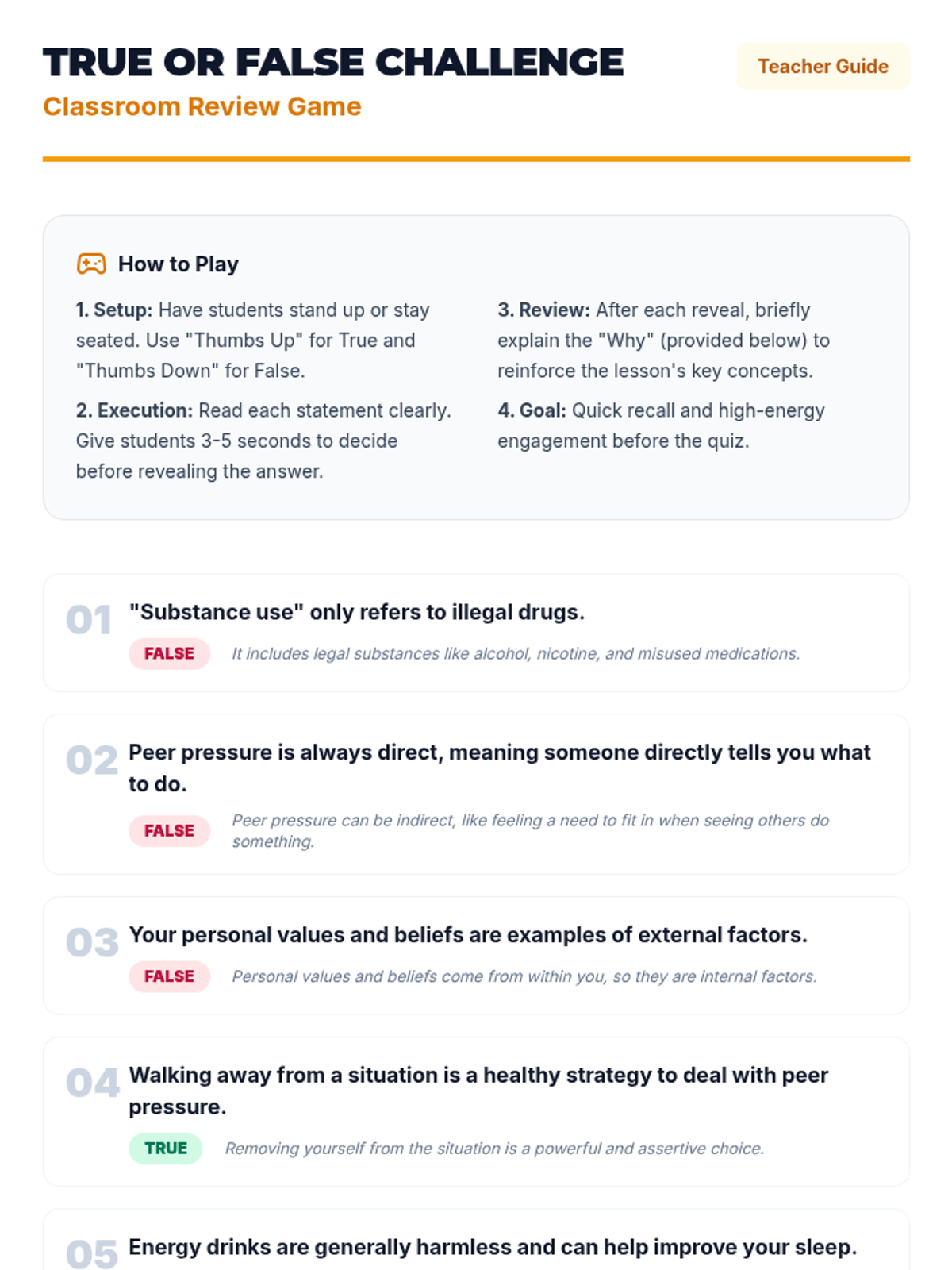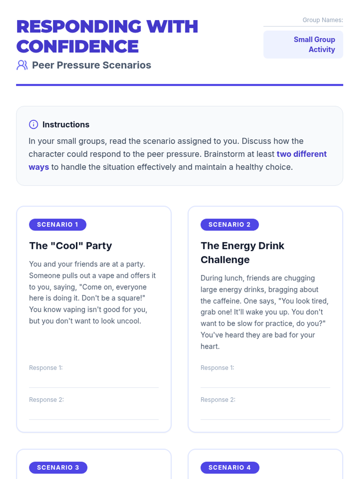 A high-energy, 30-minute lesson where 7th graders practice refusal skills through immersive role-play scenarios that test their loyalty and values.
