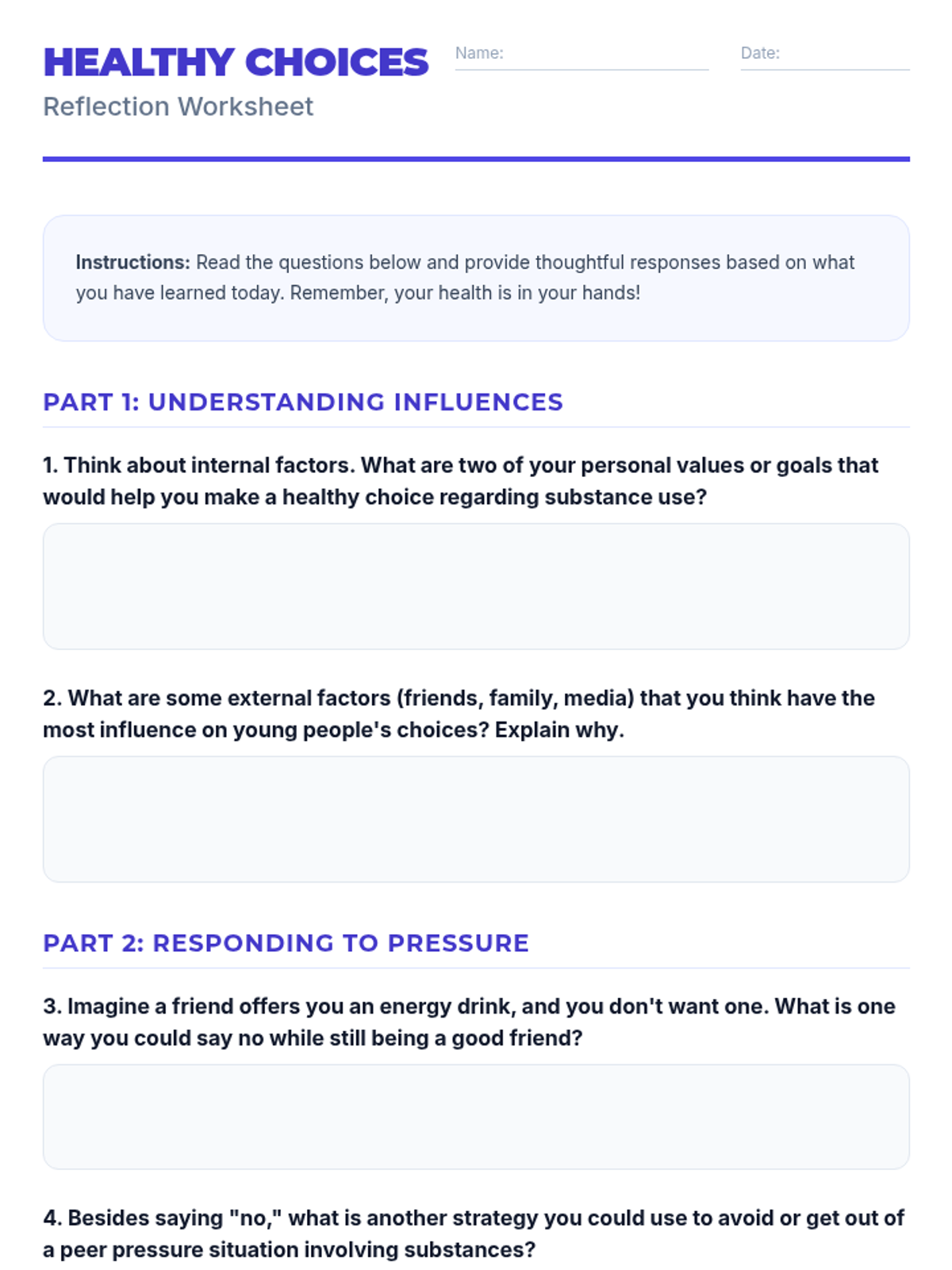 A comprehensive 7th-grade health lesson exploring the distinction between helpful and harmful substances, the physical and social effects of substance use, and the internal and external factors that influence choices.