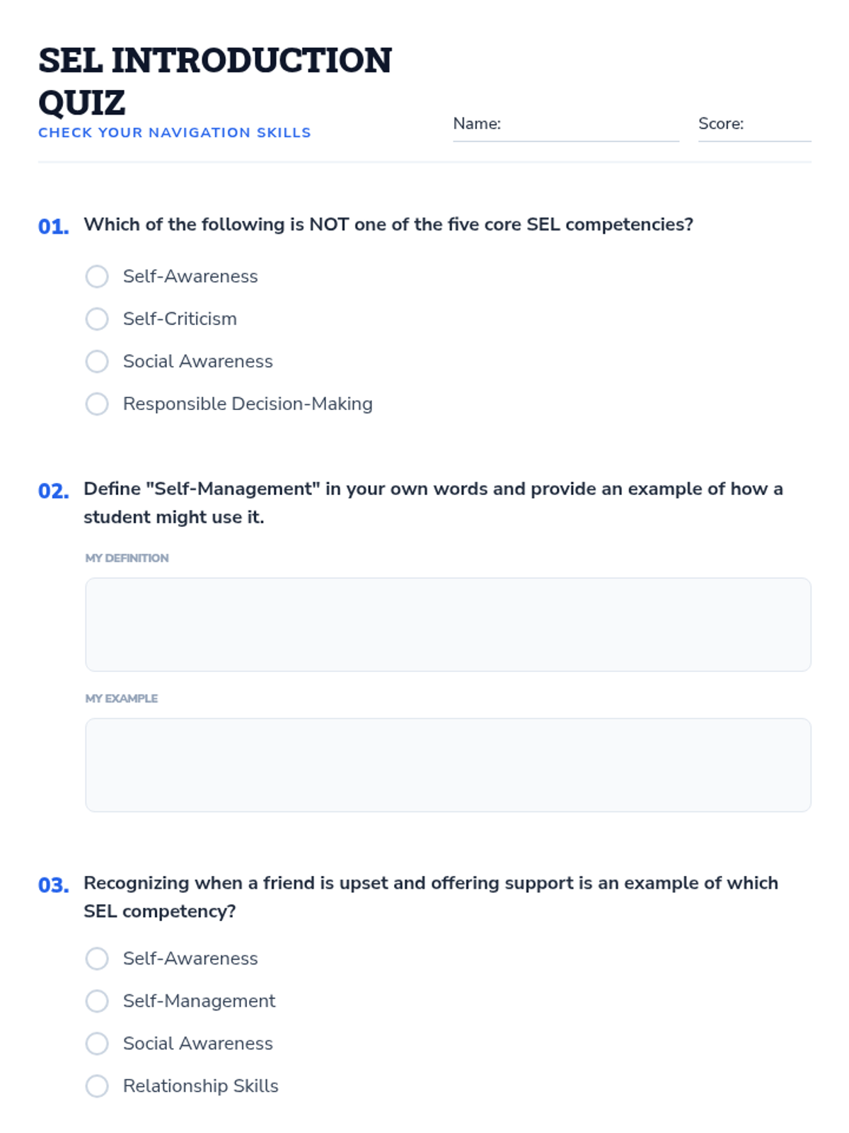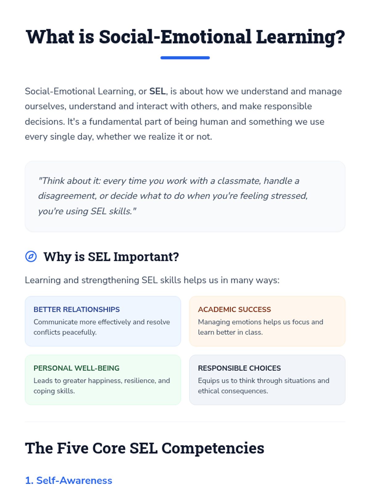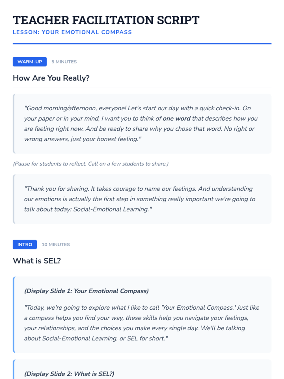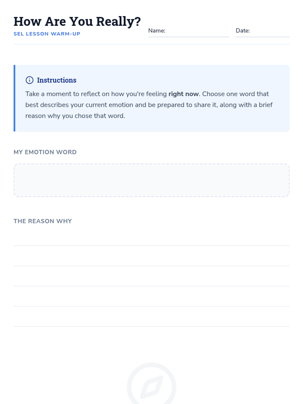 A foundational SEL lesson for 9th-10th graders exploring the five core competencies (Self-Awareness, Self-Management, Social Awareness, Relationship Skills, Responsible Decision-Making) using a navigation-themed 'Emotional Compass' metaphor.