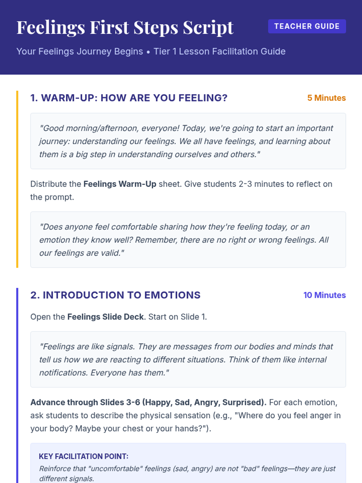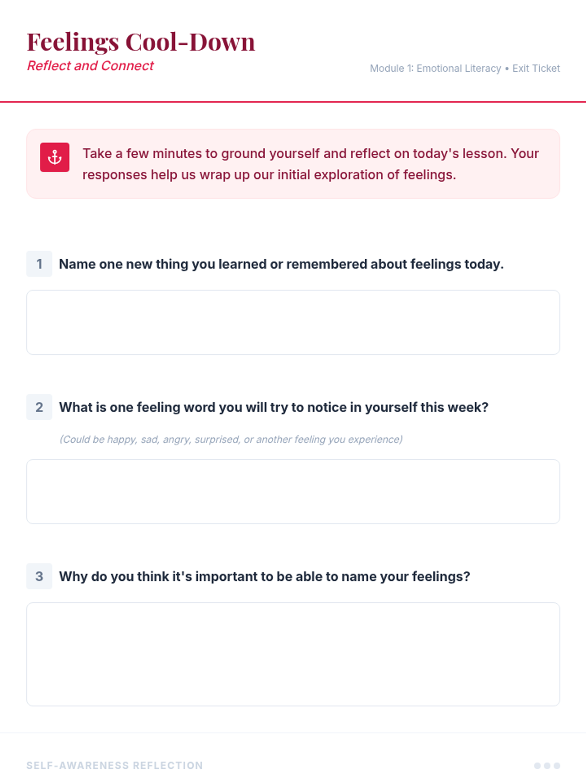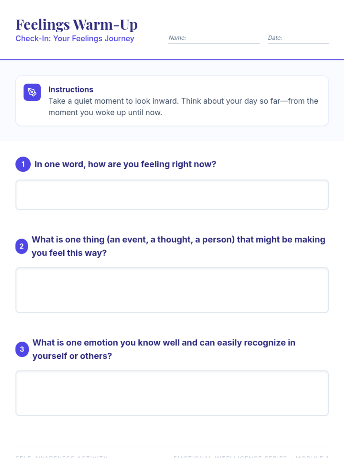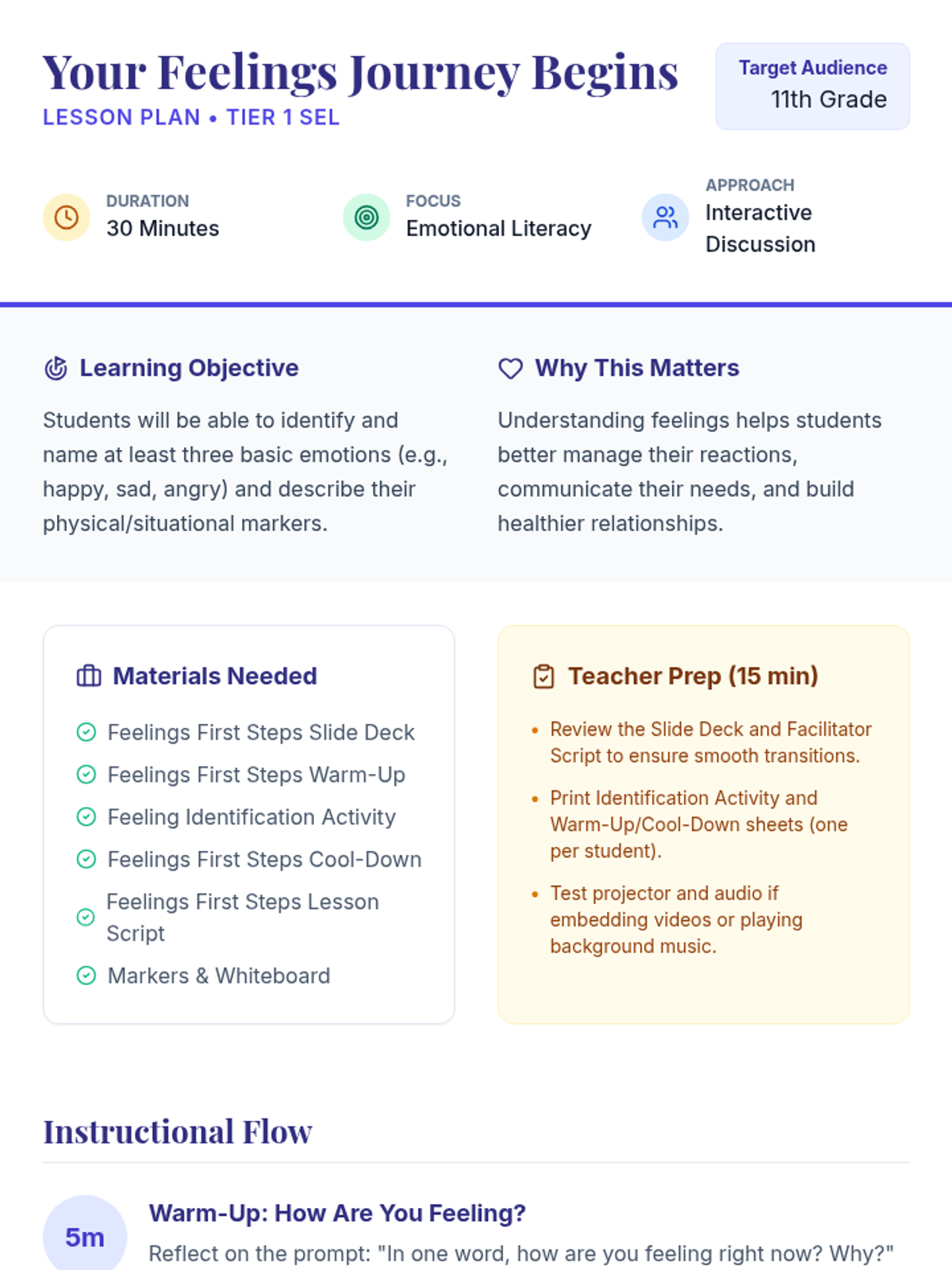 A foundational Tier 1 SEL lesson for 11th-grade students to build emotional literacy by identifying and naming basic emotions as a first step toward self-awareness.