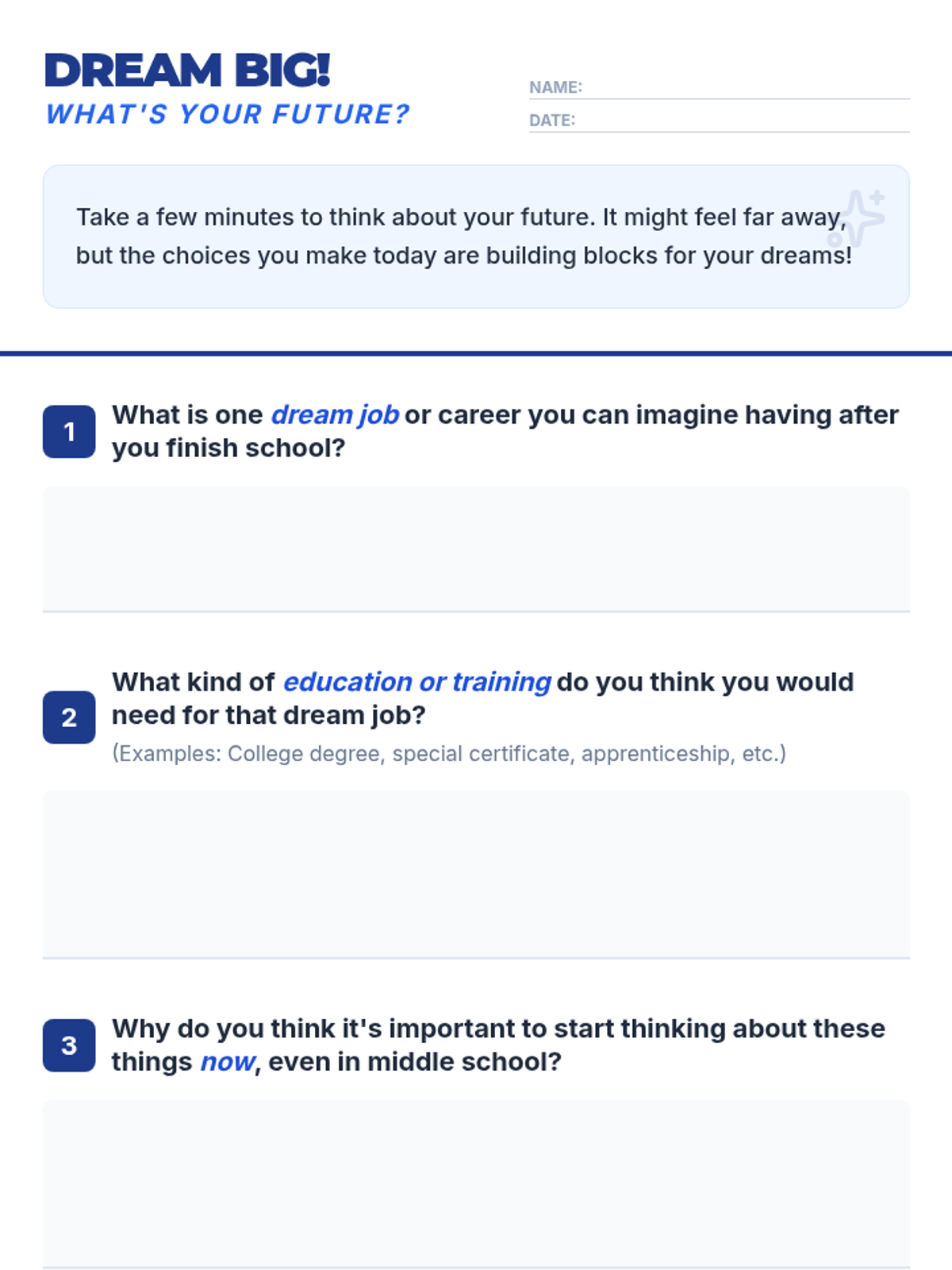 A synthesis lesson where students combine their knowledge of clusters, paths, and skills to create a personalized career vision.