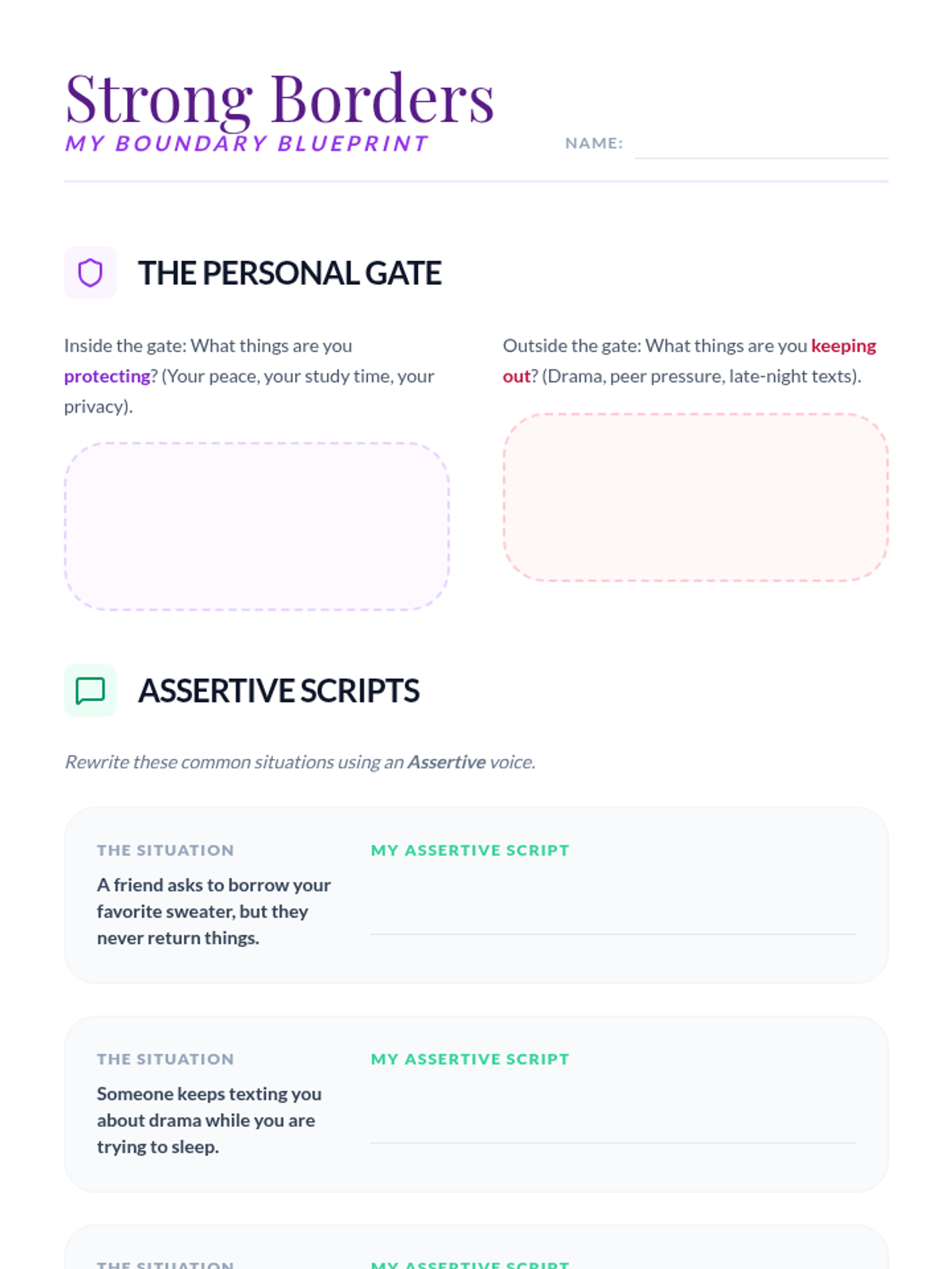 Learning to set healthy boundaries in friendships and romantic relationships while practicing assertive communication.