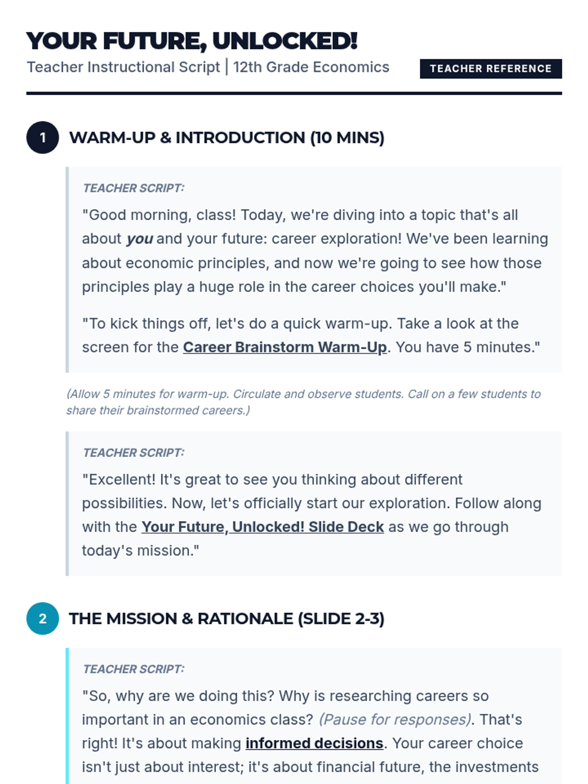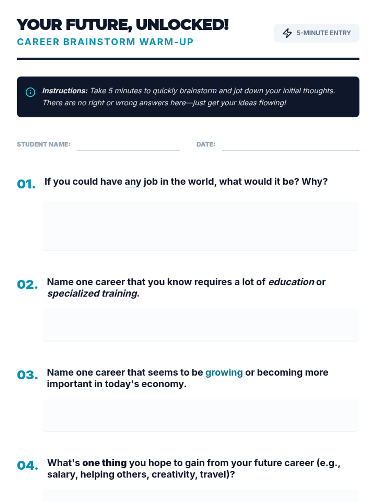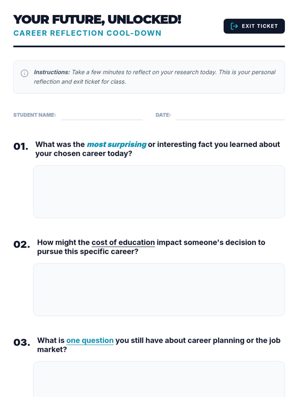 This lesson empowers 12th-grade economics students to research potential future careers, understanding the economic landscape, educational requirements, and job market outlook. Students will gain practical skills in career exploration and financial literacy, essential for post-graduation planning.
