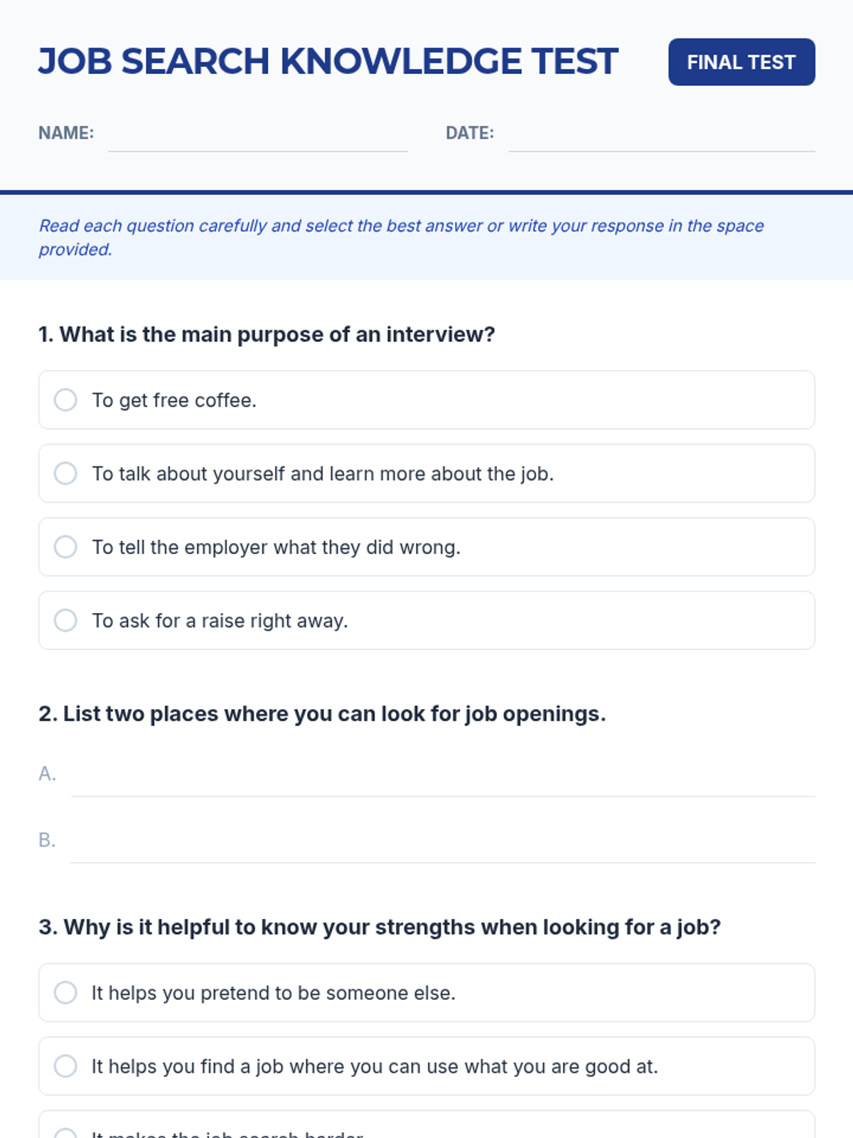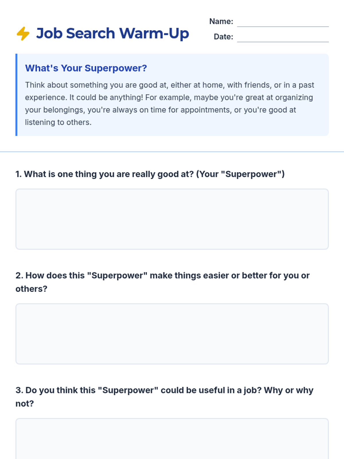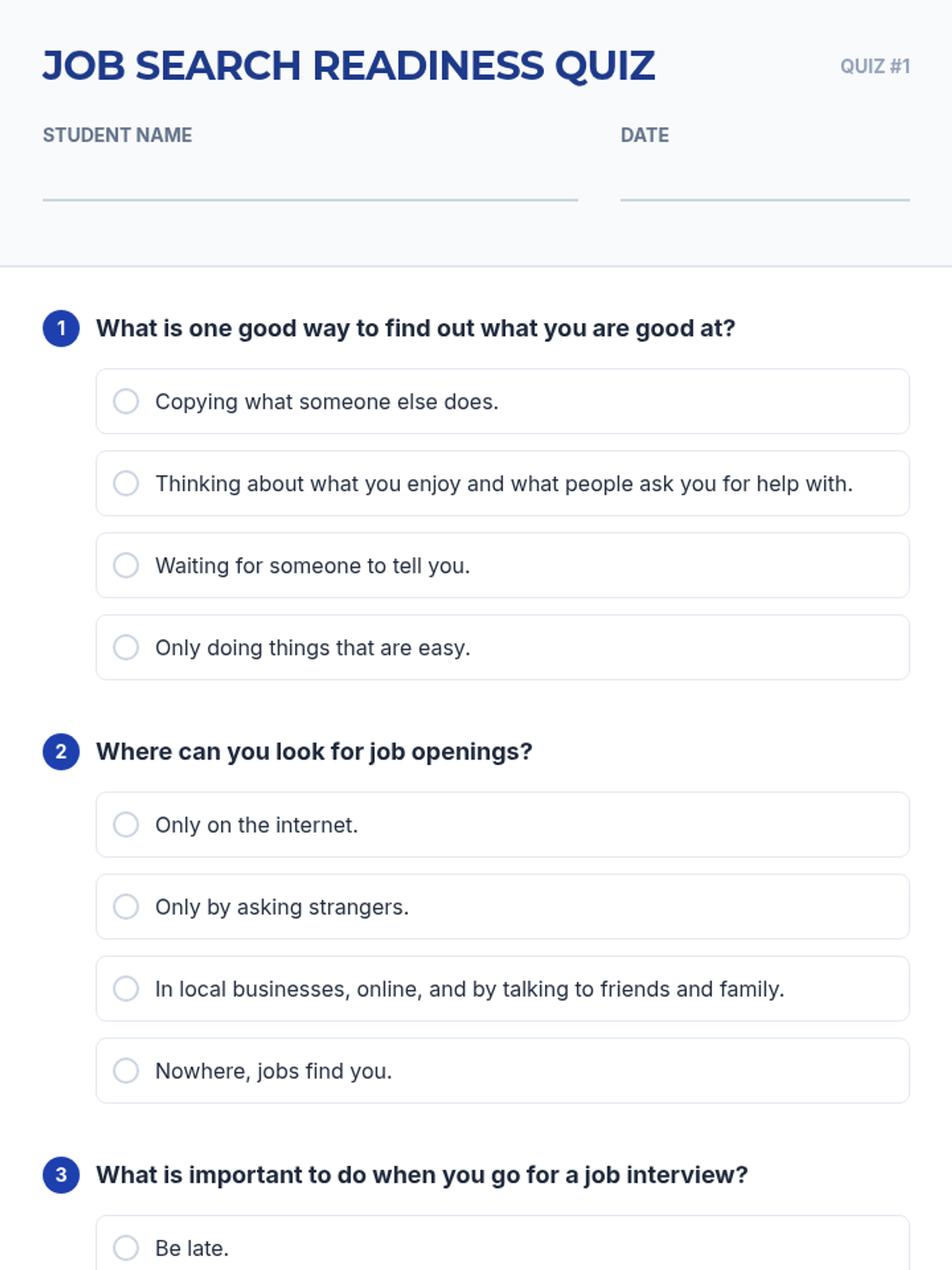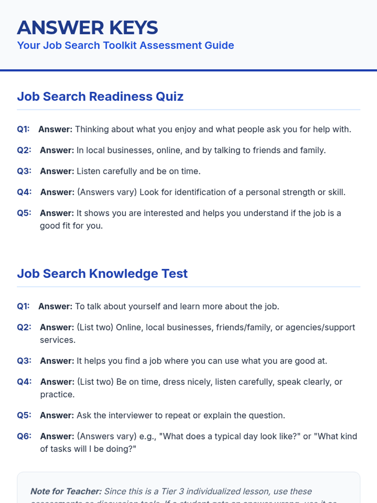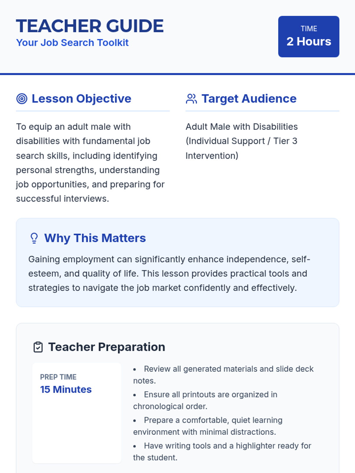 An individualized lesson for adult job seekers with disabilities focusing on strength identification, job searching, and interview preparation.