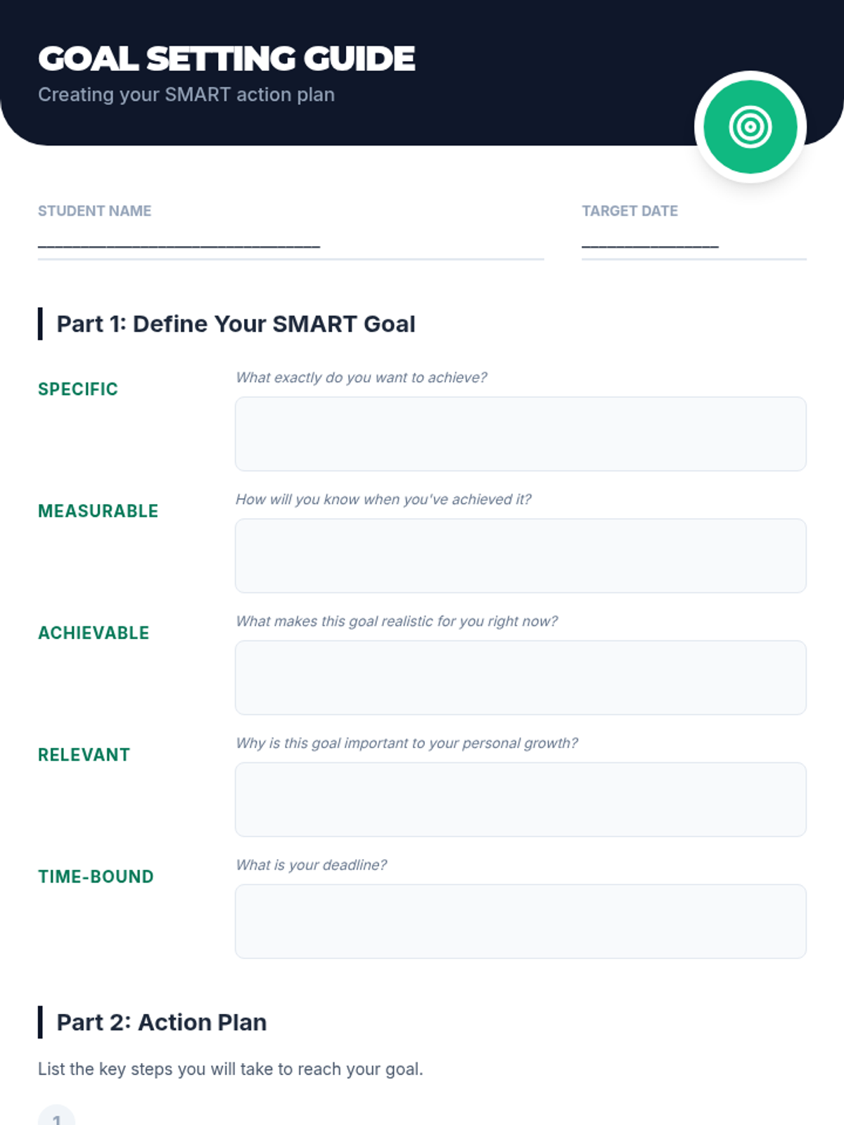 Teaches the third 'P' (Plan), where students turn vague goals into concrete, actionable steps using the Action Plan Builder.