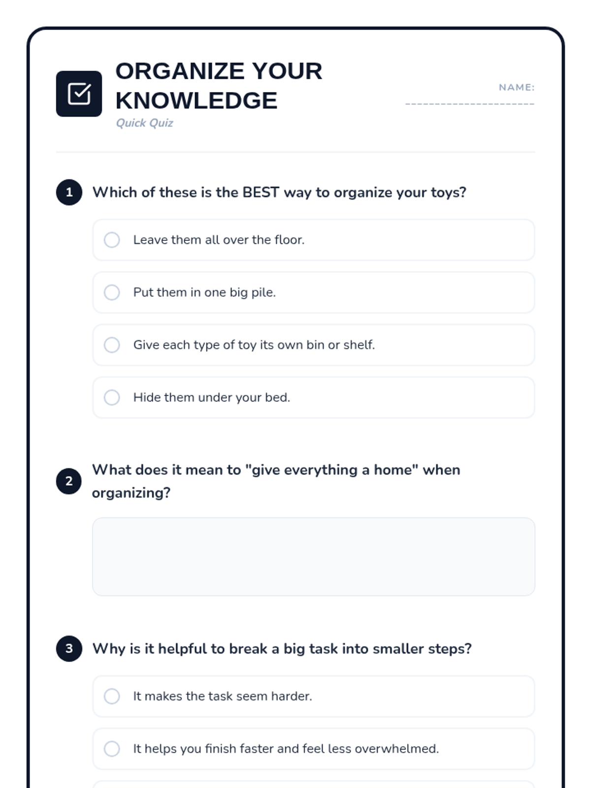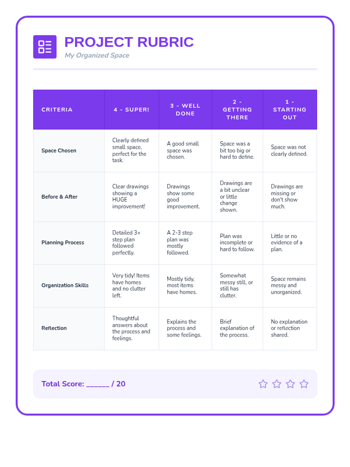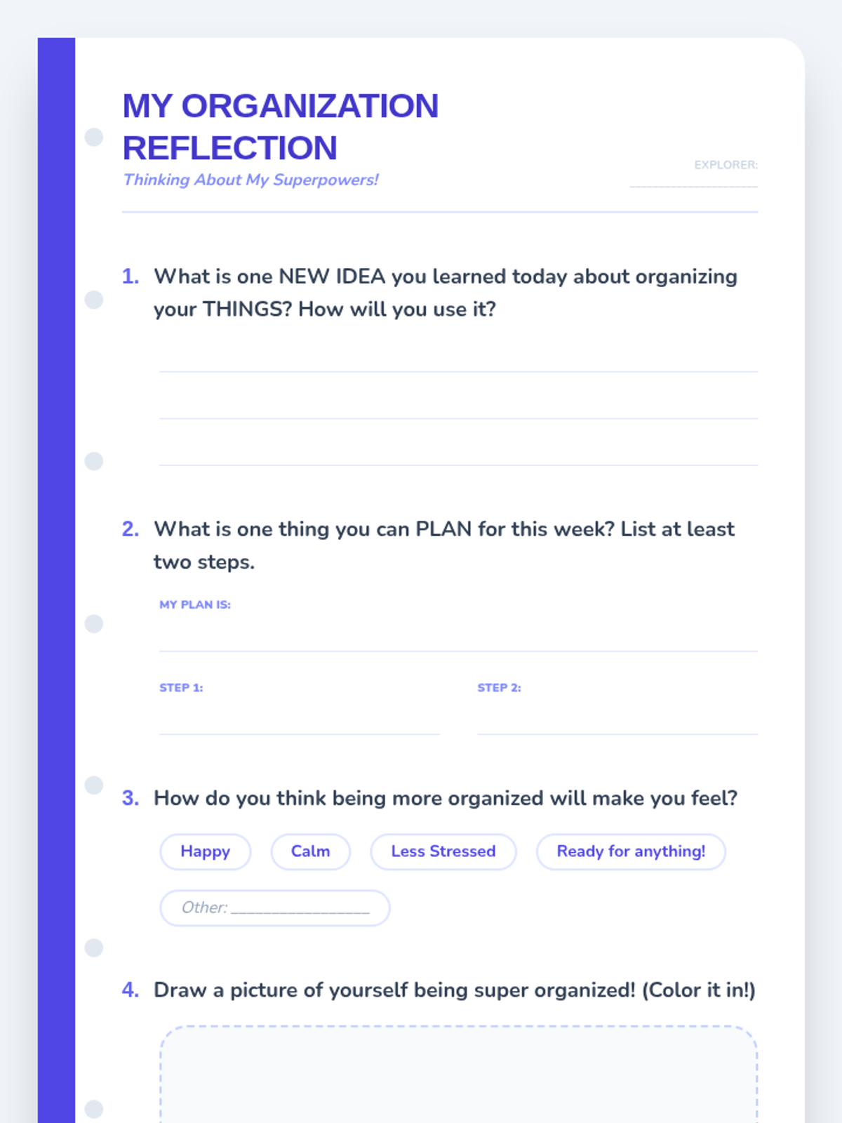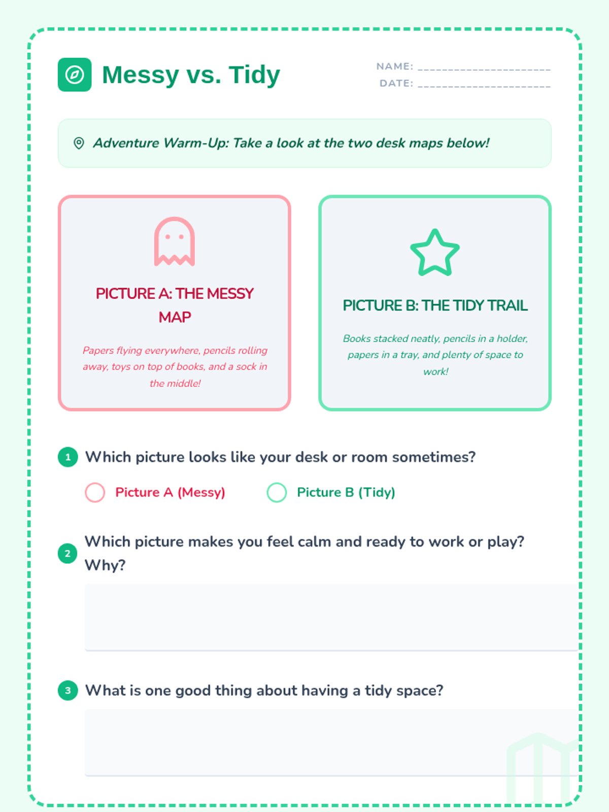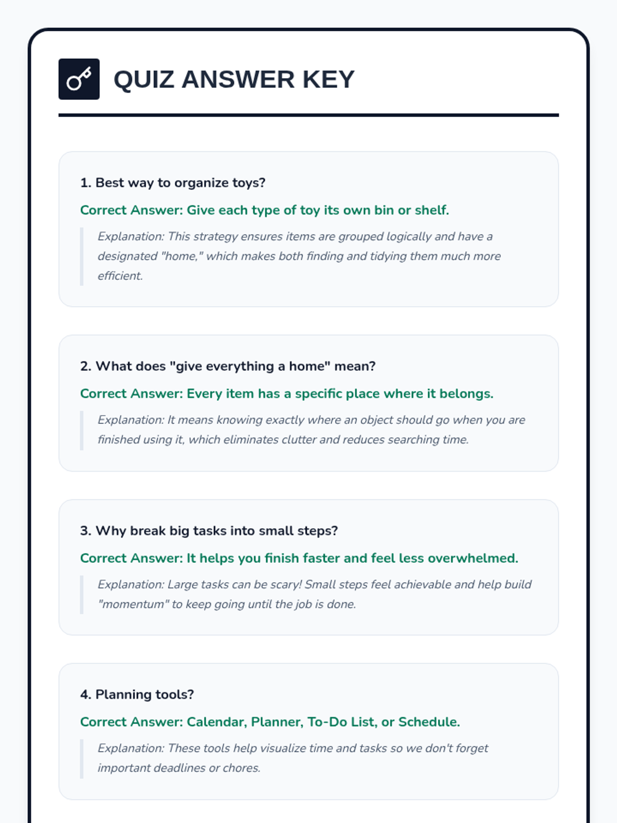 An engaging lesson for Primary 3 & 4 students to learn practical organization and planning strategies for their belongings, time, and tasks.