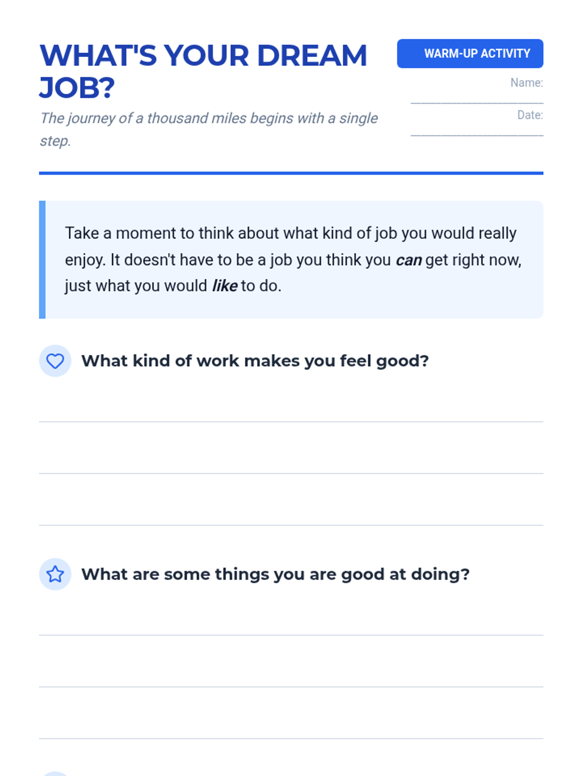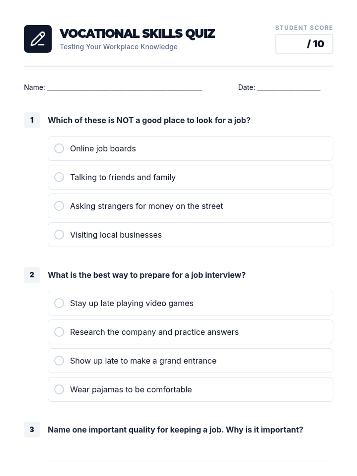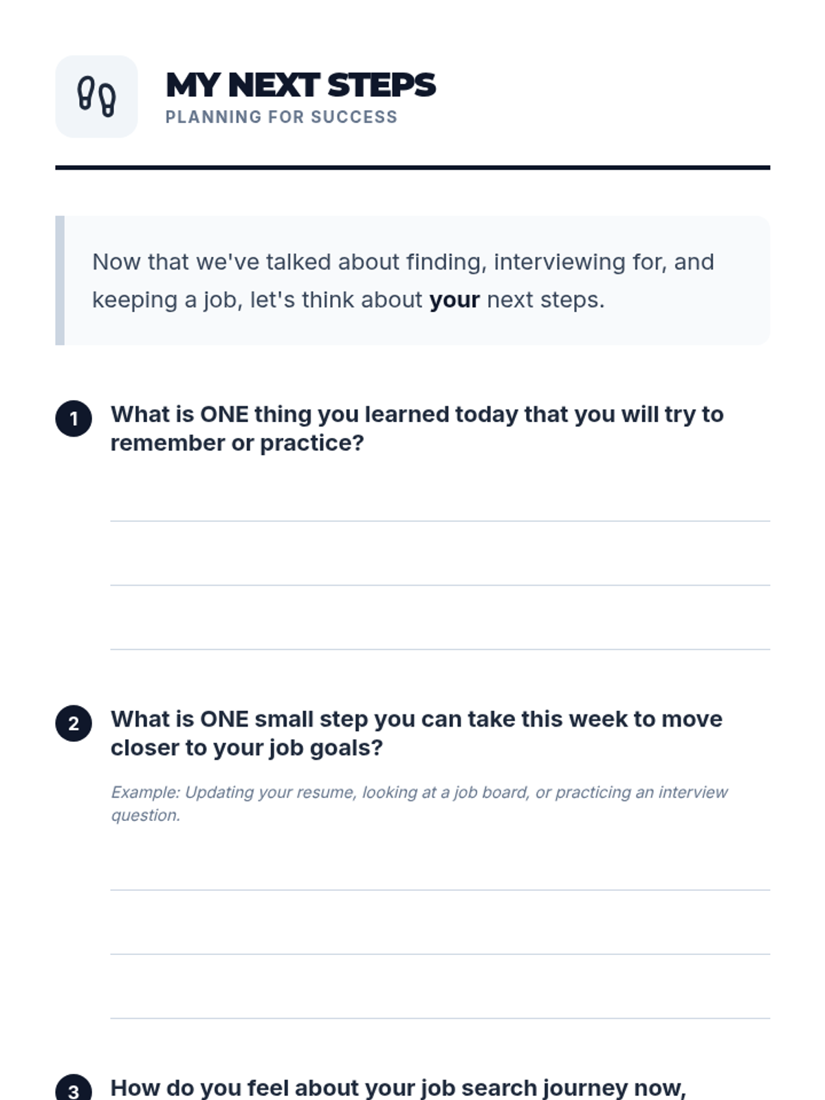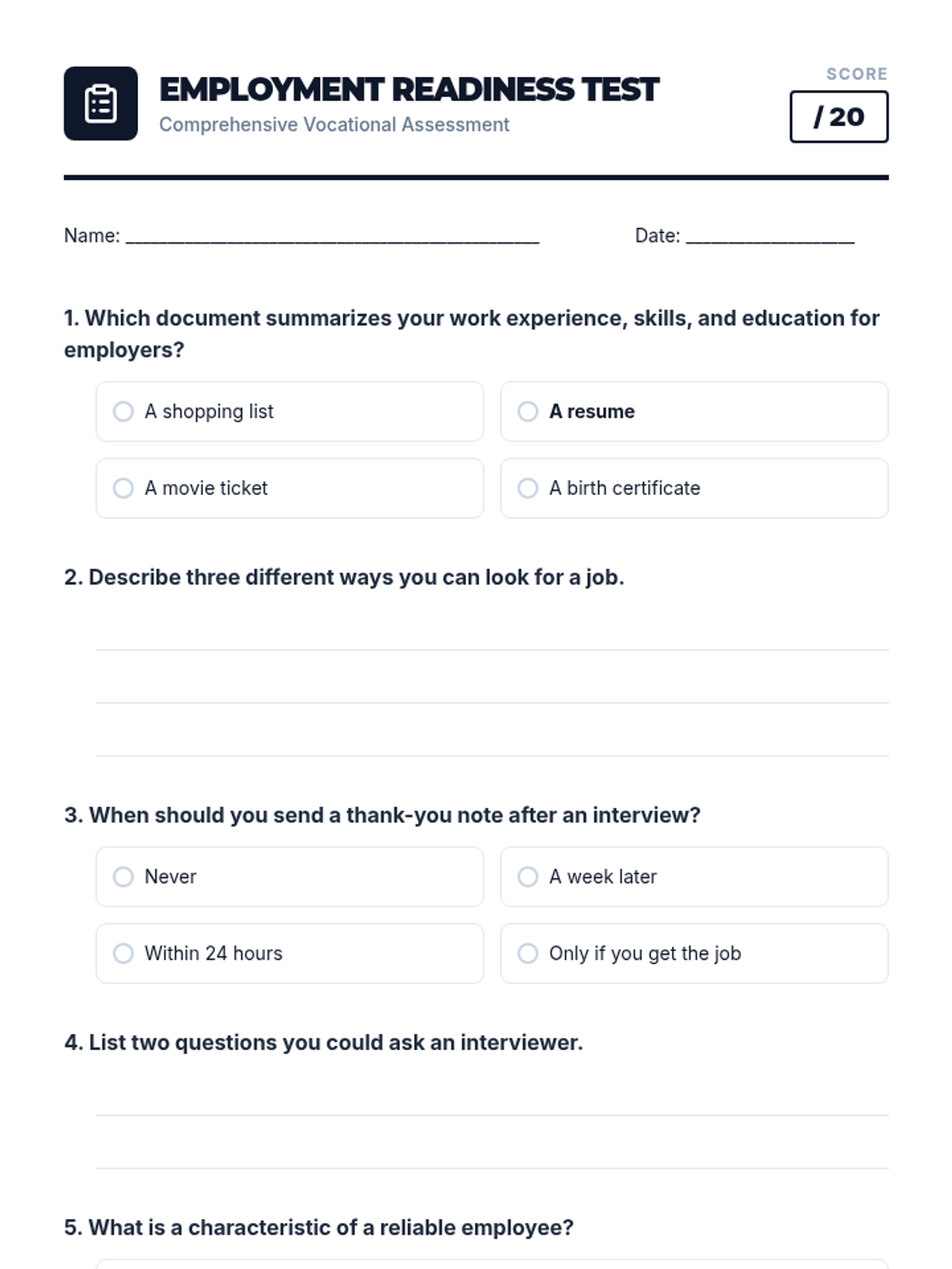 This 2-hour vocational training lesson guides students through job search strategies, interview preparation, and workplace retention skills, specifically designed for individuals with disabilities.