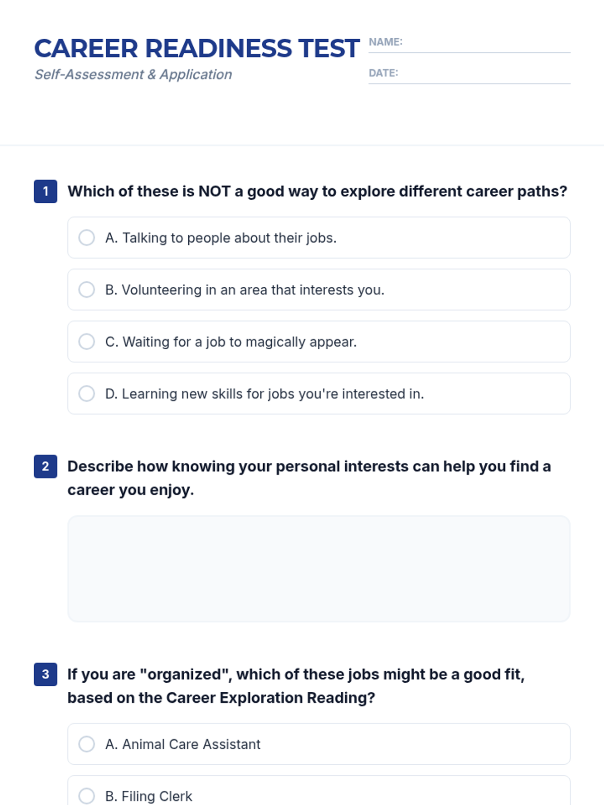 A final assessment covering application preparation, interview techniques, and professional workplace etiquette.