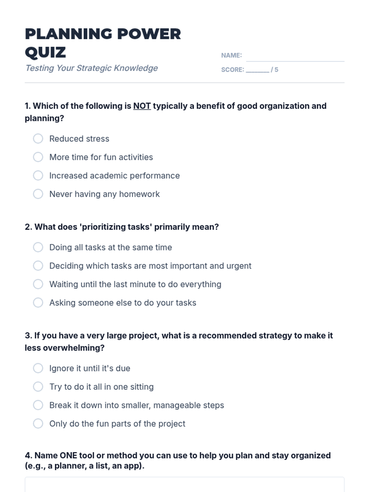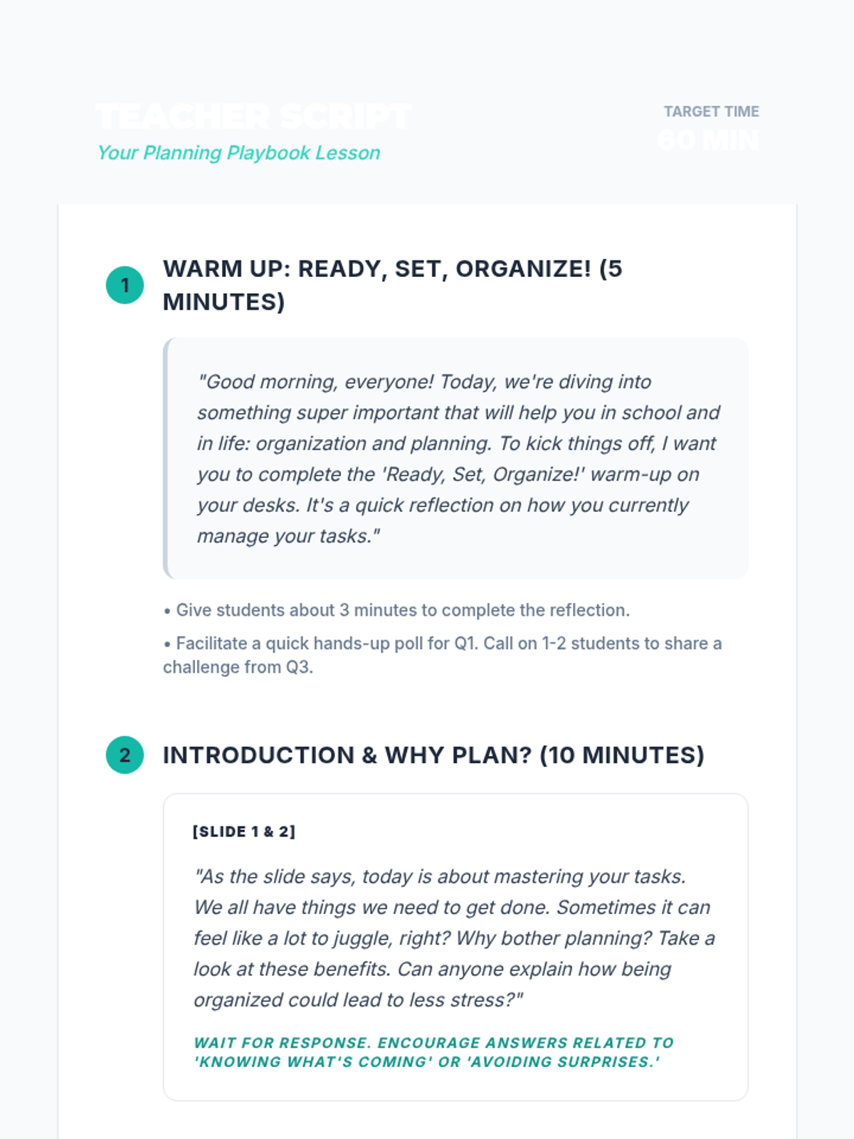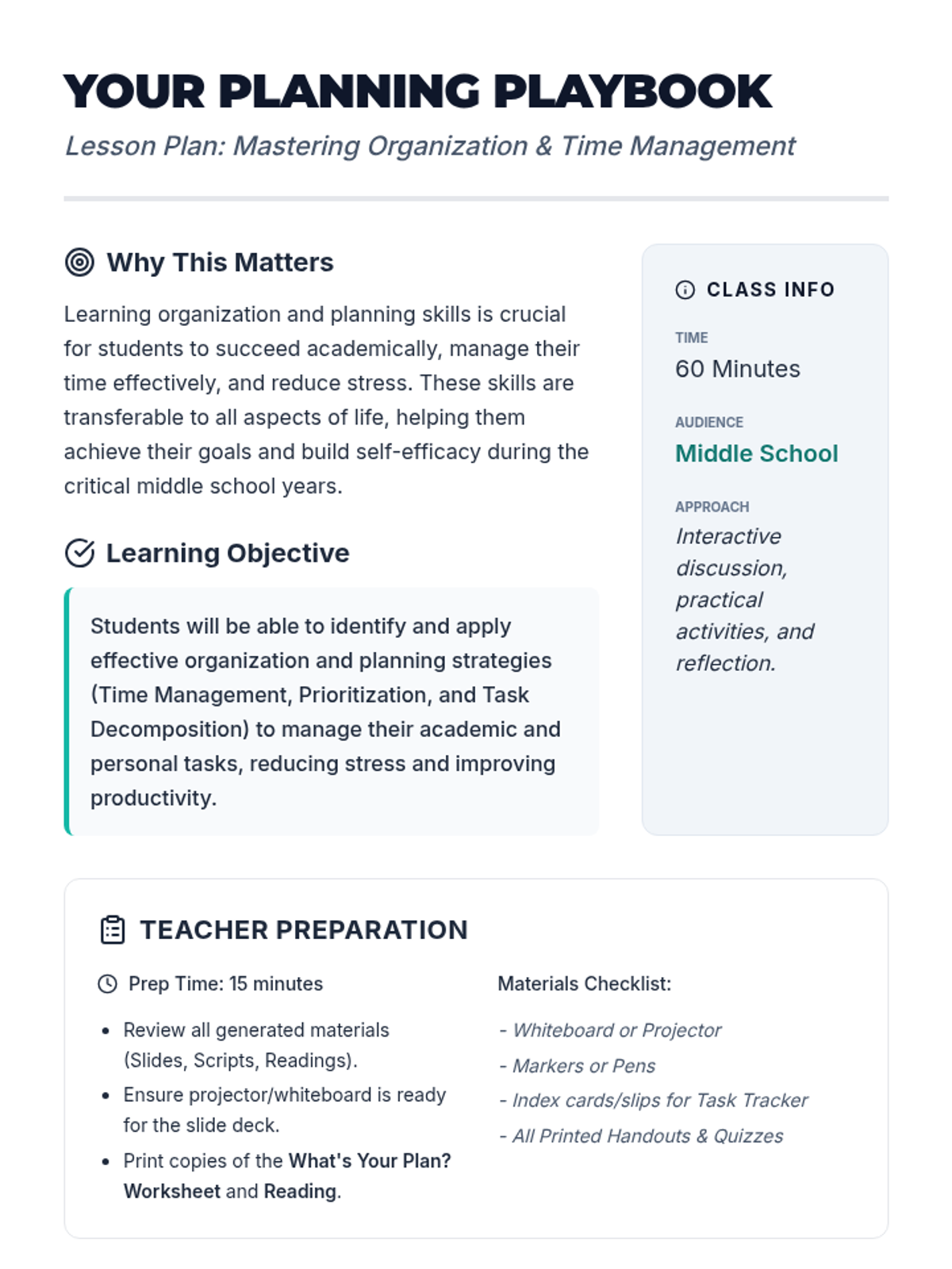 A comprehensive 60-minute lesson designed to empower middle school students with practical organization and planning strategies to reduce stress and boost academic performance.