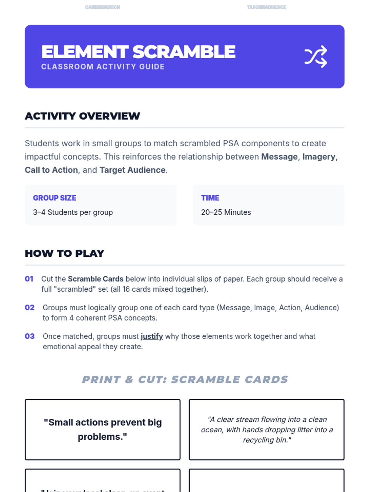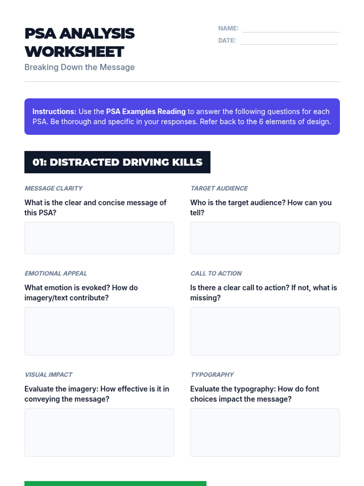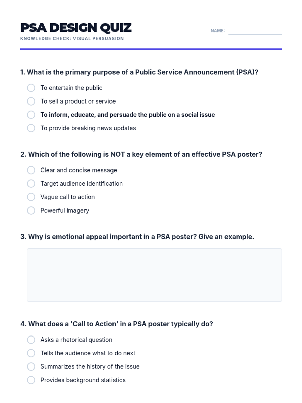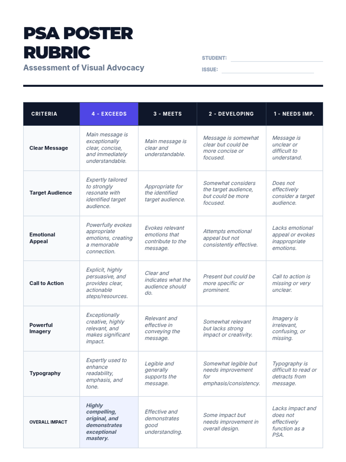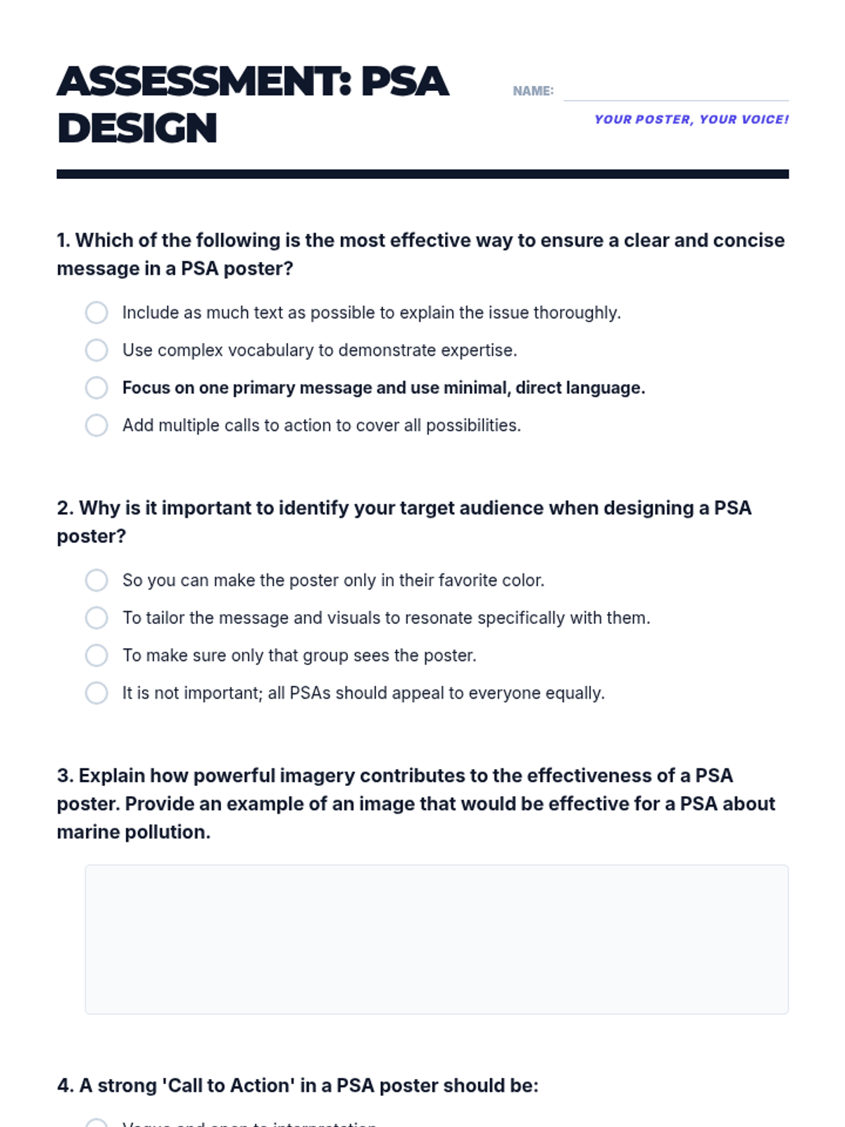 This lesson empowers 10th-grade students to create impactful Public Service Announcement (PSA) posters. Students will learn the key elements of effective visual communication and persuasive messaging to raise awareness about important social issues.