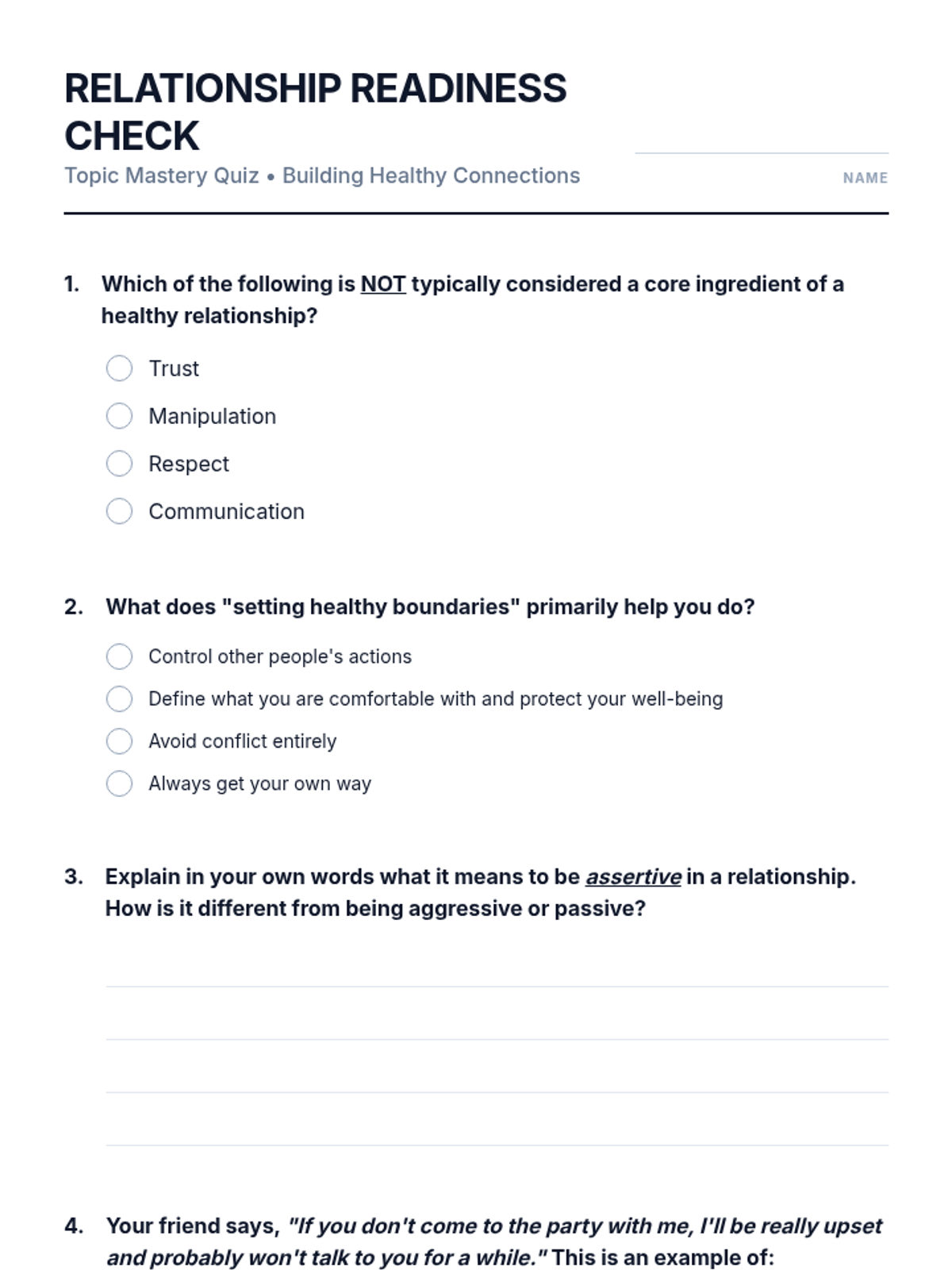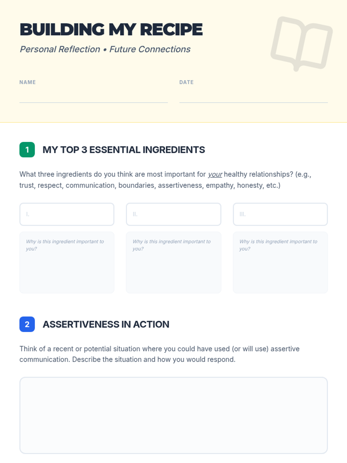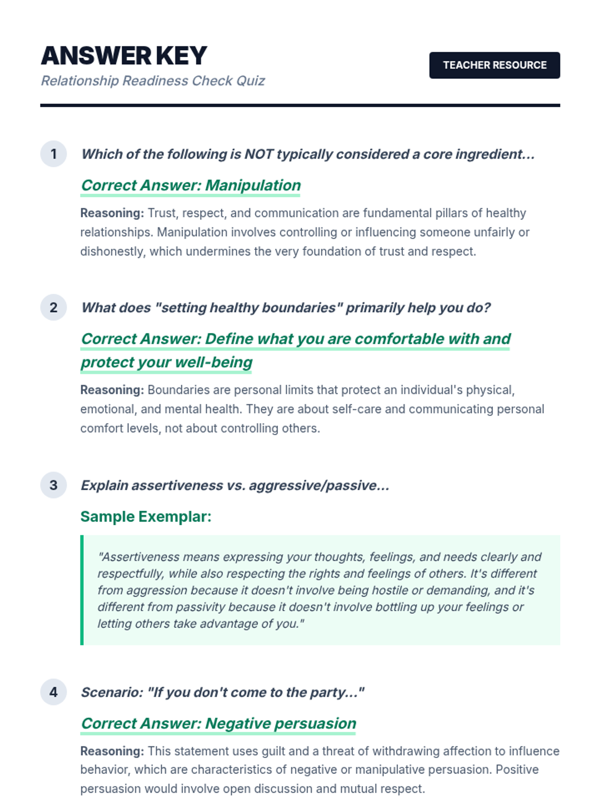 A comprehensive 45-minute lesson for high school students exploring the 'ingredients' of healthy relationships, including trust, respect, communication, boundaries, and assertiveness.