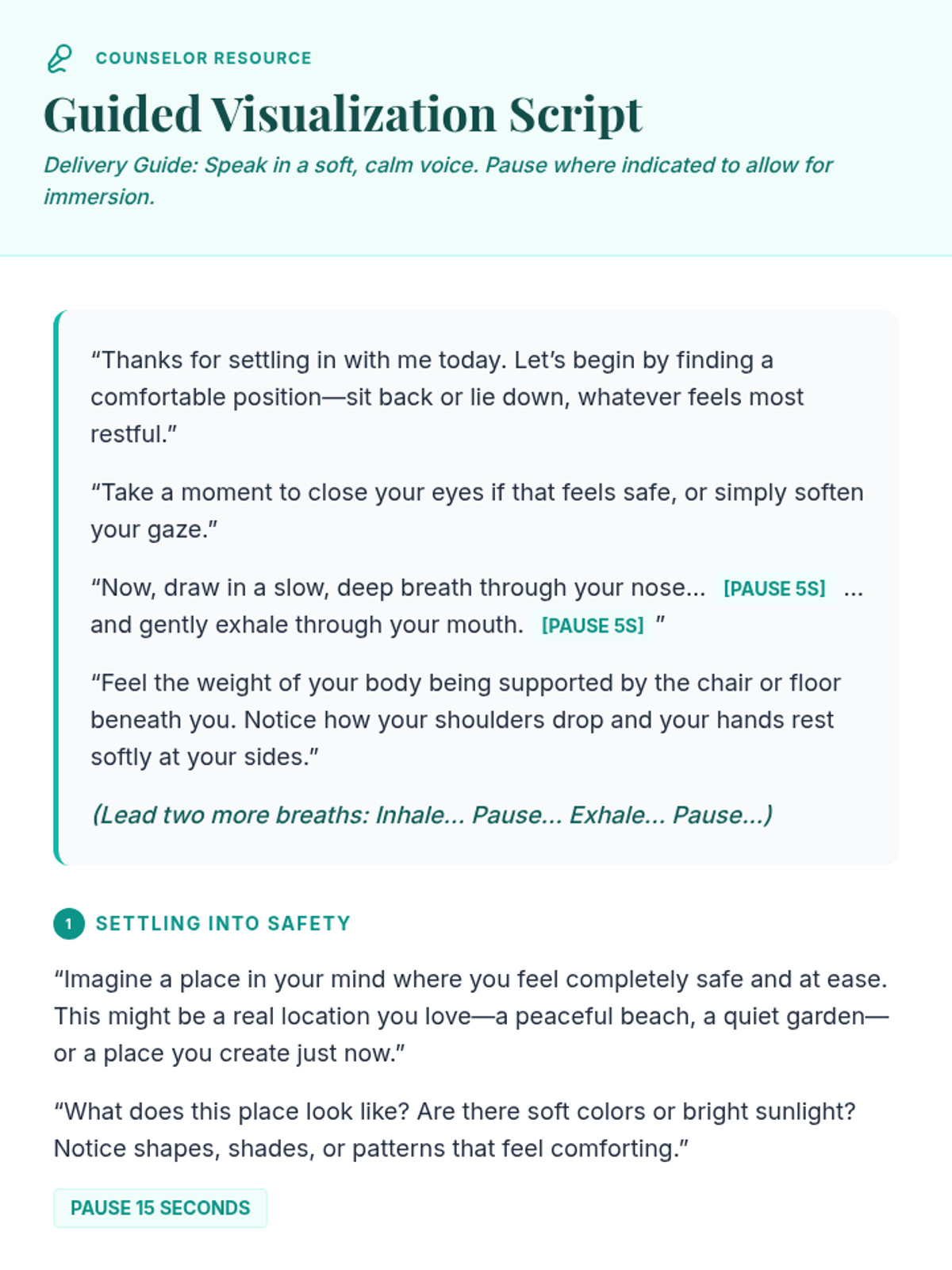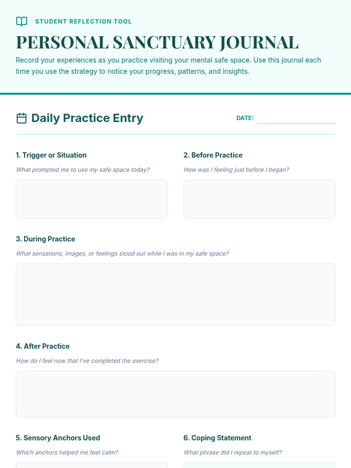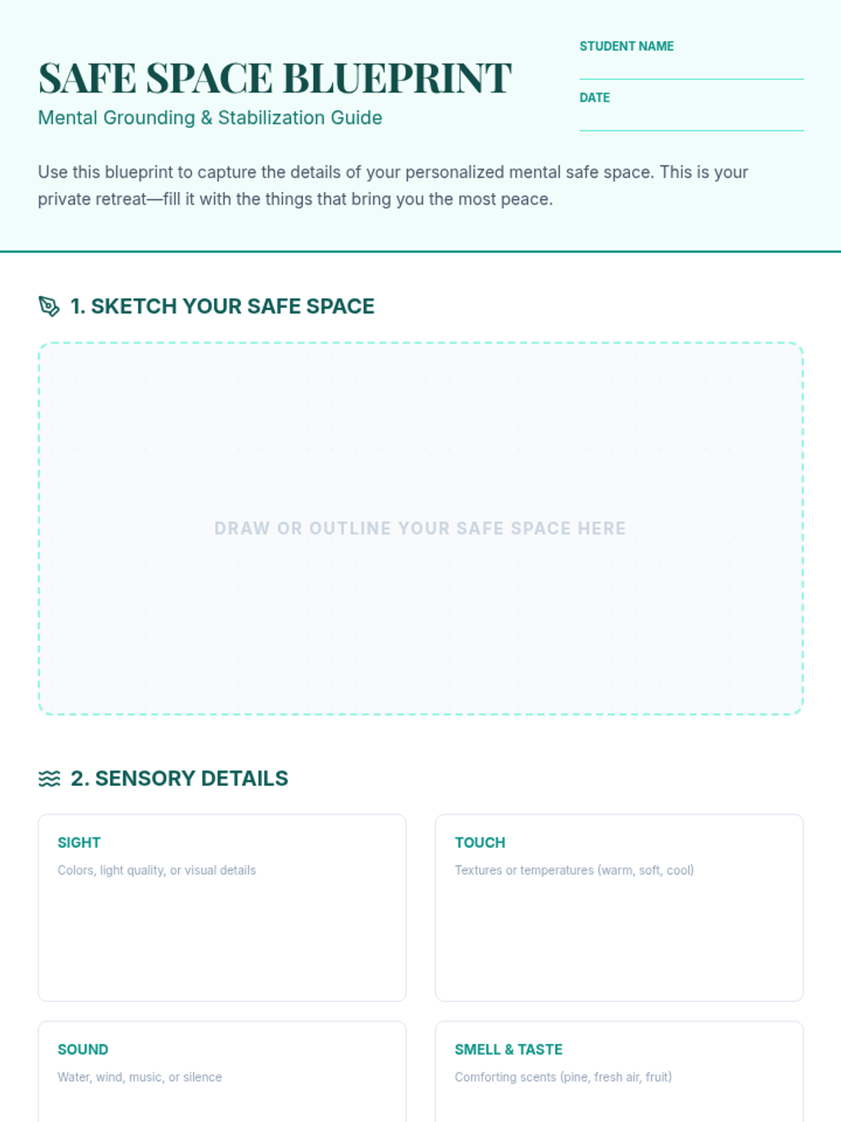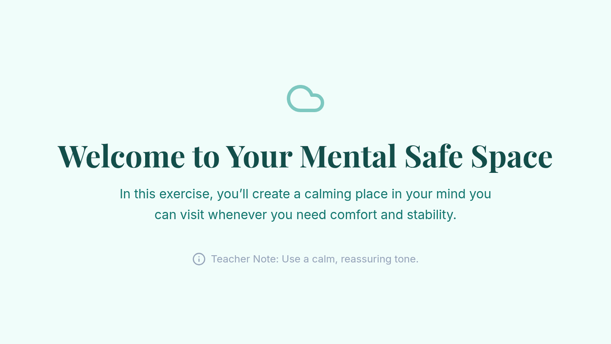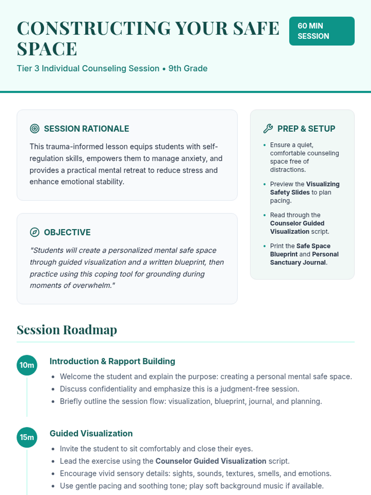 An individual Tier 3 counseling session for 9th graders focused on building a mental safe space for emotional regulation and grounding using guided visualization and blueprinting.