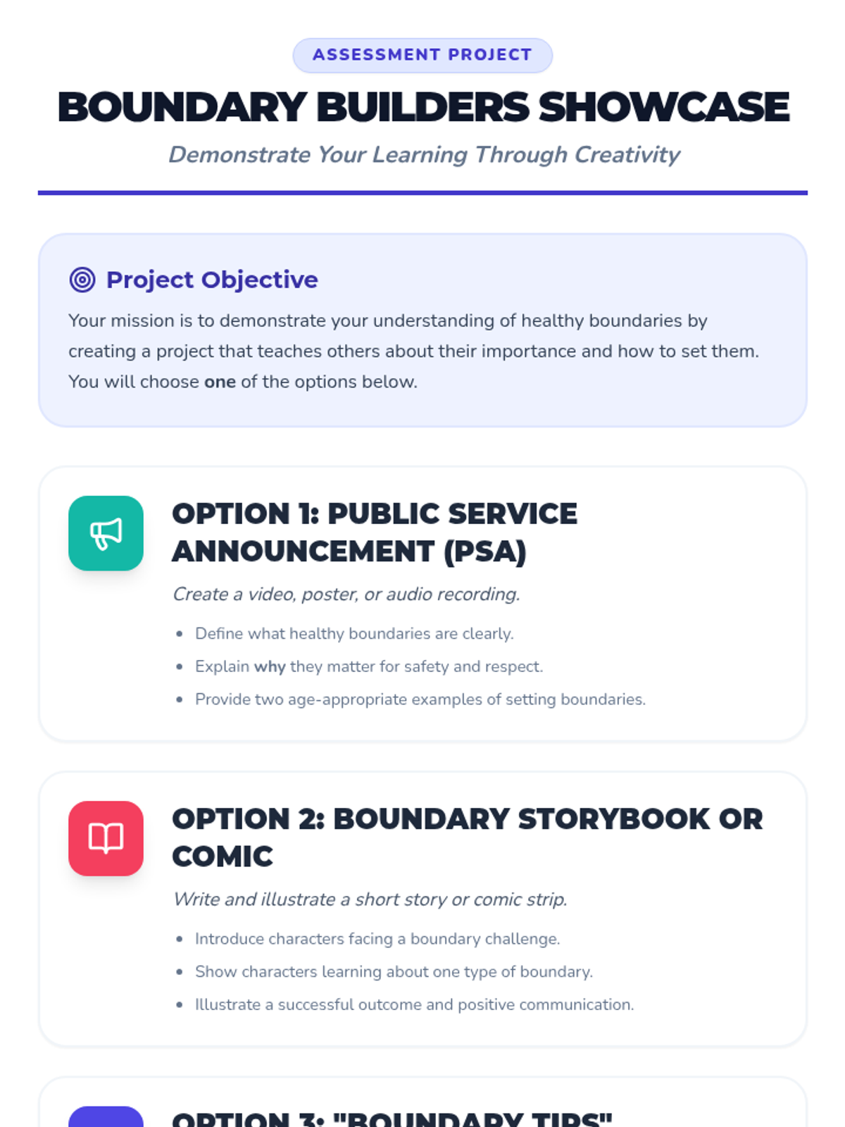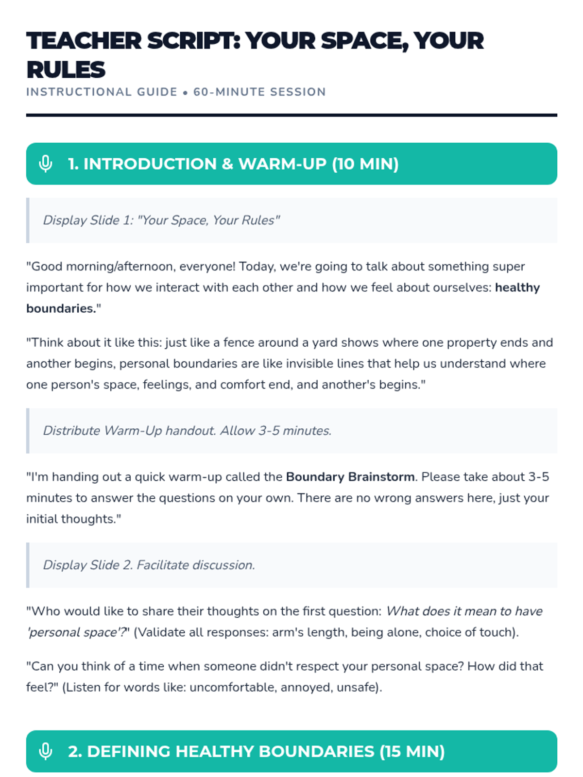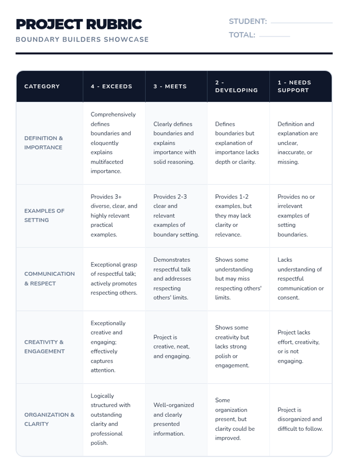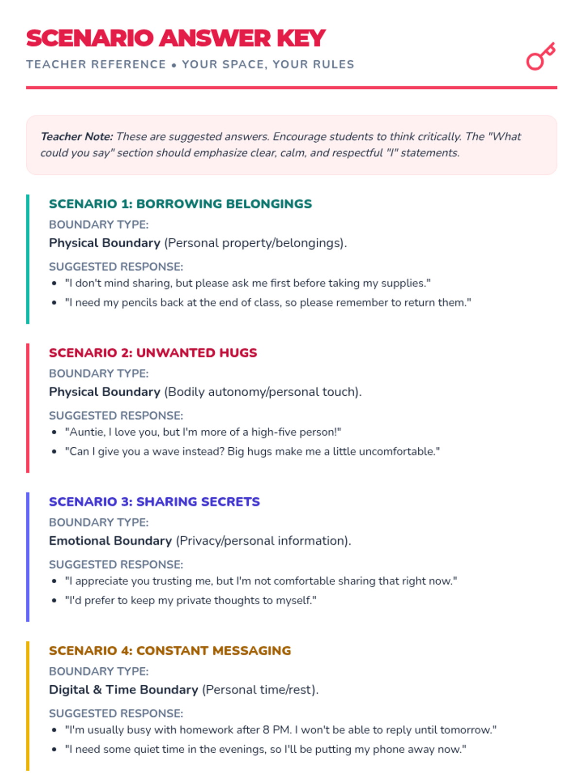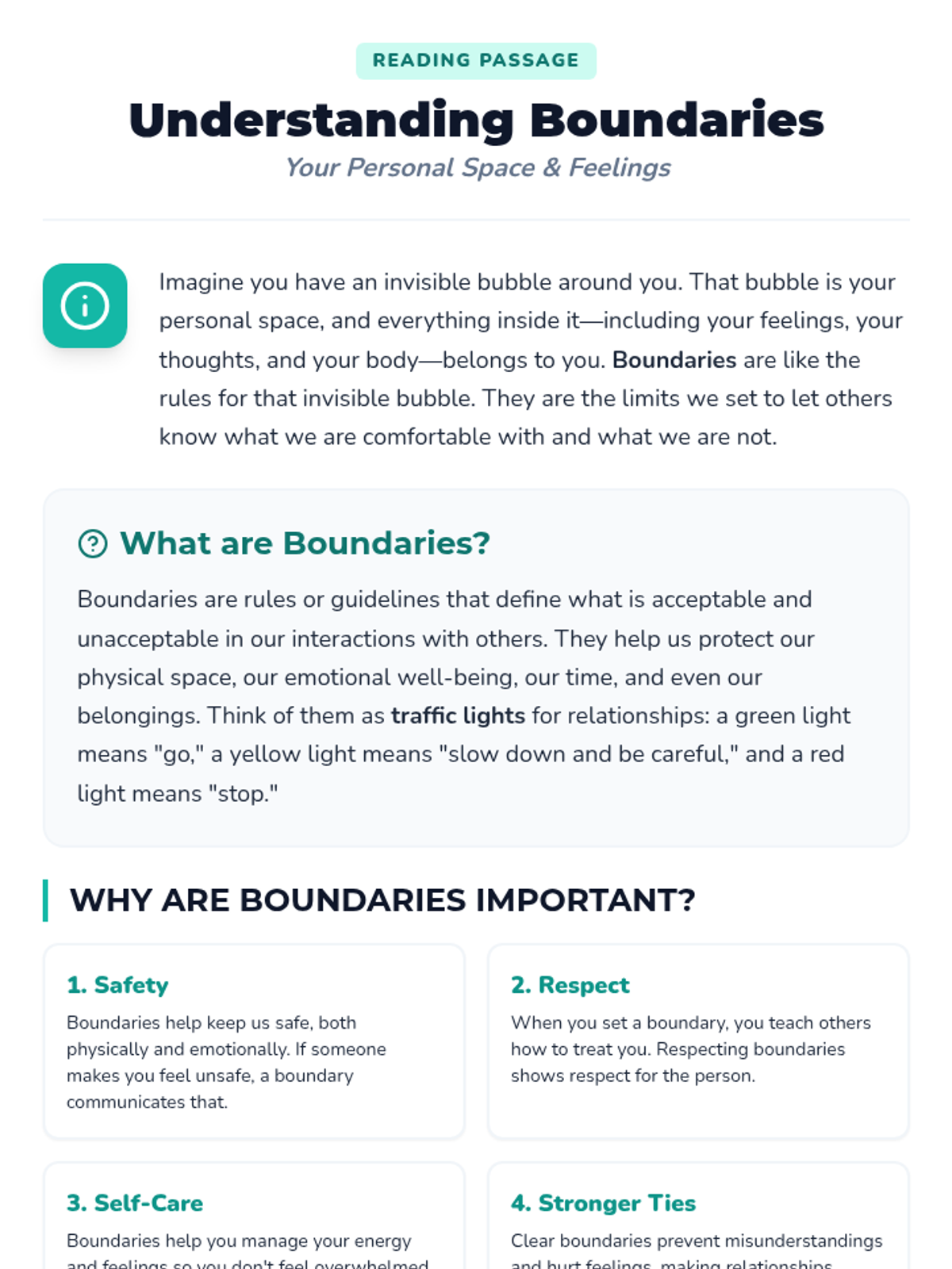 A 60-minute lesson for 5th and 6th graders to understand, set, and respect healthy physical, emotional, and digital boundaries in relationships.