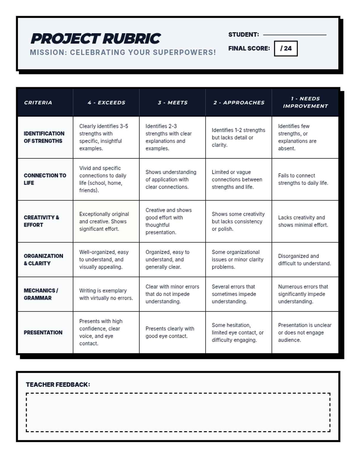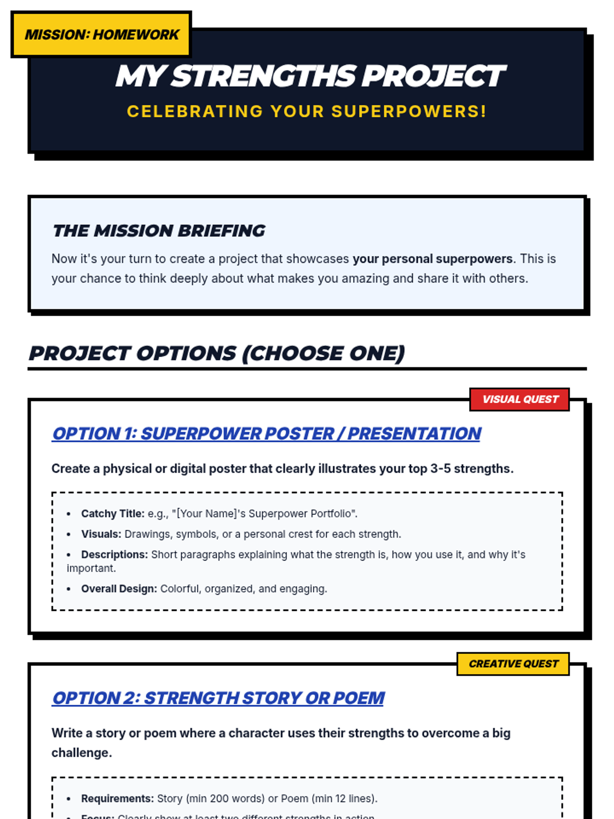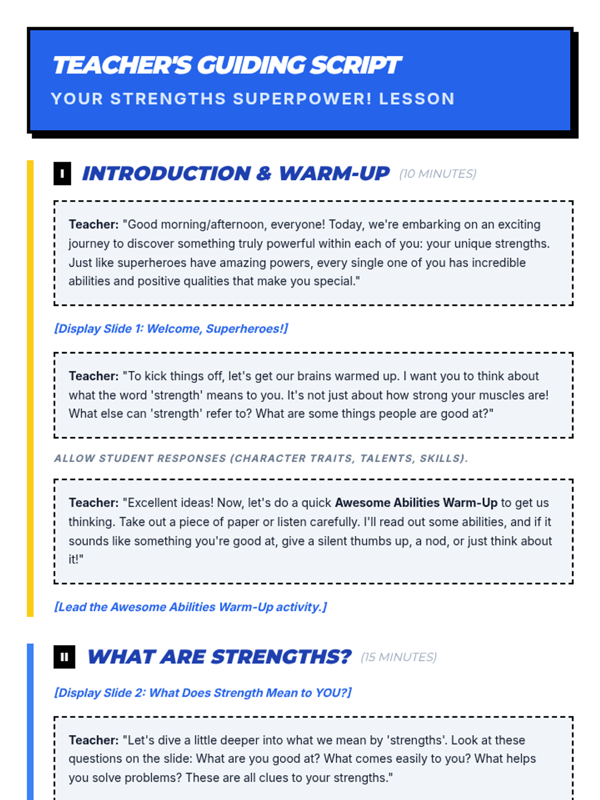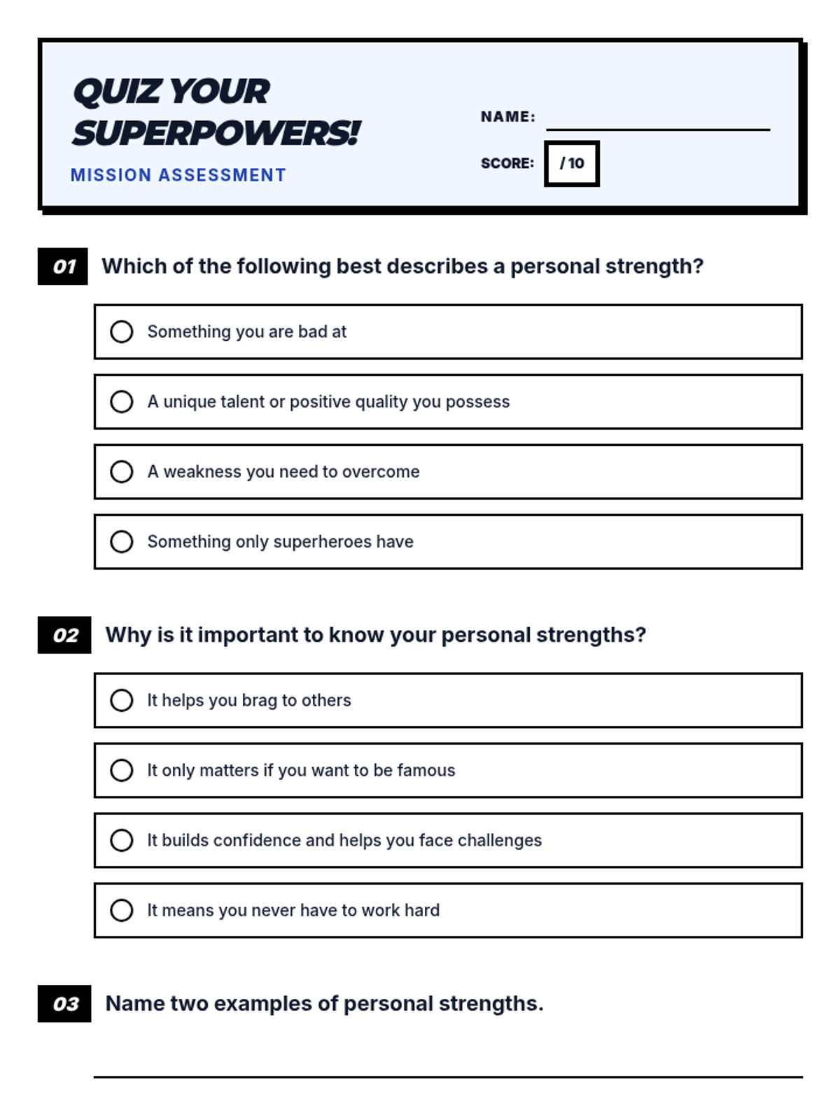 A 1-hour interactive lesson for middle school students to identify, celebrate, and apply their unique personal strengths to build self-esteem and resilience.