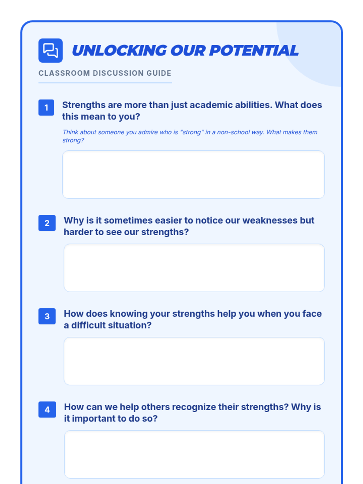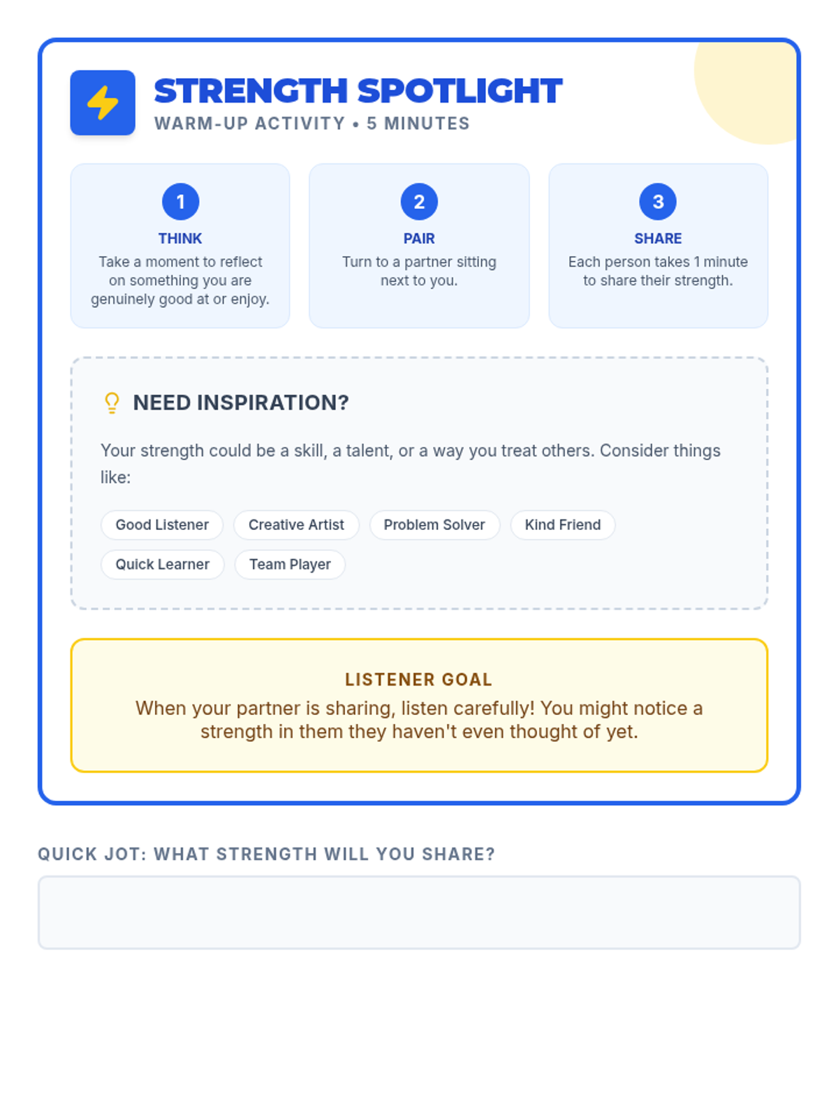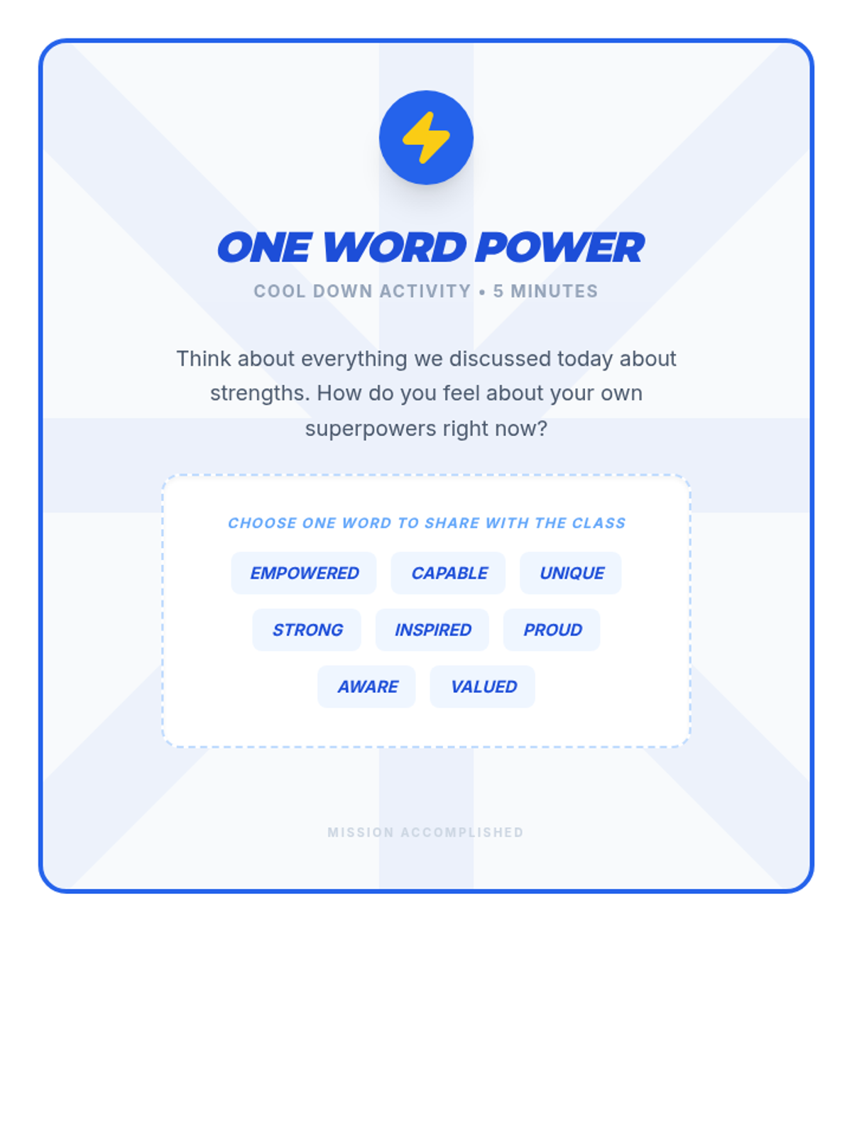 A 60-minute lesson for middle school students to identify and celebrate their unique strengths, or 'superpowers,' to boost self-esteem and foster a positive classroom community.