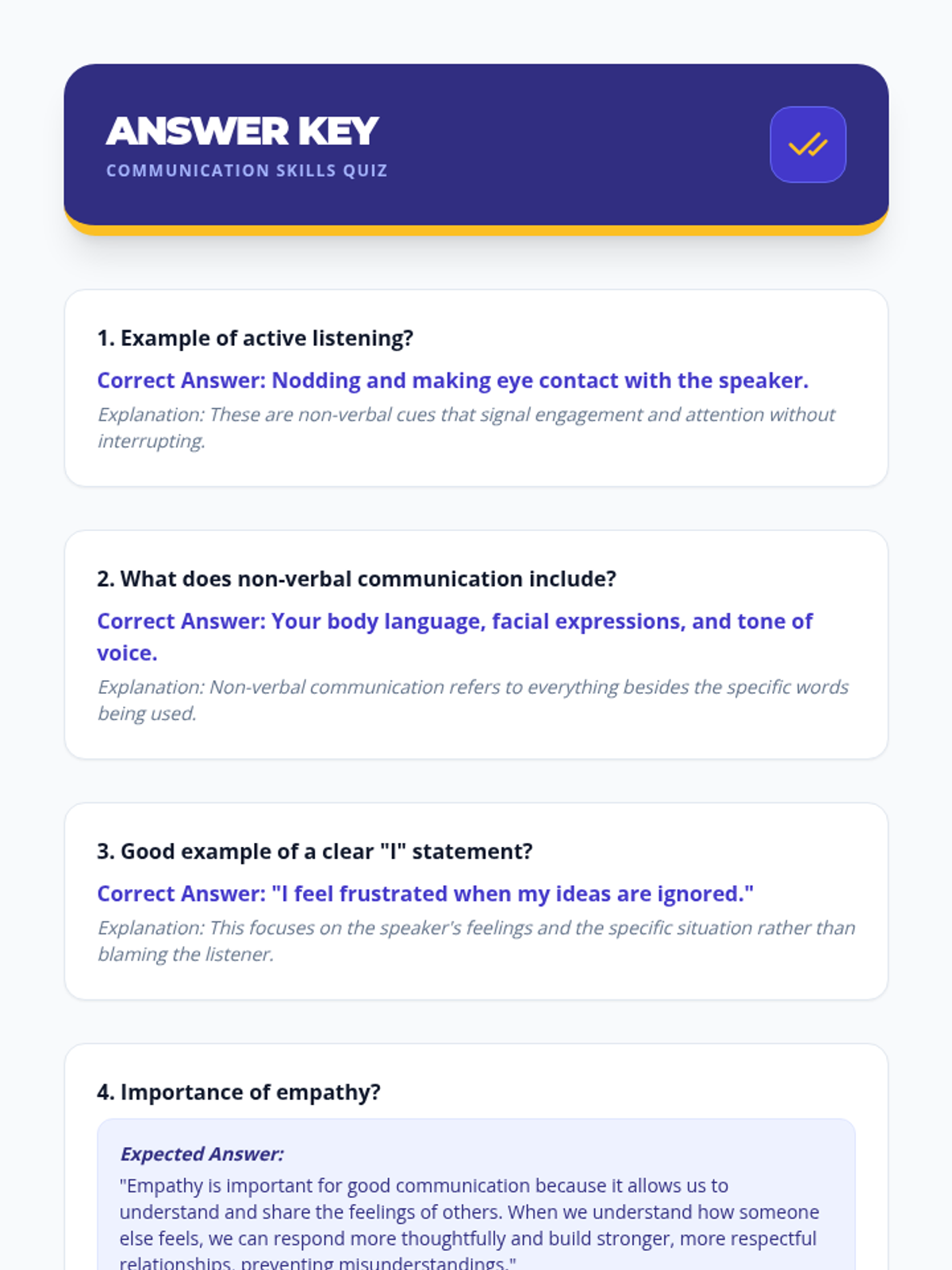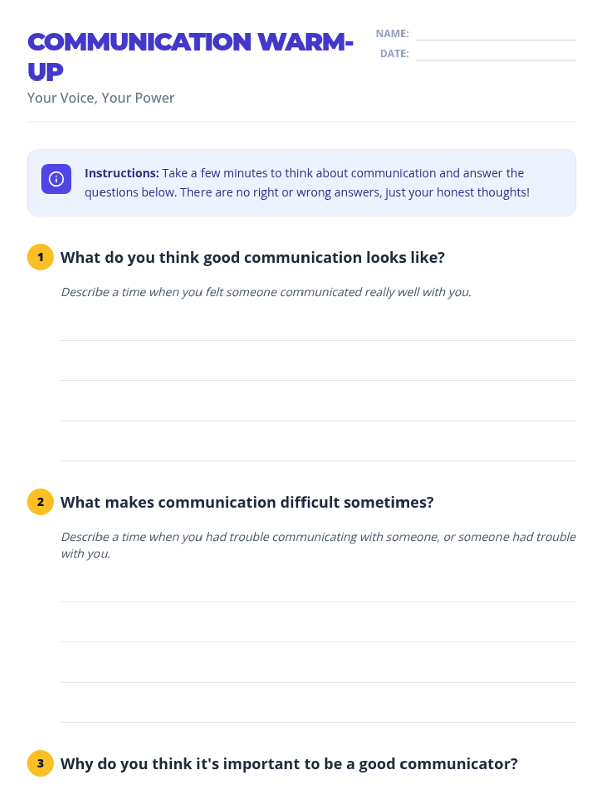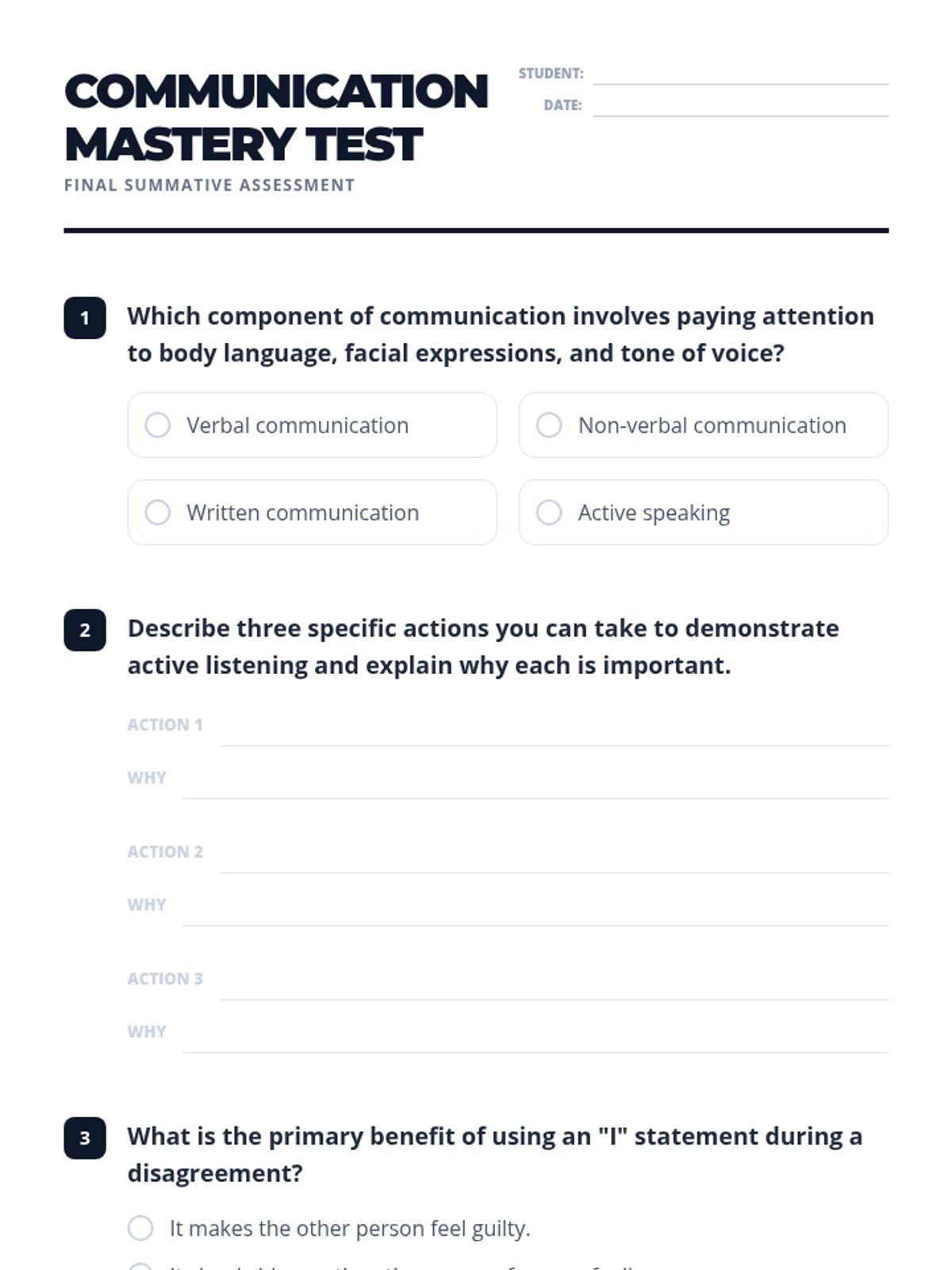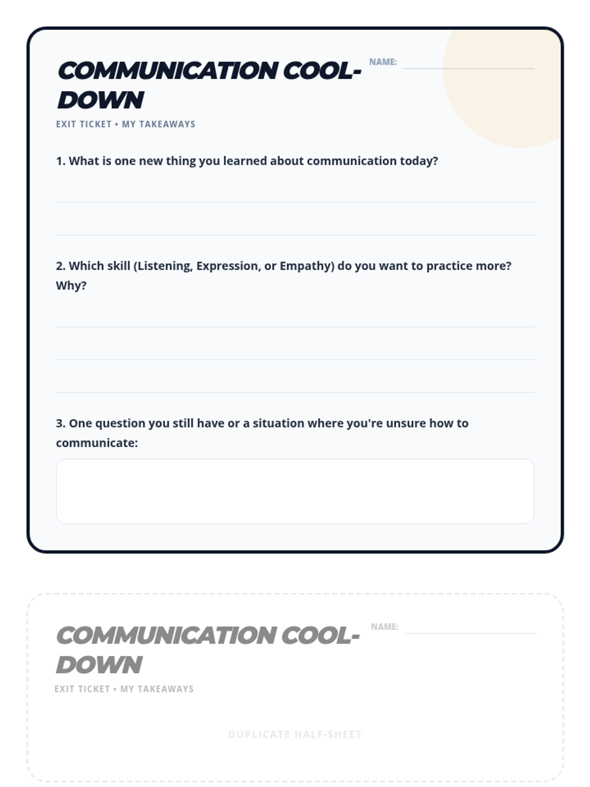 This lesson helps students develop essential communication skills for everyday life through interactive activities, role-playing, and reflection on active listening, clear expression, and empathy.