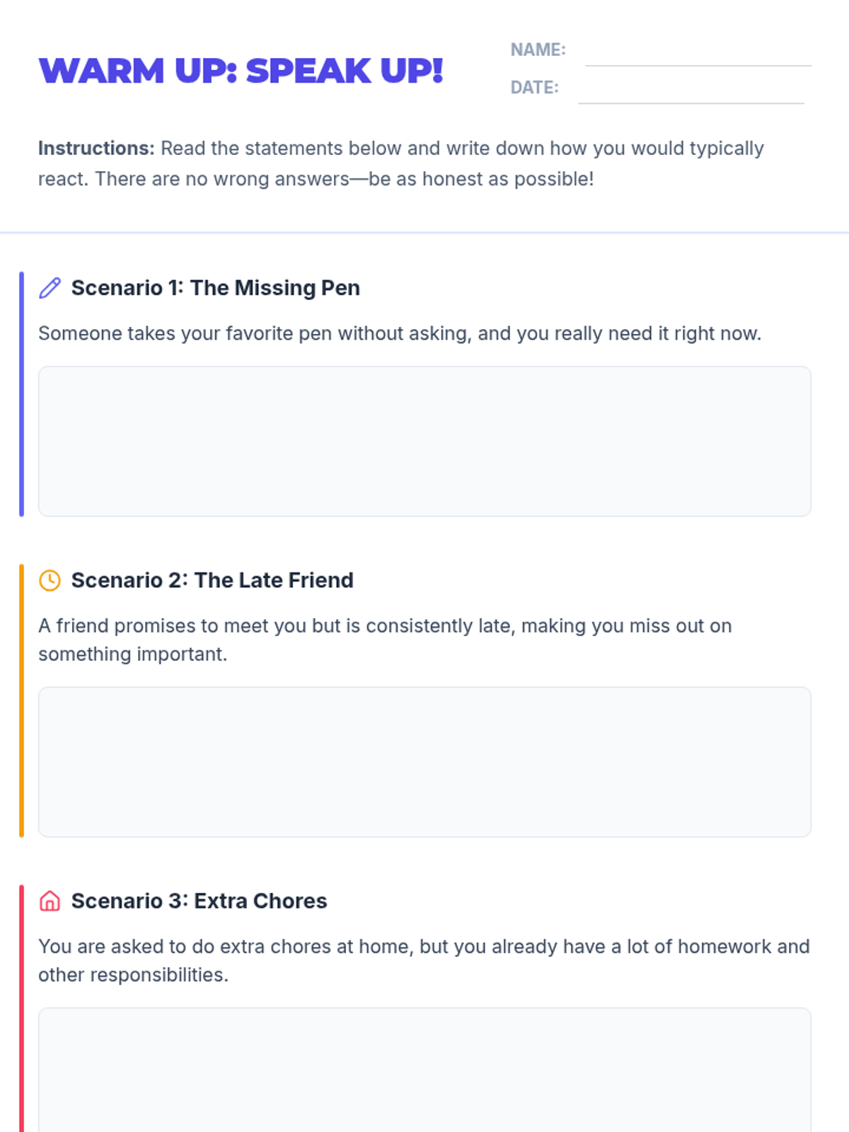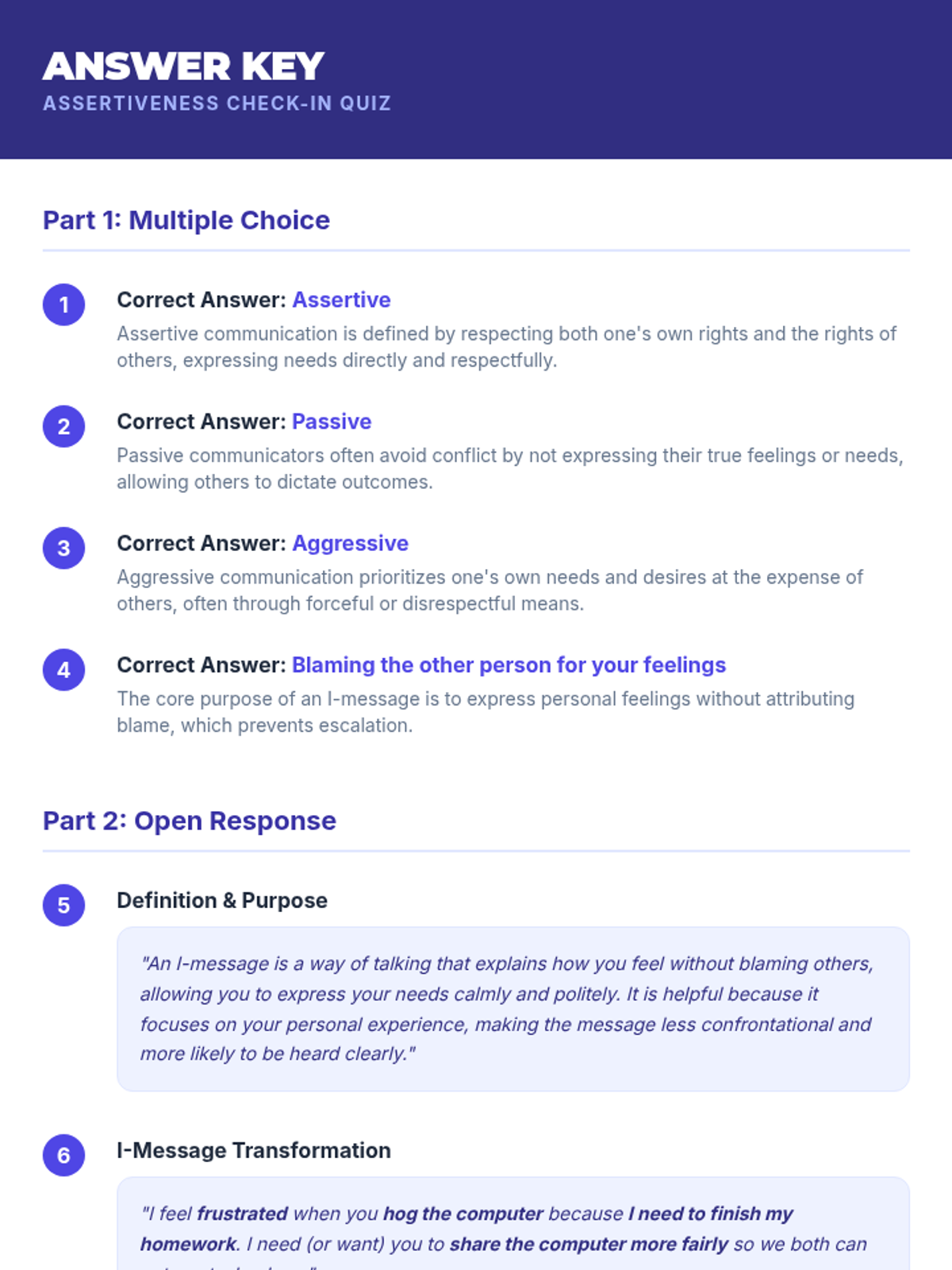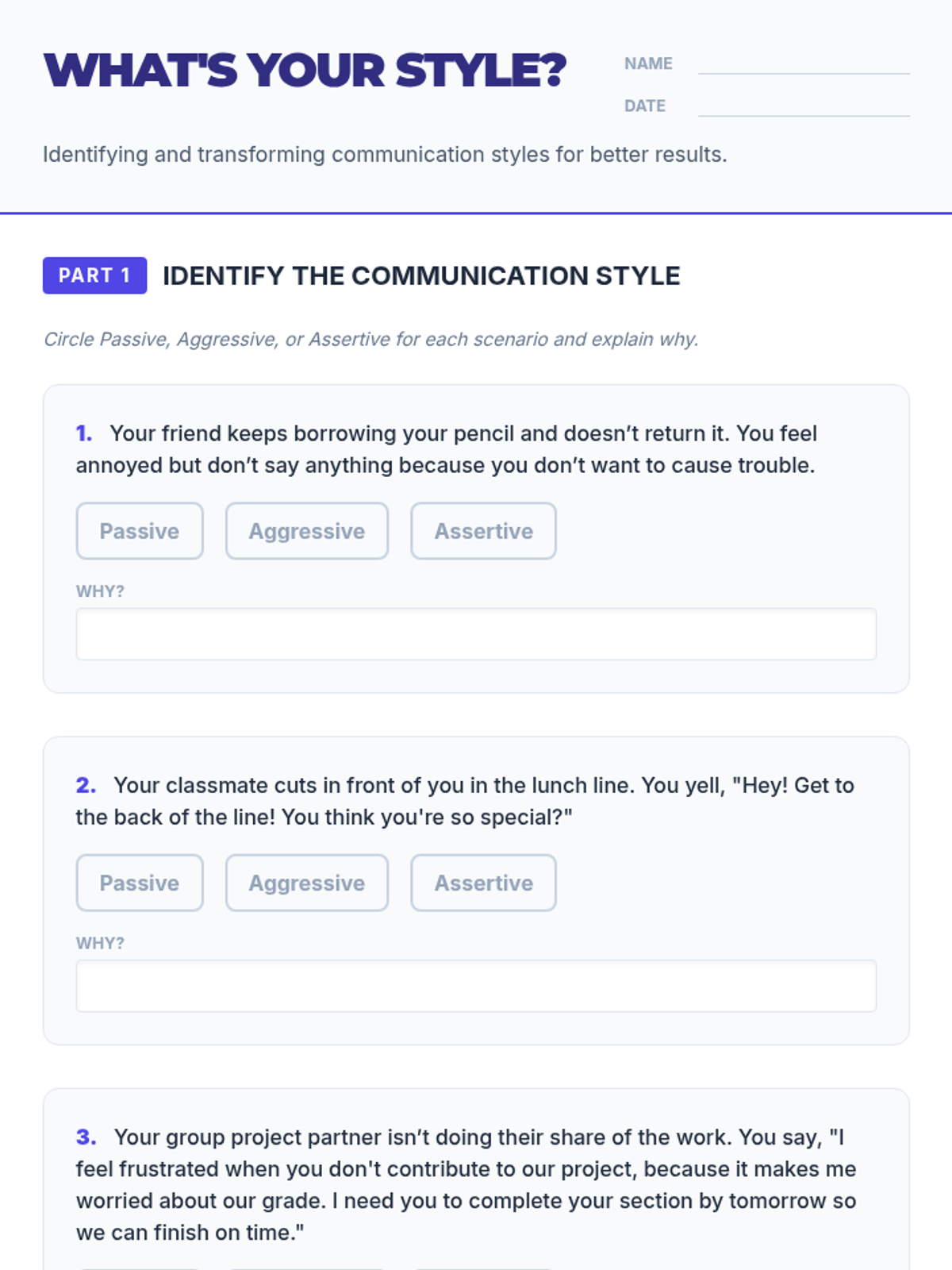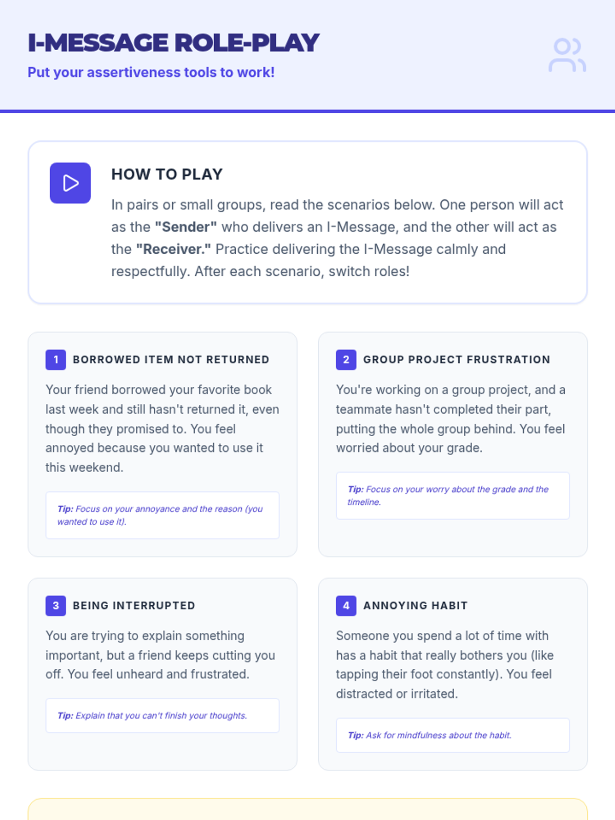 This 45-minute lesson empowers youth to communicate effectively by understanding assertiveness, passivity, and aggression, featuring hands-on practice with 'I-messages'.
