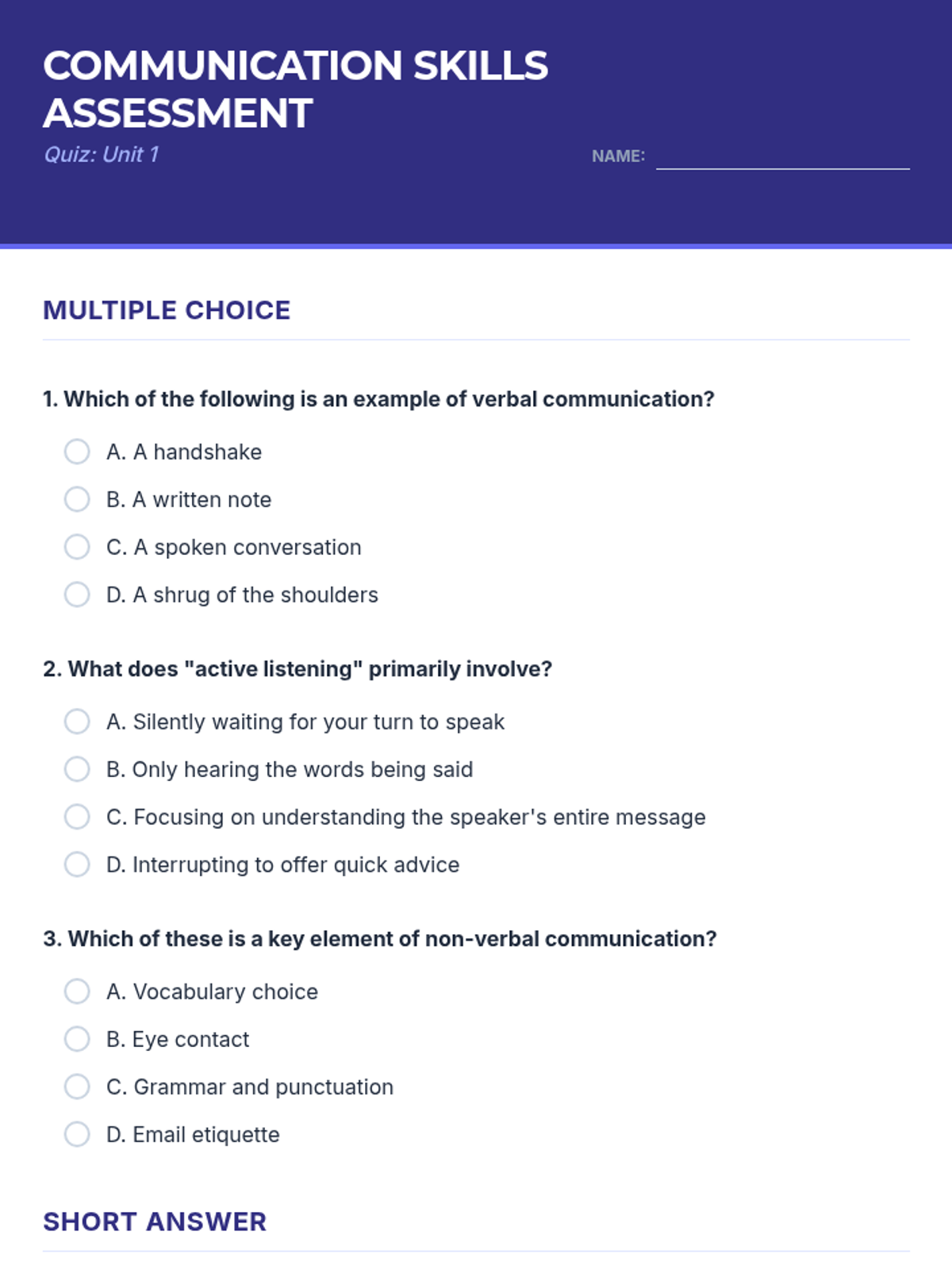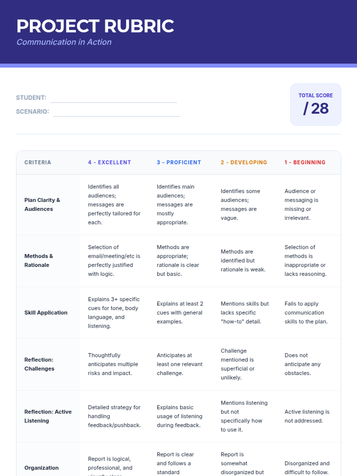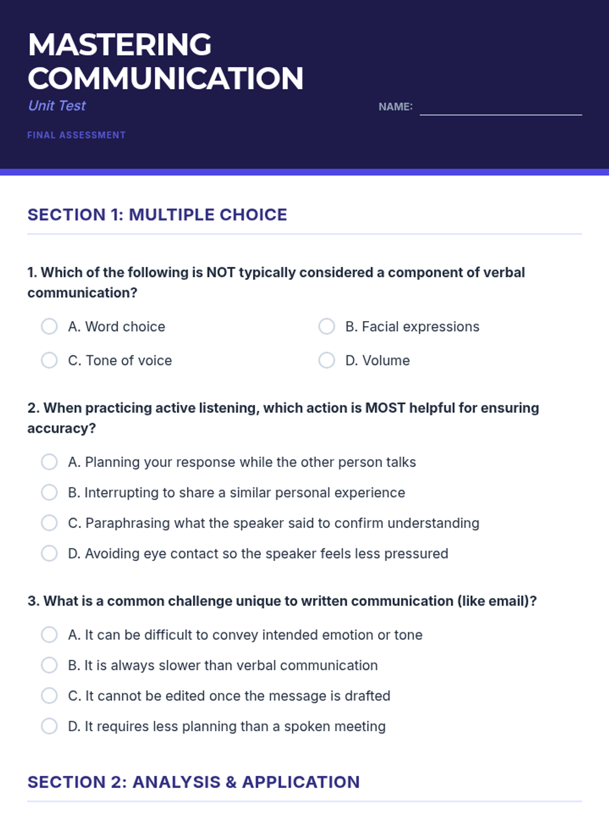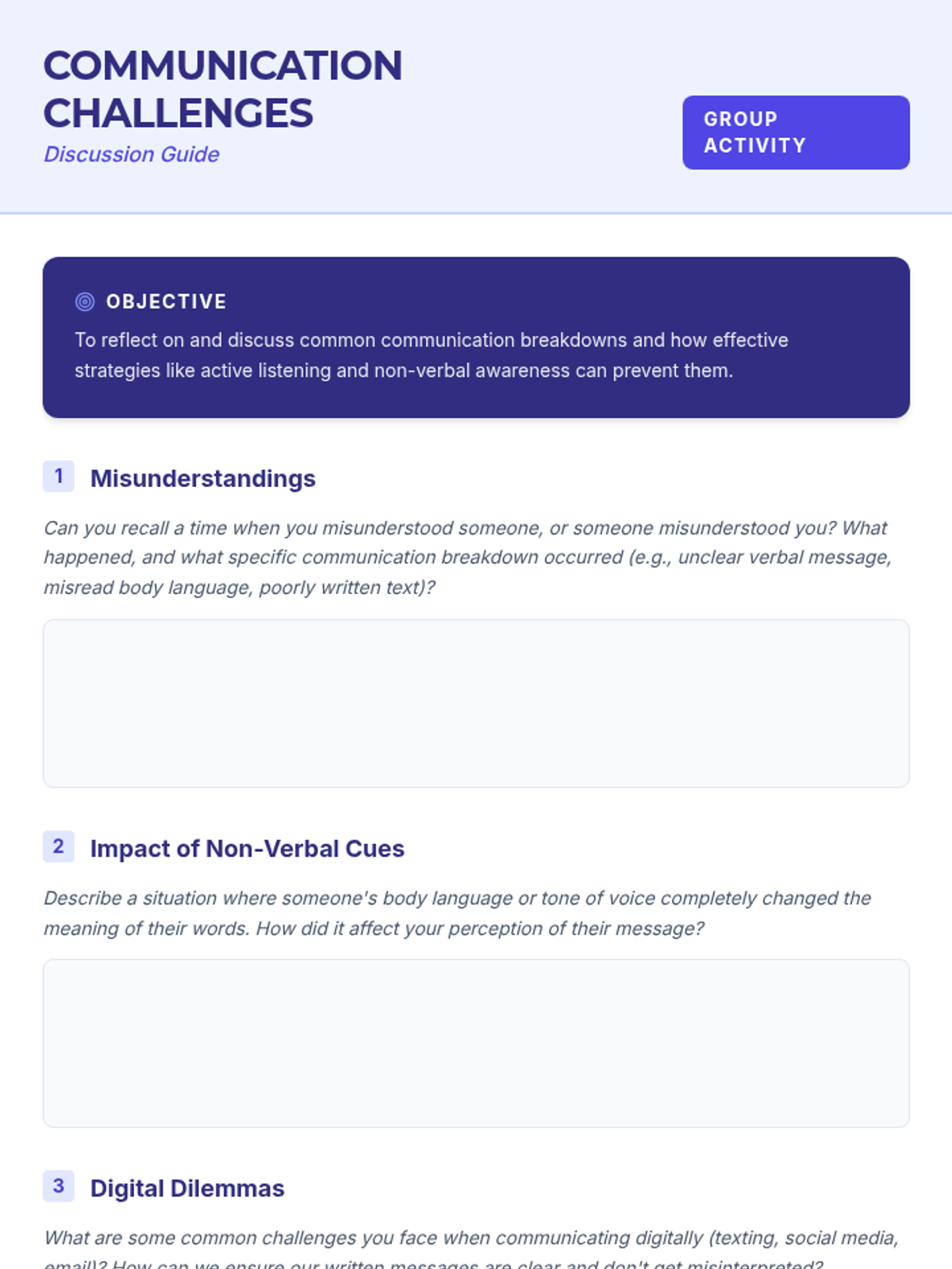 A 60-minute lesson empowering students with verbal, non-verbal, and written communication skills essential for academic and professional success.