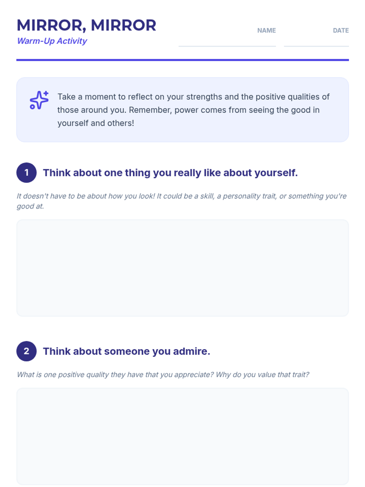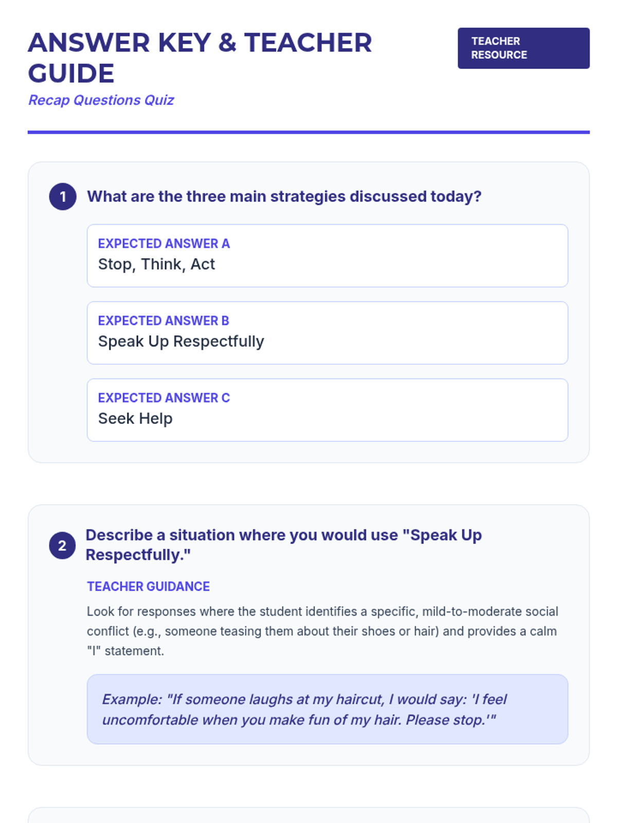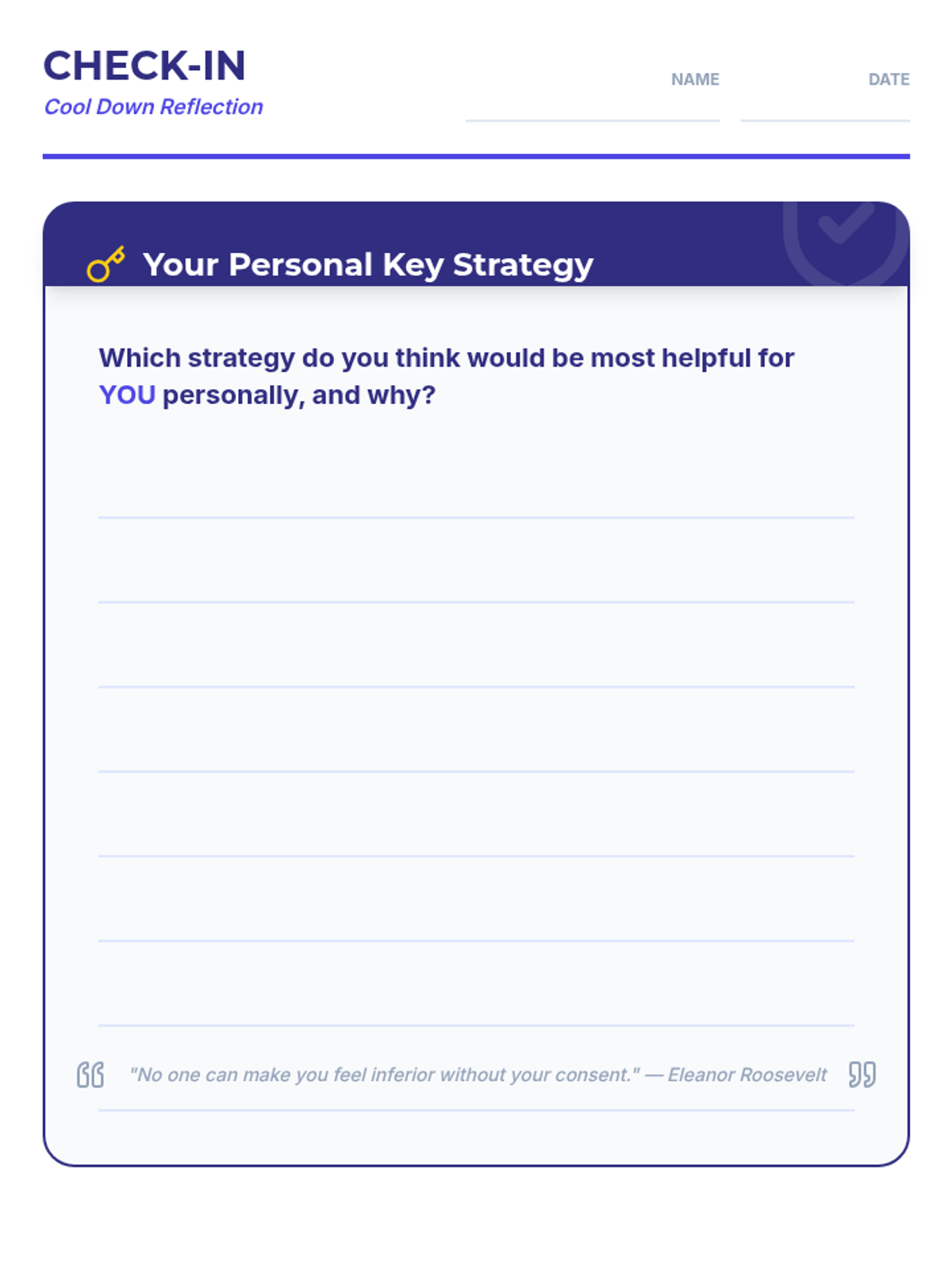 A 30-minute Tier 2 lesson for 6th graders focused on managing reactions to body shaming and negative comments. Students learn three key strategies—Stop, Think, Act; Speak Up Respectfully; and Seek Help—to build resilience and foster a respectful school environment.