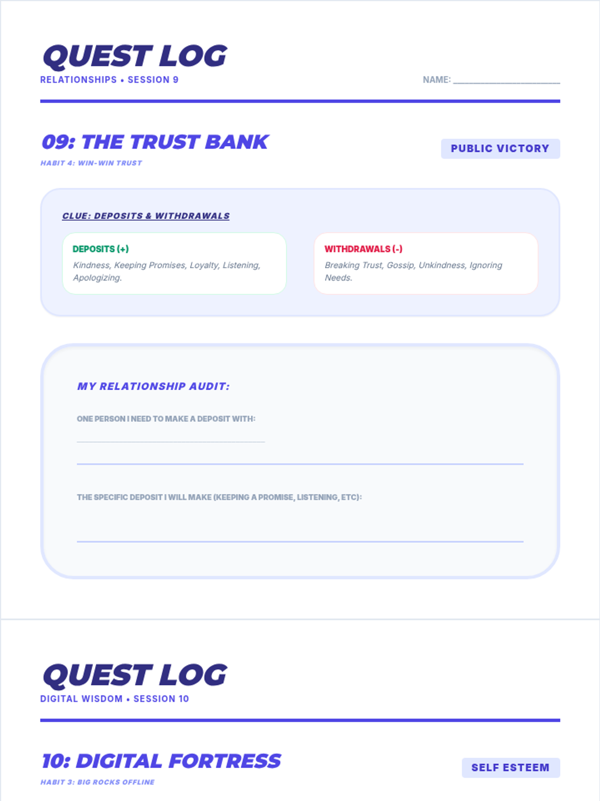 Finalizes skills with conflict resolution strategies (Stop-Drop-Solve) and long-term goal planning.