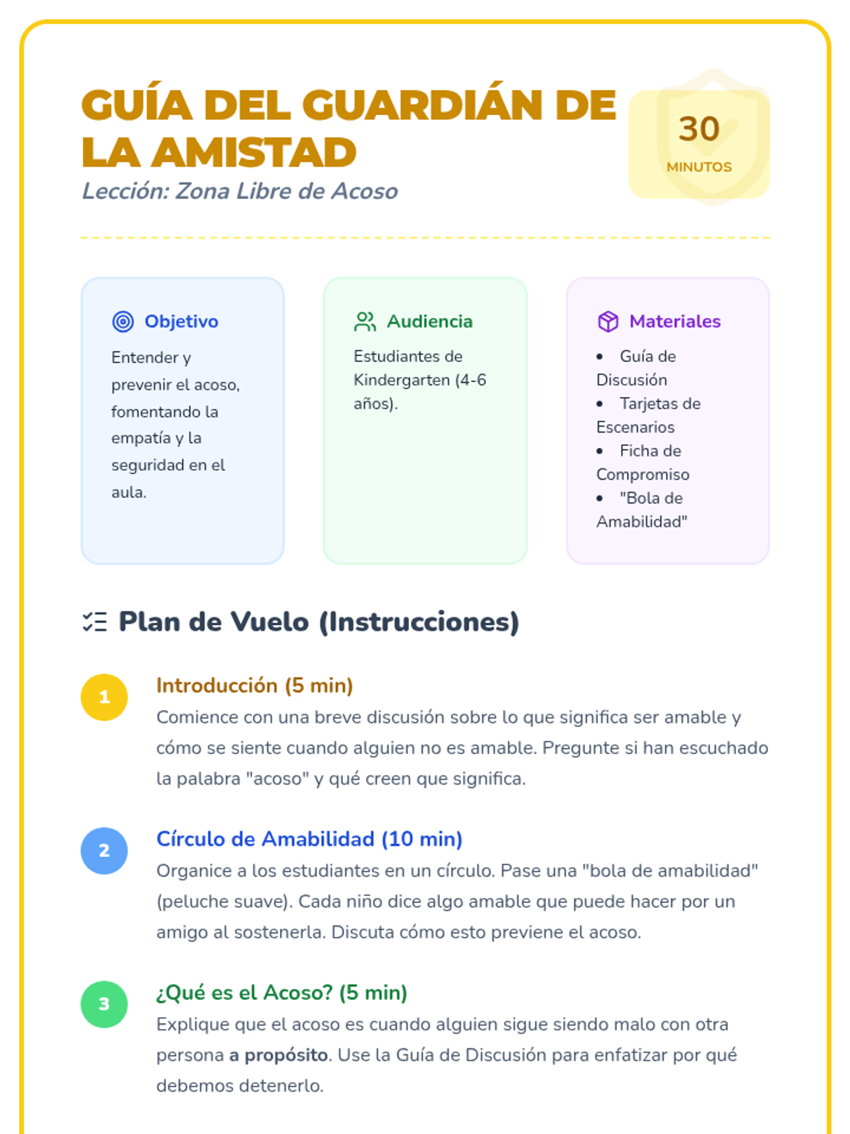 Esta lección introduce a los estudiantes de kindergarten al concepto de acoso a través de juegos interactivos y discusiones. Los estudiantes aprenderán a identificar comportamientos de acoso y entenderán la importancia de enfrentarse a ellos de manera segura.
