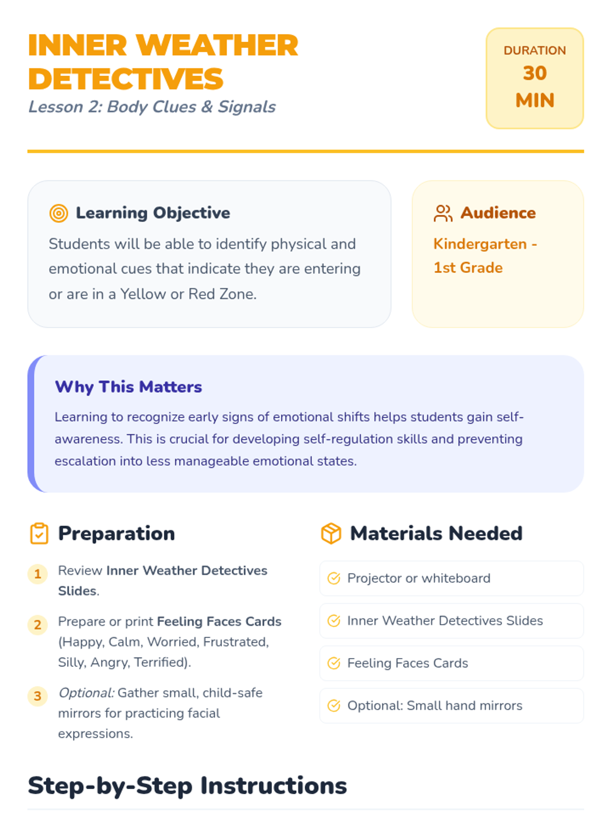 A 30-minute professional development session for preschool and K-8 staff focusing on restorative circles, affective statements, and re-entry reflection tools.