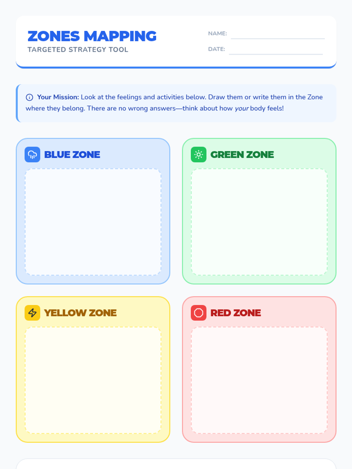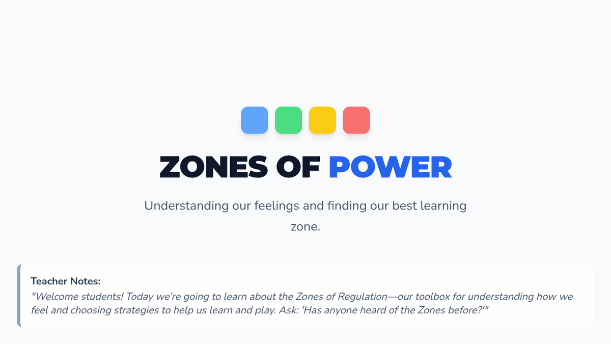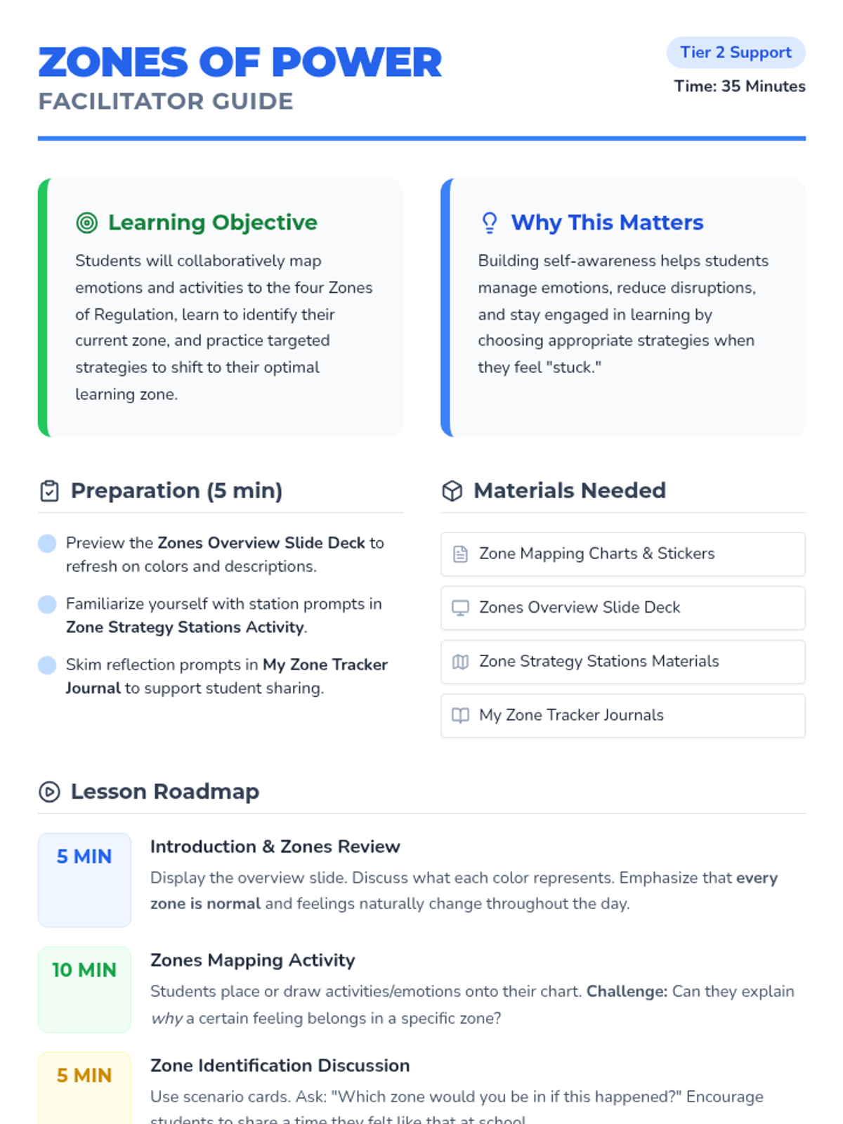 A 35-minute Tier 2 small-group lesson for 2nd graders to explore the Zones of Regulation, identify emotional states, and practice self-regulation strategies.