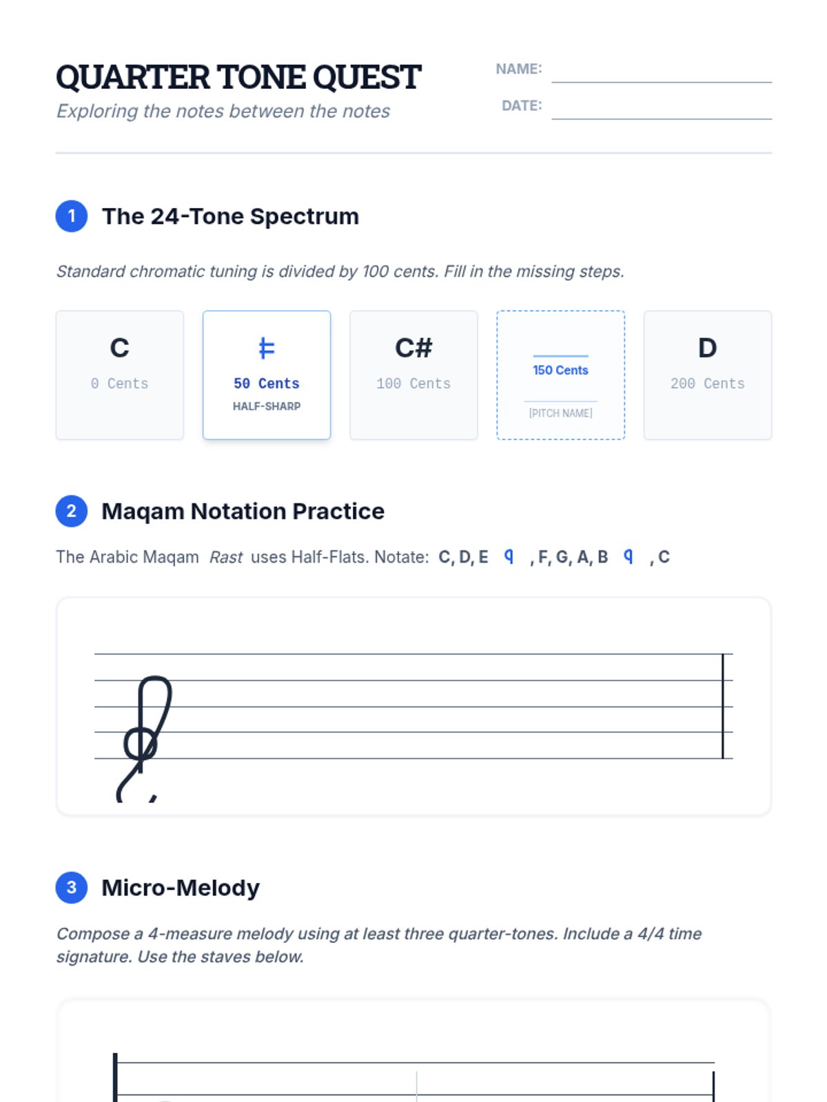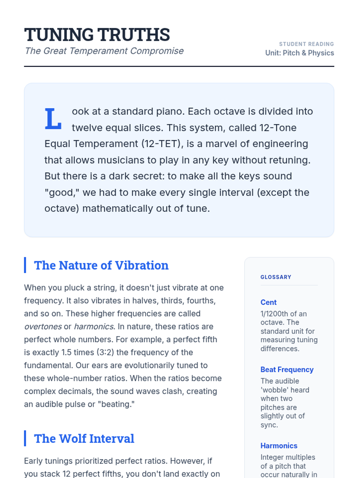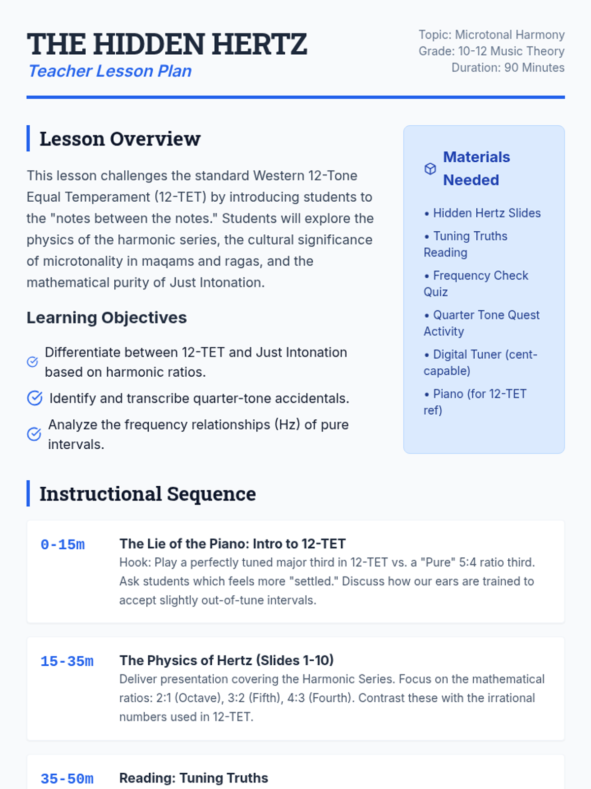 An advanced exploration of microtonal music, covering the physics of pitch, tuning systems beyond 12-TET, and practical experimentation with quarter-tones and just intonation.
