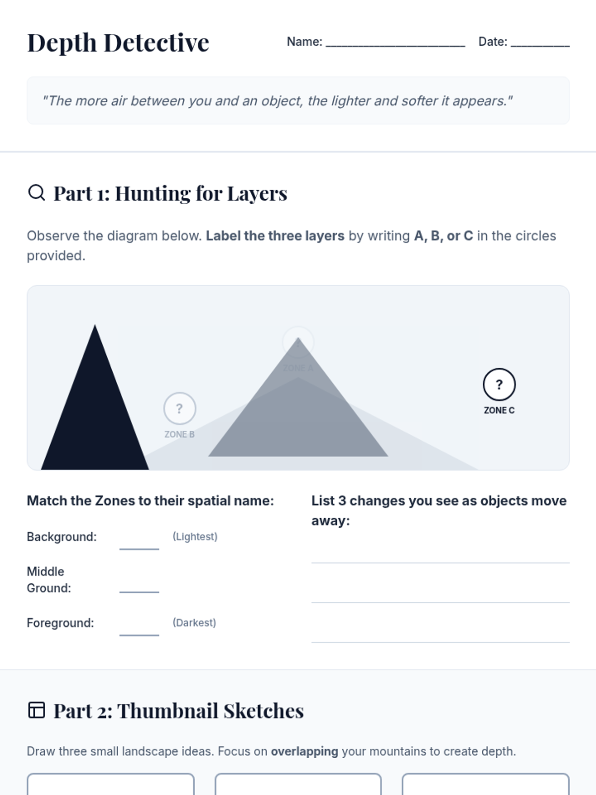 A lesson designed to help students analyze and discuss visual art using specific vocabulary and sentence stems focused on color, perspective, design, lines, and detail.