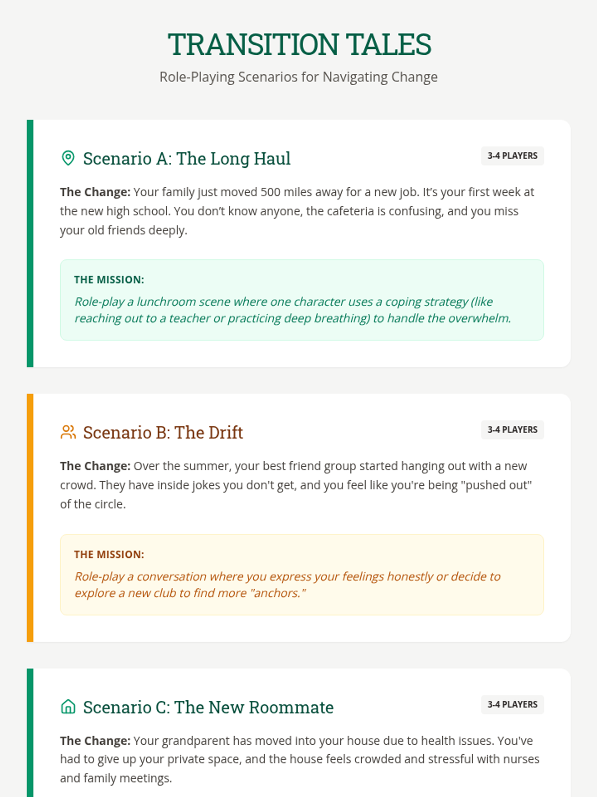 Counseling & Life SkillsSelf-AwarenessBasic Emotion RecognitionComplex Emotion IdentificationEmotional Nuance & Mixed FeelingsBuilding Positive Self-ImageRecognizing Strengths & Growth AreasAccurate Self-AssessmentPersonal Values IdentificationCultural & Individual Identity ExplorationValues-Based Decision MakingSelf-ManagementStop-and-Think StrategiesDelaying GratificationIndependent Impulse ManagementIdentifying Stress TriggersShort-Term Goal SettingSMART Goals DevelopmentGoal Monitoring & AdjustmentBuilding Perseverance & ResilienceInternal Motivation DevelopmentComprehensive Stress Reduction PlanningSocial AwarenessRecognizing Others' FeelingsDemonstrating EmpathyRespecting Individual DifferencesUnderstanding Cultural DiversityComplex Empathetic ResponsesMultiple Viewpoint ConsiderationMulti-Perspective AnalysisChallenging Stereotypes & BiasRelationship SkillsActive ListeningClear Verbal & Nonverbal CommunicationBuilding Positive FriendshipsWorking Cooperatively in GroupsCommunicating Personal BoundariesRespecting Others' BoundariesAssertive ExpressionPeaceful Problem-SolvingContributing to Team GoalsComplex Conflict NavigationMediation & NegotiationHealthy Romantic RelationshipsResponsible Decision-MakingDaily Problem IdentificationBrainstorming Multiple SolutionsEvaluating Pros & ConsRecognizing Risks & ConsequencesApplying Ethical FrameworksInformed Risk-Benefit DecisionsRoot Cause AnalysisMindfulnessMindful BreathingBody Scan MeditationDaily Mindfulness ApplicationDaily Self-Care RoutinesBalancing Life DemandsAdvocating for Wellness NeedsMental Health SupportUnderstanding Anxiety SymptomsWorry Management StrategiesProgressive Muscle RelaxationRecognizing Depression SignsBuilding Mood-Supporting RoutinesBehavioral Activation for MoodUnderstanding Grief StagesHealthy Grief CopingCreative Expression of LossBehavioral SupportDaily Check-In ProceduresDaily Goal Setting & ReviewRecognizing Escalation Warning SignsRequesting Breaks & SupportSelf-Calming During DistressUnderstanding Positive ReinforcementToken Economy ImplementationBehavior Chart TrackingAnalyzing Behavior PatternsIdentifying Antecedents & ConsequencesDetermining Behavior FunctionFunction-Based InterventionsIndividualized Behavior ContractsData-Driven Behavior AdjustmentTherapeutic ApproachesThoughts-Feelings-Behaviors ConnectionRecognizing Thinking PatternsChallenging Negative ThoughtsPositive Self-Talk PracticeThought Record TrackingAdvanced Cognitive RestructuringComprehensive CBT PlansBehavioral Activation TechniquesBuilding Positive ExperiencesExposure Hierarchies for AnxietyPresent-Moment AwarenessNon-Judgmental ObservationSelf-Soothing & DistractionComplex Emotion LabelingReducing Emotional Vulnerability (PLEASE)DEAR MAN CommunicationGIVE Skills for RelationshipsFAST Skills for Self-RespectRadical Acceptance PracticeCrisis Survival Skills (TIPP)Understanding Trauma EffectsTrauma Responses & TriggersIdentifying Trauma FeelingsGrounding TechniquesRegulation During Trauma DistressSafe Place VisualizationProcessing Through NarrativeDeveloping Trauma StoryPersonalized Safety PlanningGroup SupportTurn-Taking & SharingGroup Conversation SkillsSharing in Supportive EnvironmentLearning from Similar ChallengesBuilding Community & BelongingNavigating Peer RelationshipsGroup Skill PracticeGroup Mental Health EducationStress & Anxiety UnderstandingCrisis Support & SafetyKnowing When to Seek HelpIdentifying Mental Health CrisesGrounding During CrisisUsing Crisis HotlinesBuilding Support NetworksAccessing Mental Health ResourcesWarning Signs & Coping StrategiesDeveloping Personal Safety PlansUnderstanding Suicide Warning SignsGatekeeper Skills for PeersDigital LiteracySocial MediaTechnology BasicsProductivity ToolsInternet and Online ResearchWeb Design and PublishingDigital CitizenshipOnline Safety and PrivacyEmerging TechnologiesFinancial LiteracyMaking Financial DecisionsBanking and AccountsConsumer SkillsSaving and InvestingCredit and DebtEmployment and IncomeTaxesInsuranceMajor PurchasesEconomic ConceptsFinancial PlanningCollege & Post-Secondary PlanningCareer ExplorationUnderstanding Post-Secondary OptionsCollege Research & SelectionAdmission RequirementsCollege Application ProcessPersonal Statement WritingFAFSA CompletionScholarship Search & ApplicationsUnderstanding Student LoansContinuing Education PlanningInterview PreparationResearching EmployersCommon Interview QuestionsSTAR Method ResponsesProfessional Interview PresenceVirtual Interview SkillsInterview Follow-UpJob Search SkillsUnderstanding Job PostingsEffective Job Search StrategiesNetworking for OpportunitiesResume Writing BasicsAction Verbs & AchievementsTailoring Resumes to JobsCover Letter WritingProfessional ReferencesProfessional CommunicationBusiness Email EtiquettePhone & Voicemail ProfessionalismMeeting ParticipationPresentation SkillsProfessional Work EthicTime Management & ProductivityTeamwork & CollaborationAdaptability & FlexibilityProblem-Solving at WorkConstructive FeedbackWorkplace RightsUnderstanding Employment LawsPay & Benefits UnderstandingWorkplace SafetyAnti-Discrimination & Harassment