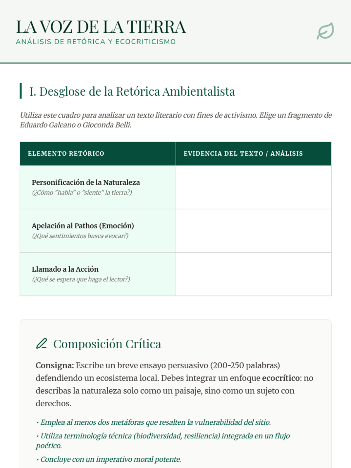 Introduction to Ecocriticism as a literary lens. Students analyze how literature serves as environmental activism through persuasive rhetoric and emotional appeal.