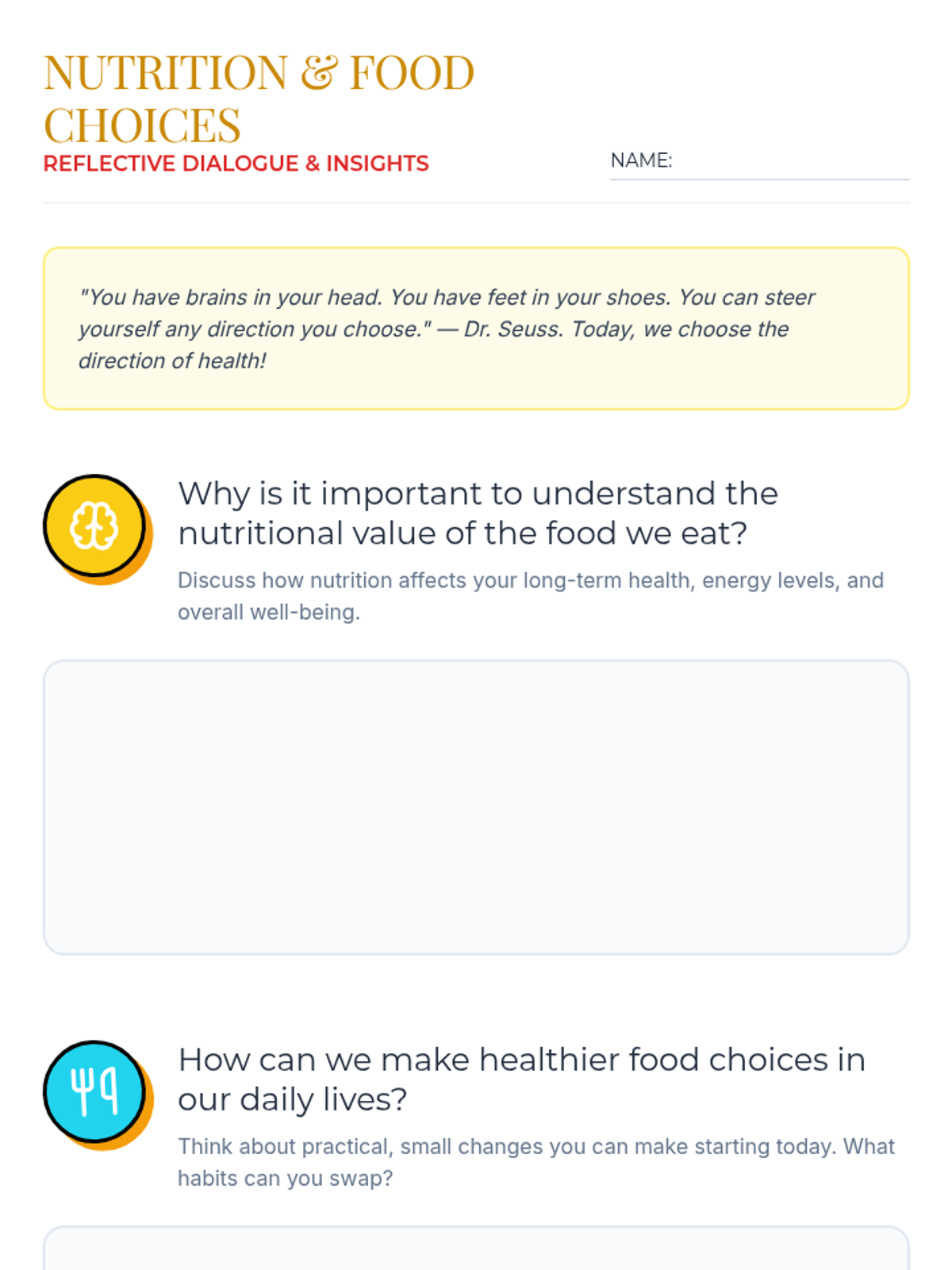 Focuses on identifying healthy food groups, reading simple food labels, and making informed nutritional choices for daily energy.