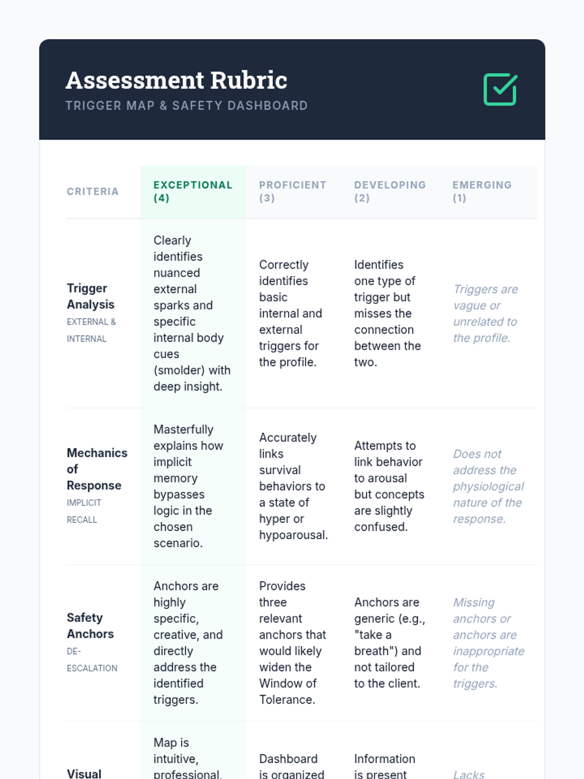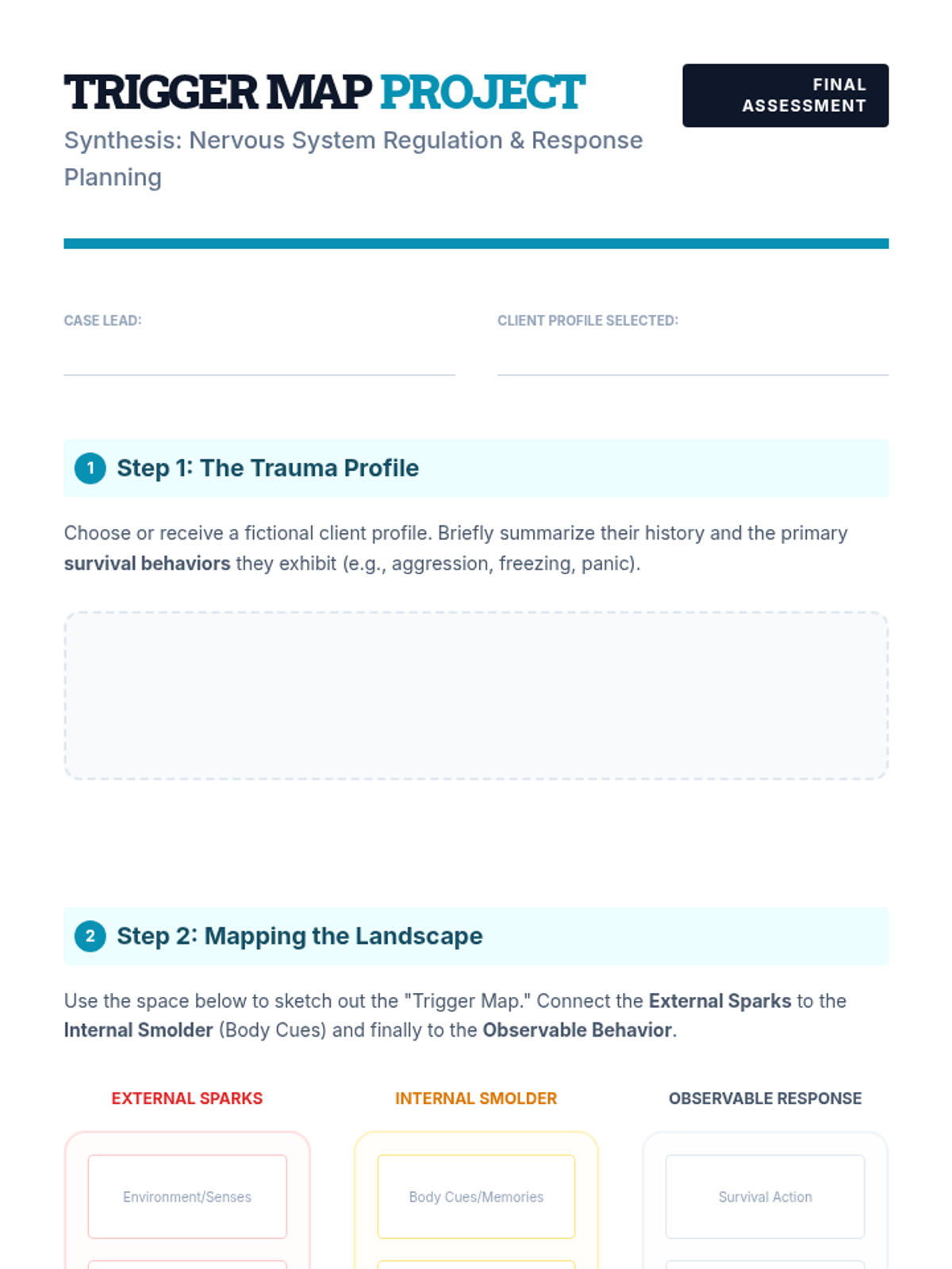 A culminating project where students create a 'Trigger Map' and a foundational safety plan for a hypothetical client profile.