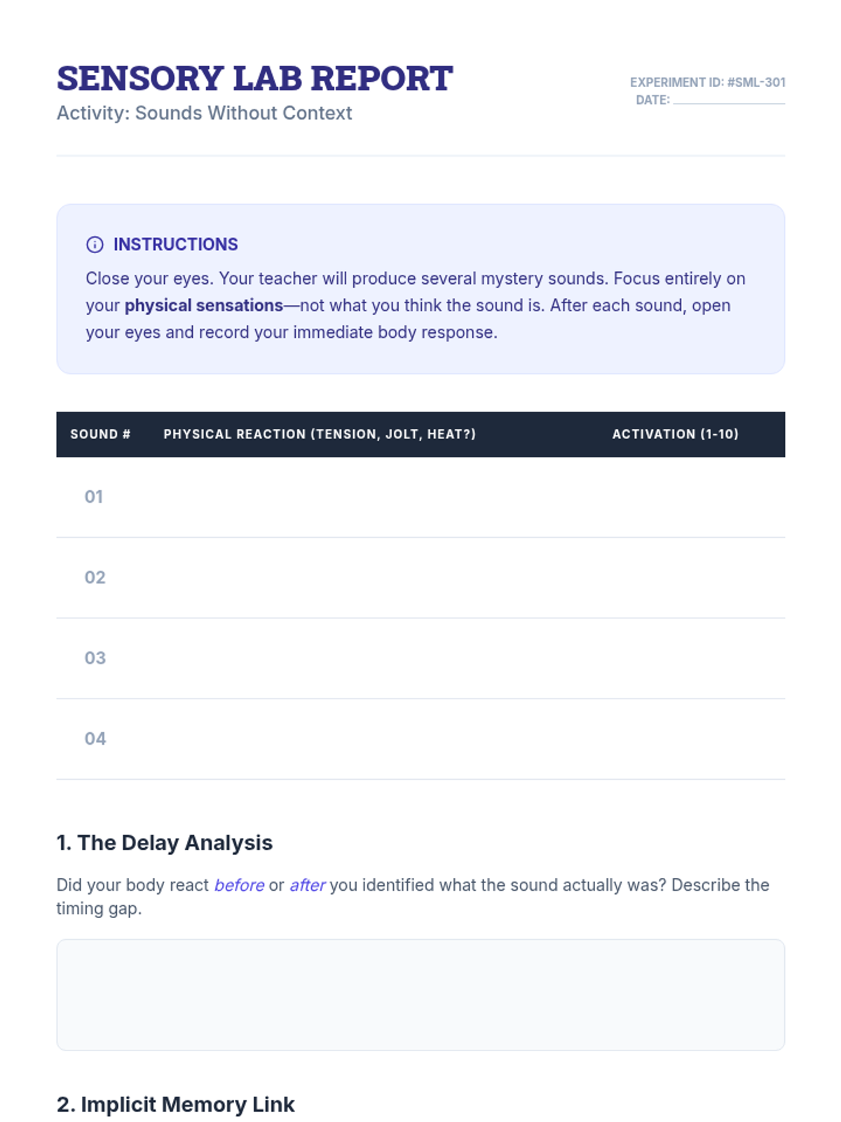 Students investigate how environmental factors (noise, light, crowding) can trigger physiological escalation. They conduct an audit of a classroom or common area to identify potential sensory triggers.