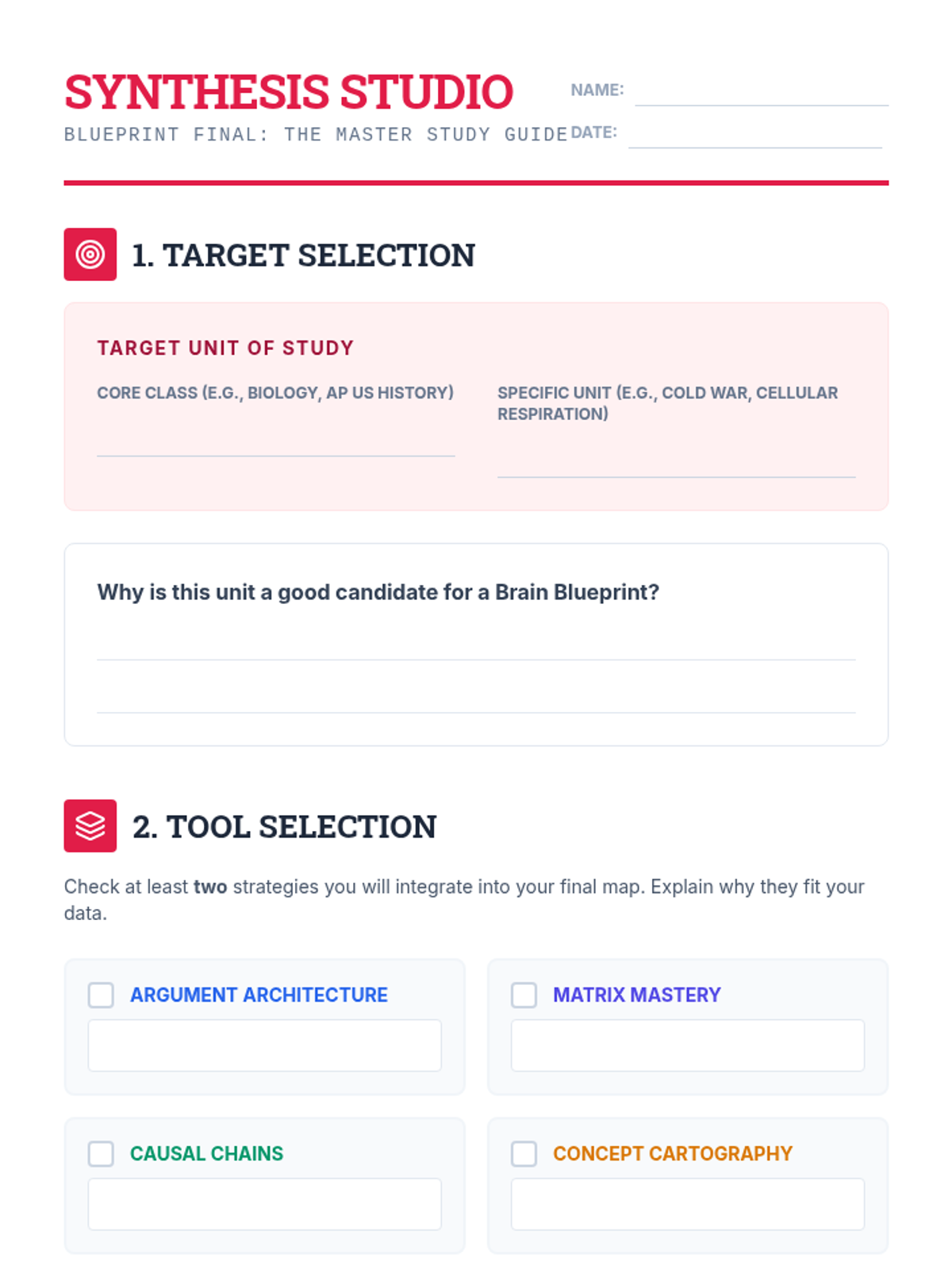 In this mastery-based project, students apply the entire workflow to a text from another class, producing a professional-grade study guide tailored to their specific learning style.