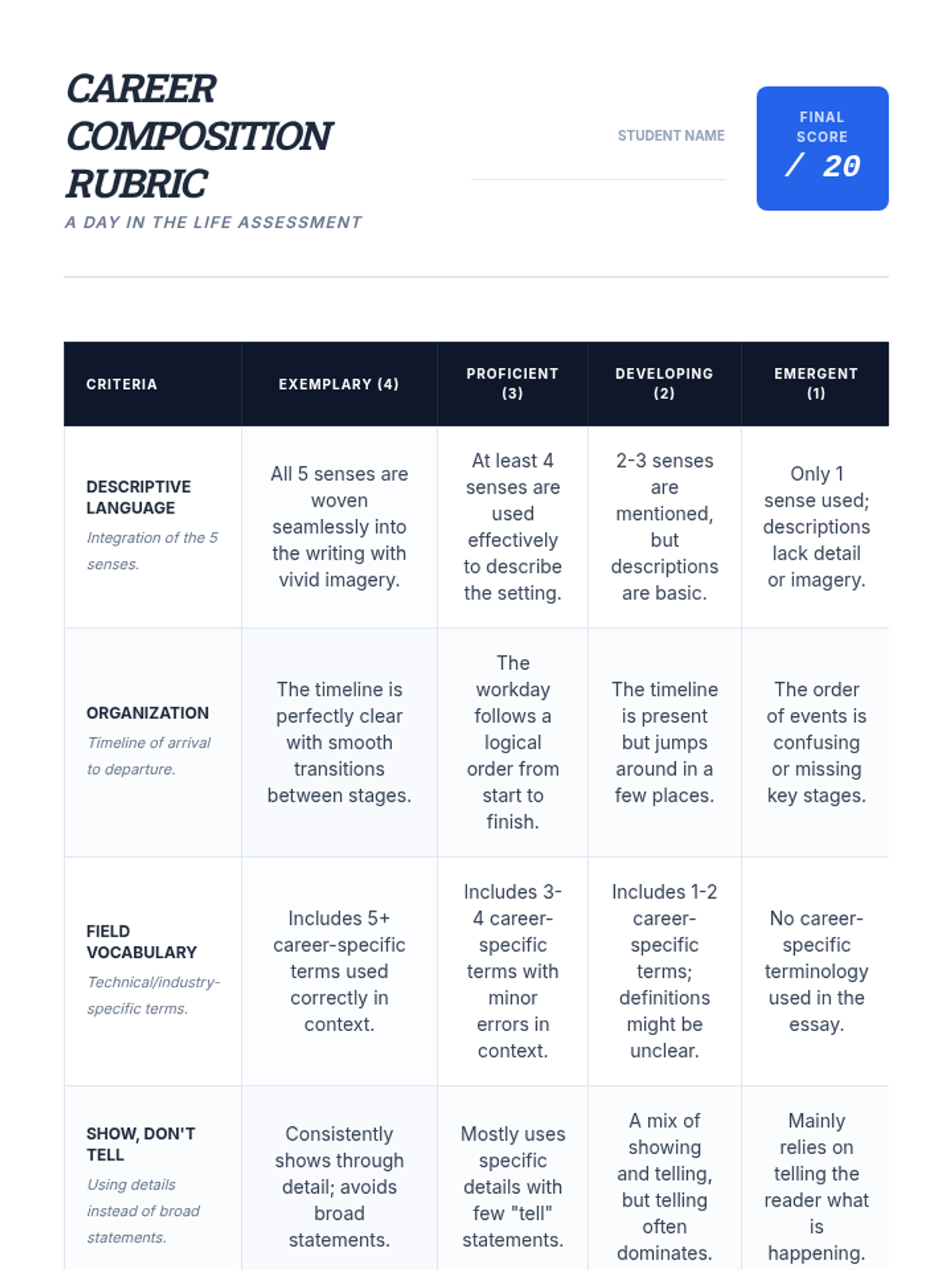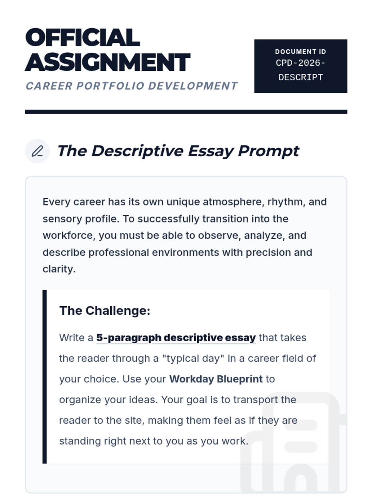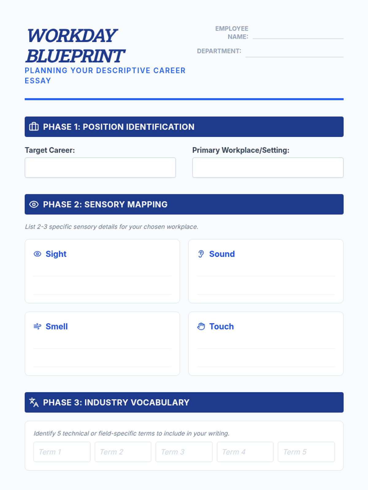 A comprehensive writing unit designed to help high school students develop descriptive language skills while exploring workplace transitions and career expectations.