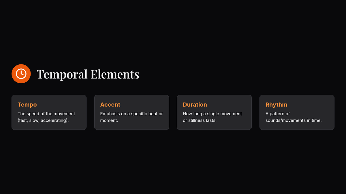 Focuses on the element of time, challenging students to manipulate tempo, accent, duration, and rhythm within movement phrases.