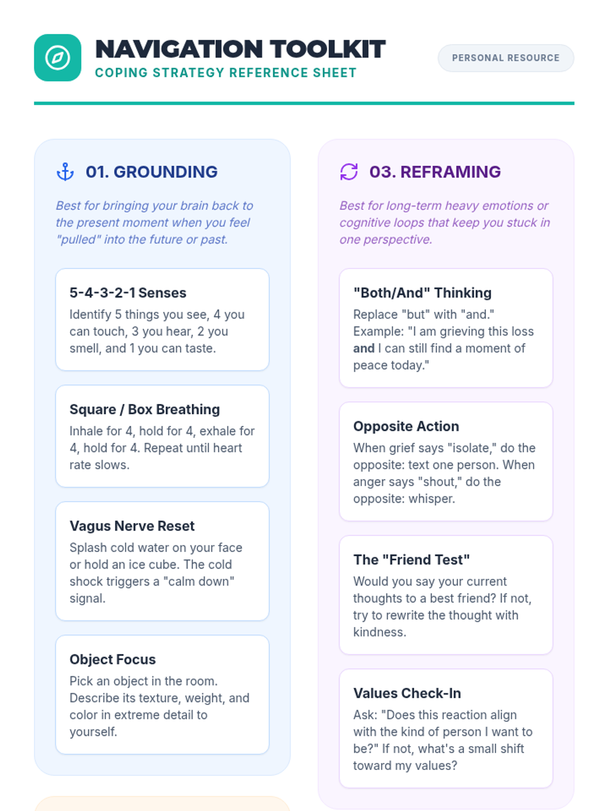 Creating a personalized coping plan and "safety shelter" for managing future emotional challenges.