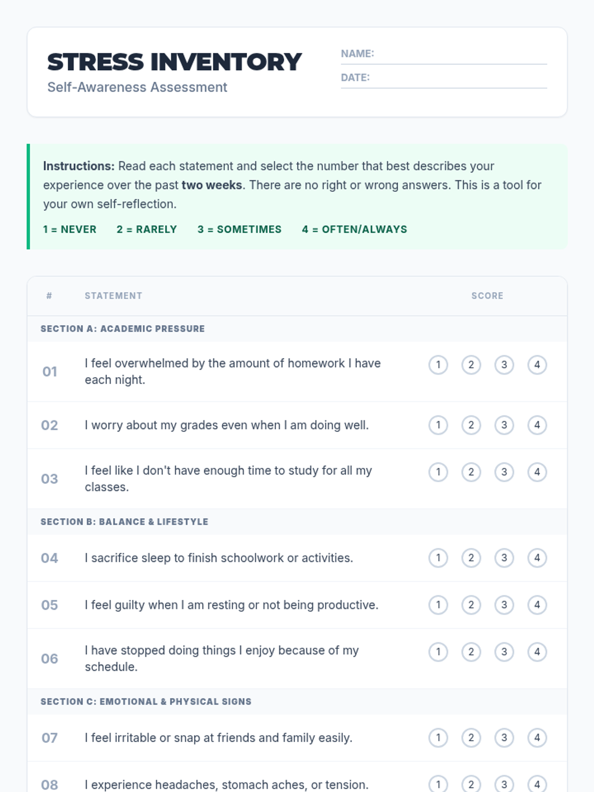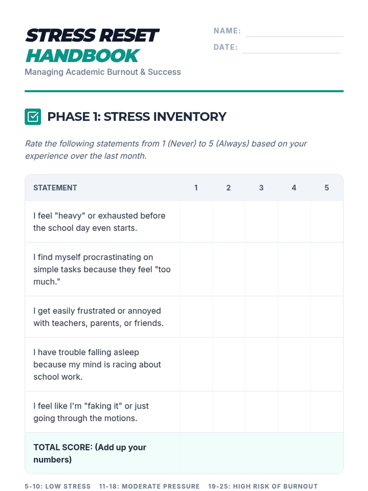 A comprehensive lesson on understanding stress, identifying personal triggers, and developing healthy coping mechanisms for high school students.