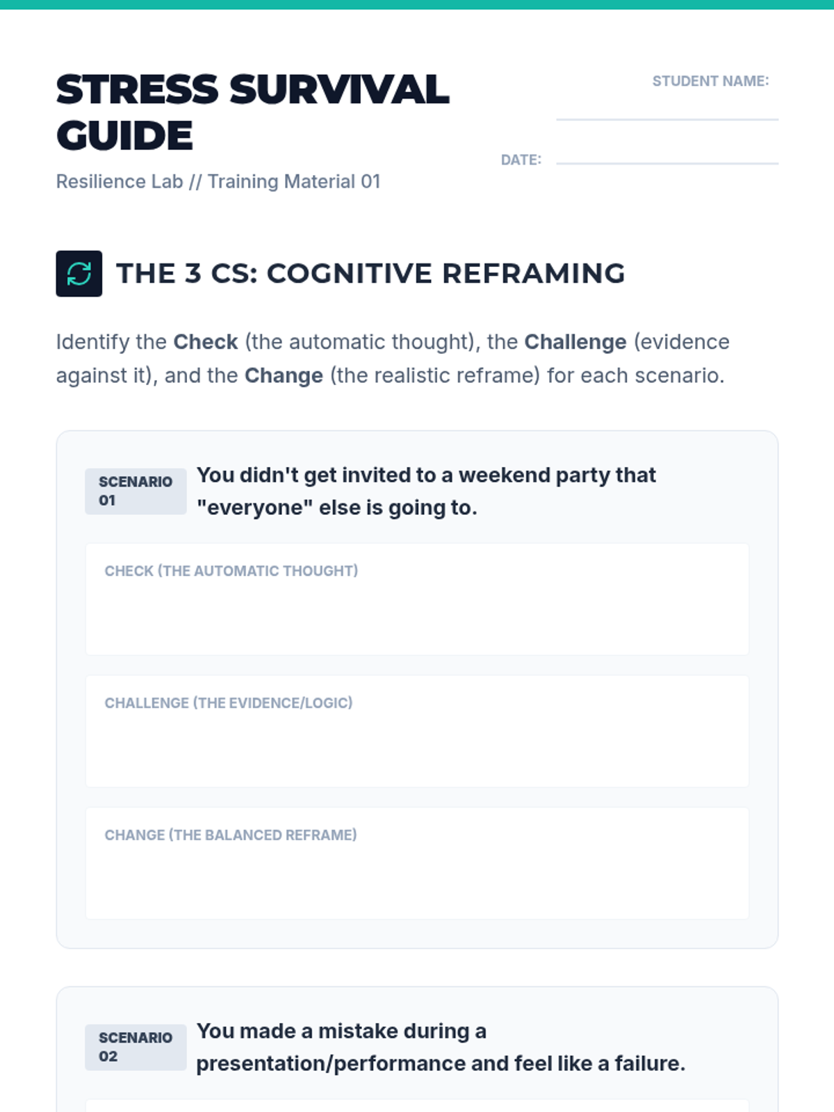 A comprehensive SEL lesson for high schoolers exploring the differences between stress and anxiety, featuring CBT coping tools, self-assessment, and stigma reduction strategies.