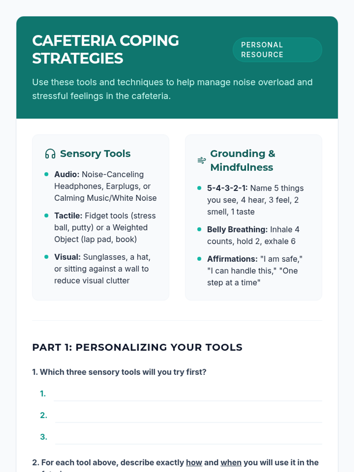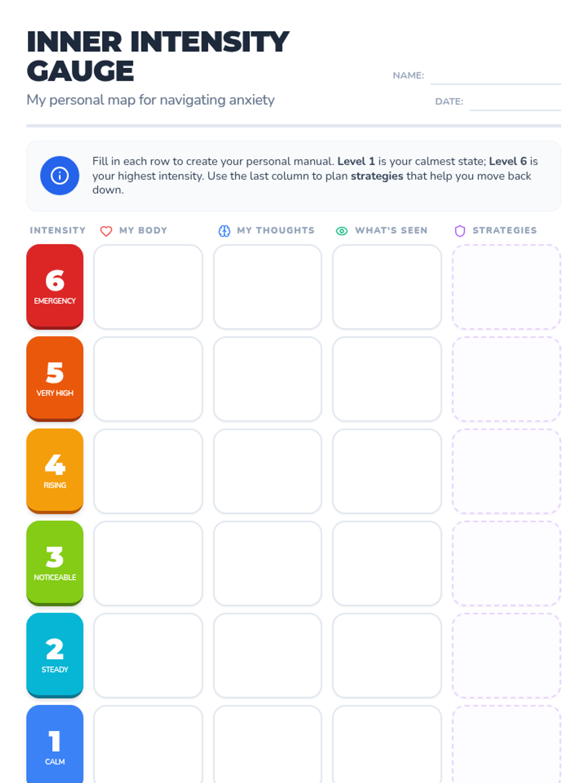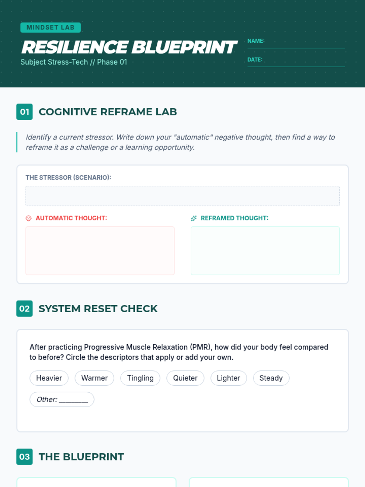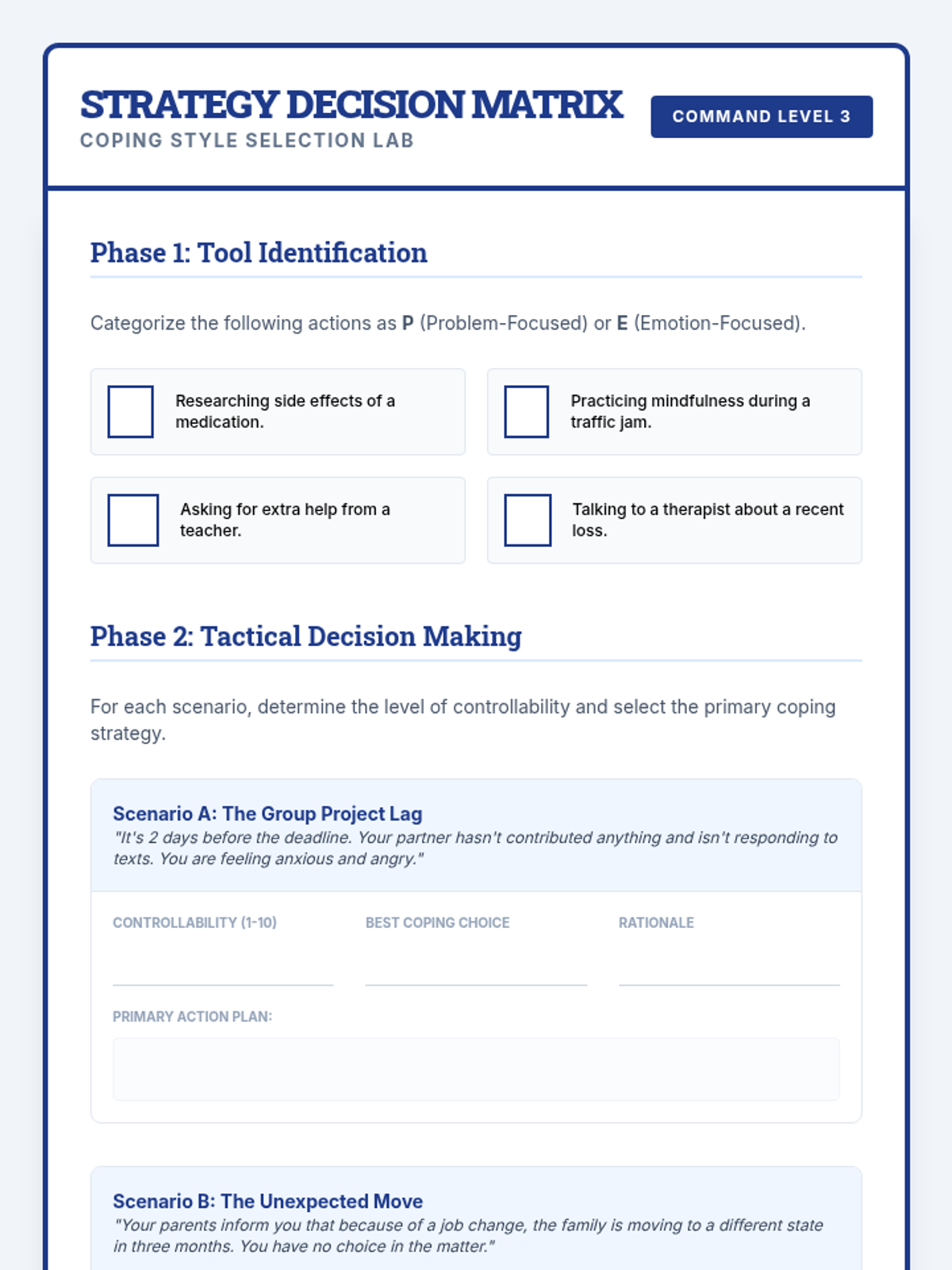 Coping Blueprint Worksheet