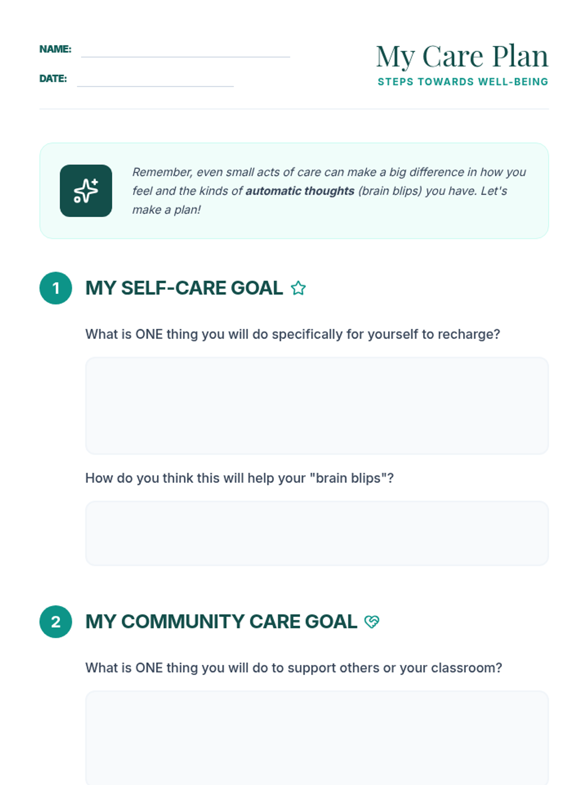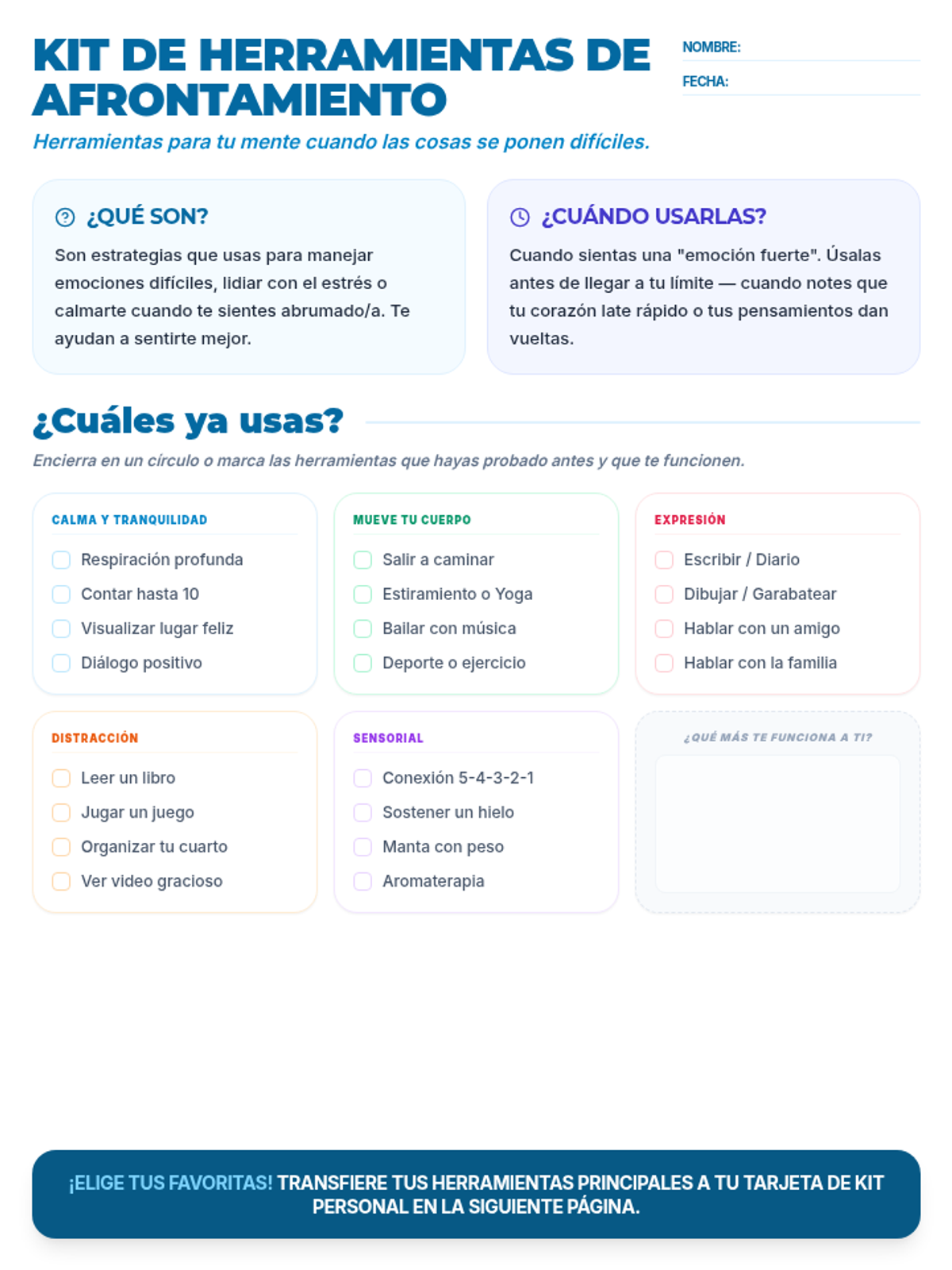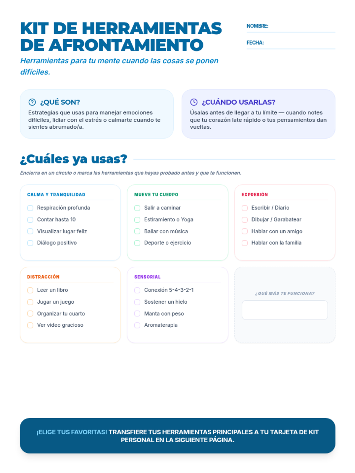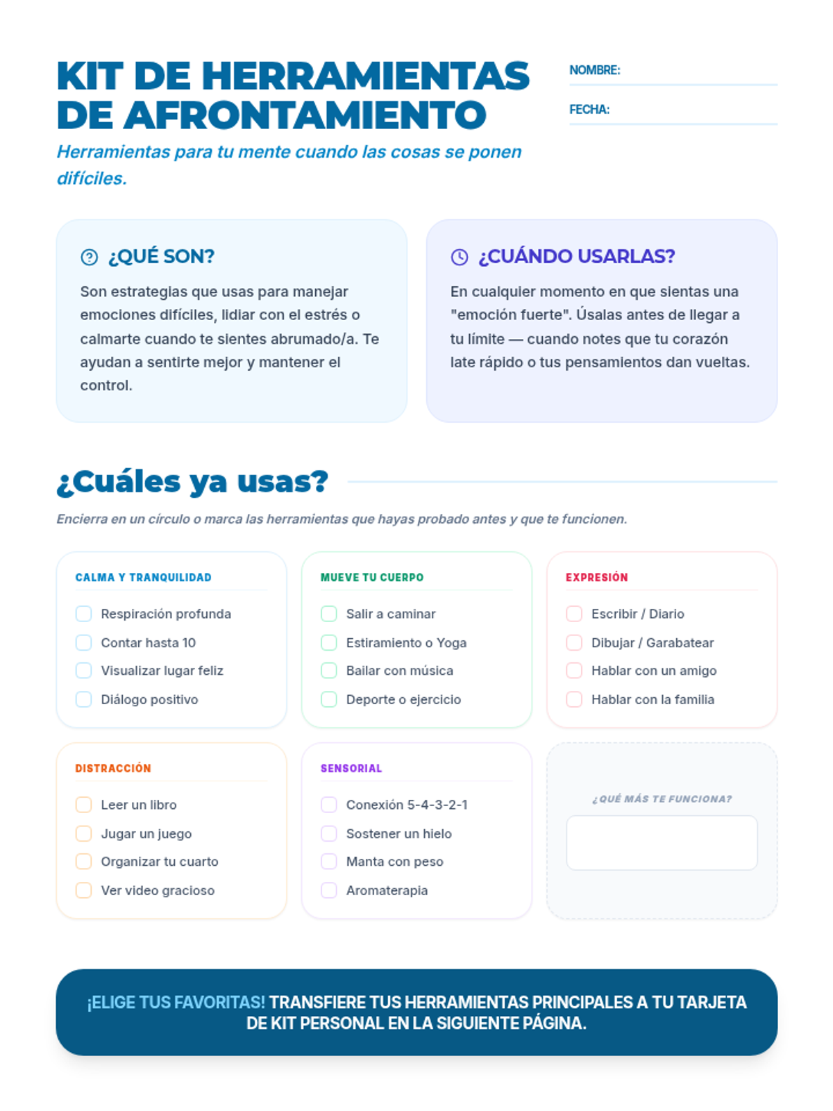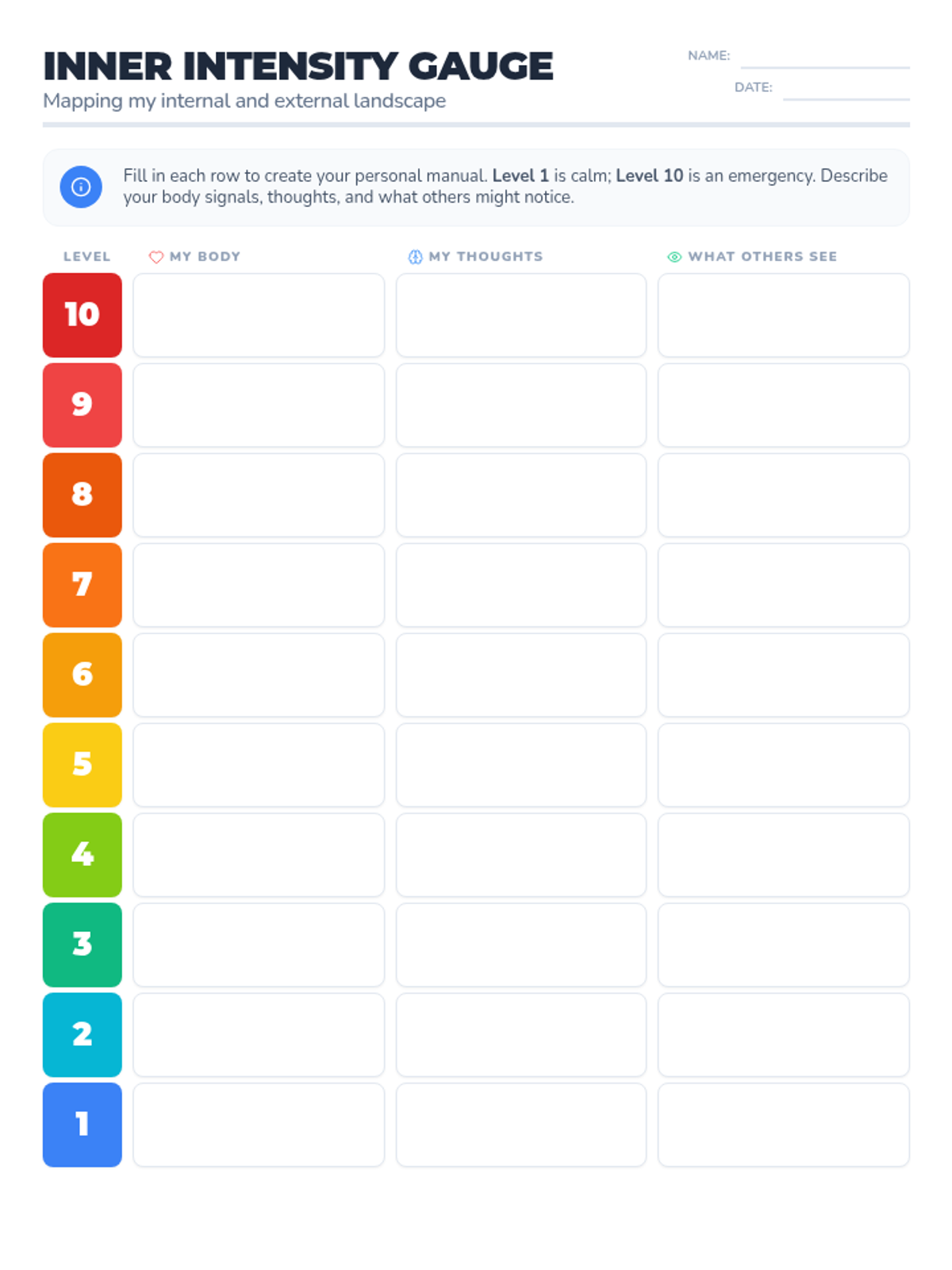 Coping Blueprint Worksheet