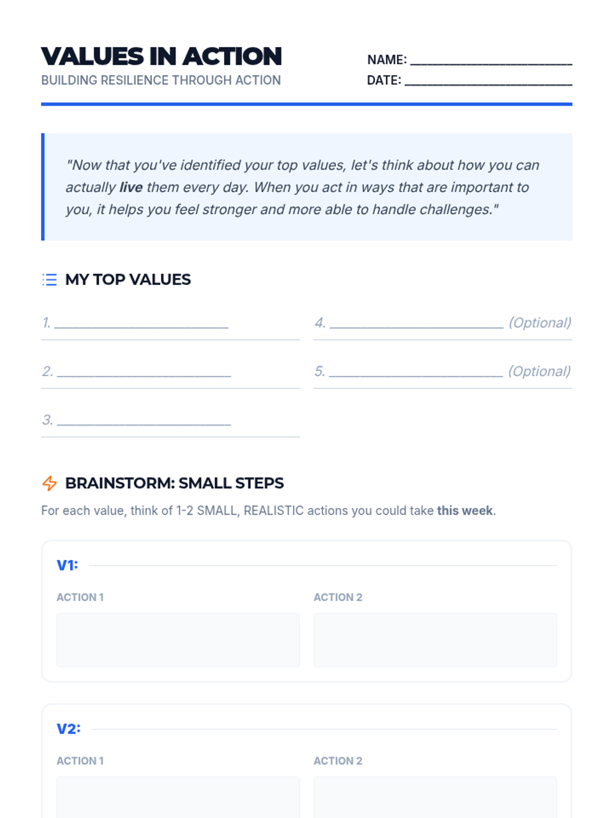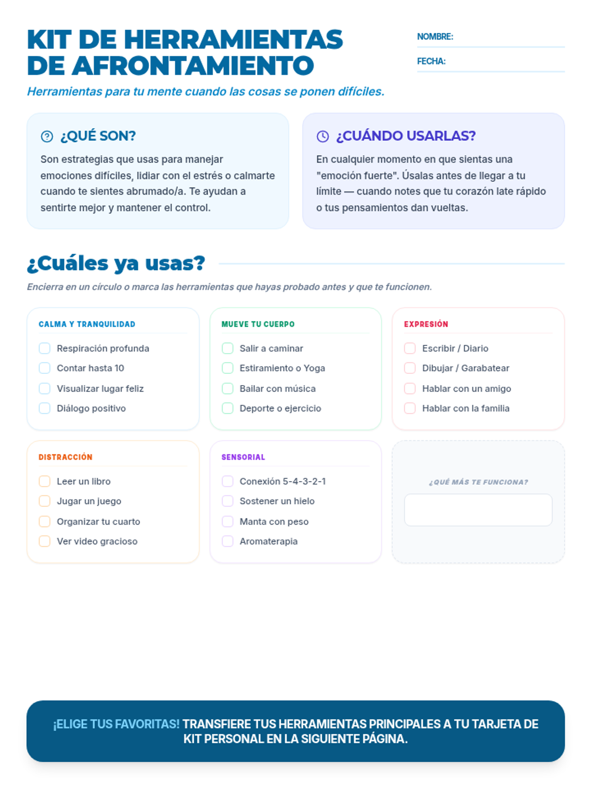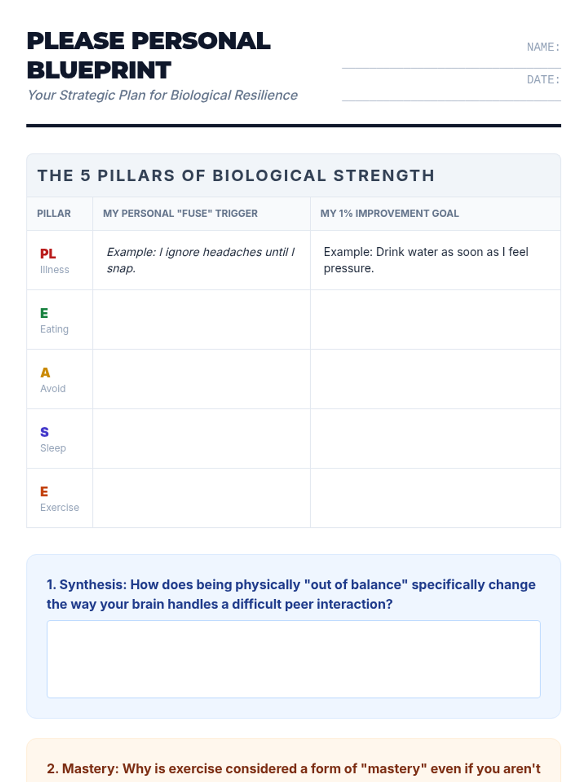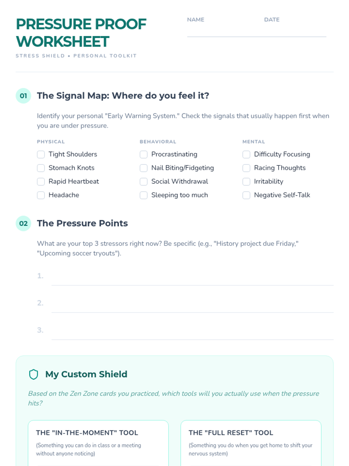 Coping Blueprint Worksheet