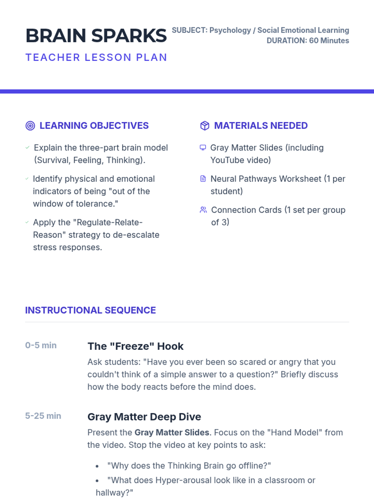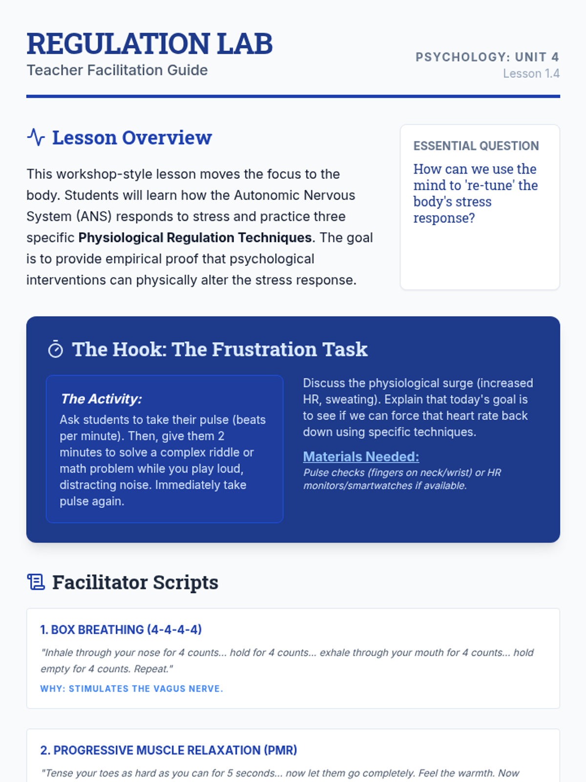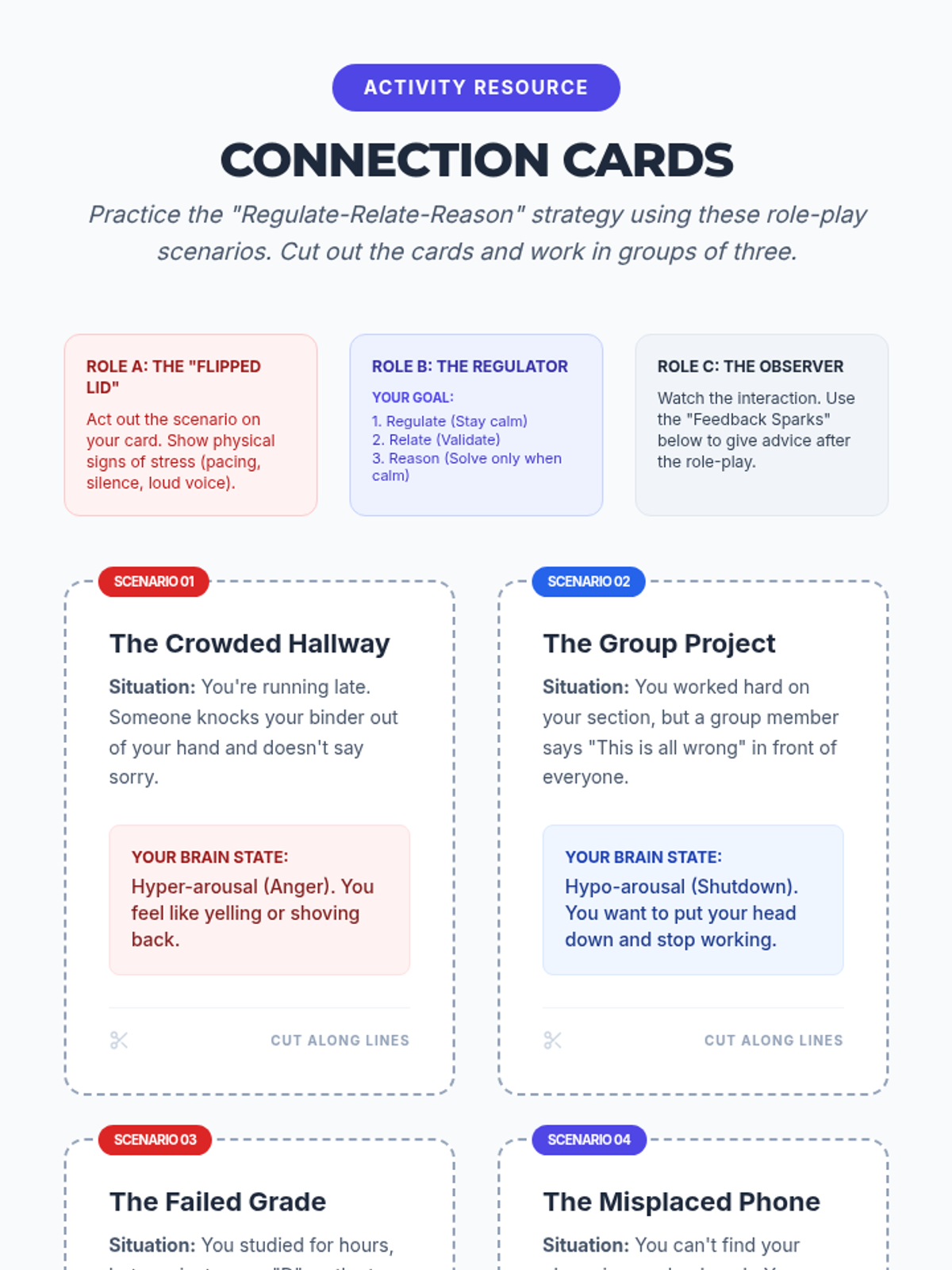 Focuses on physiological de-escalation through TIPP skills. Students learn about the 'Hot Brain' and practice techniques to regulate their nervous systems during conflict.