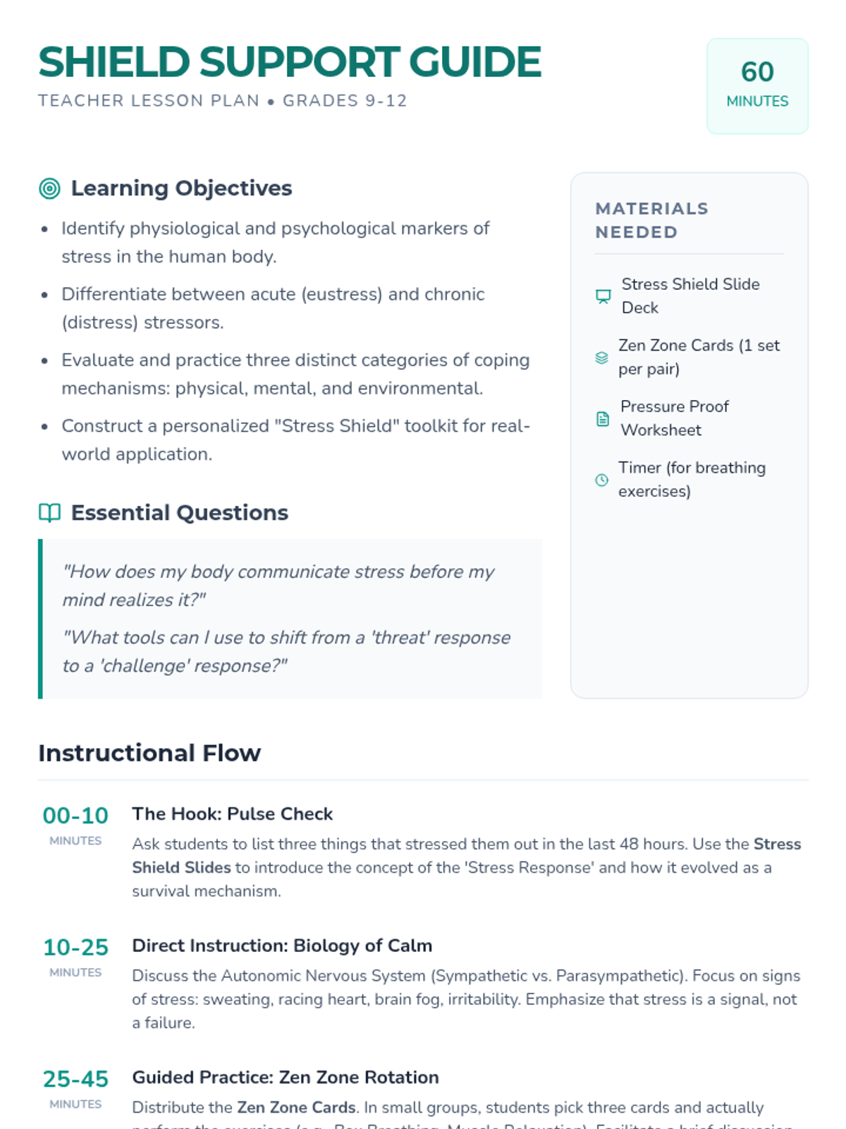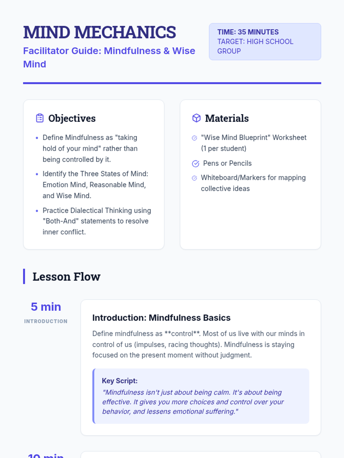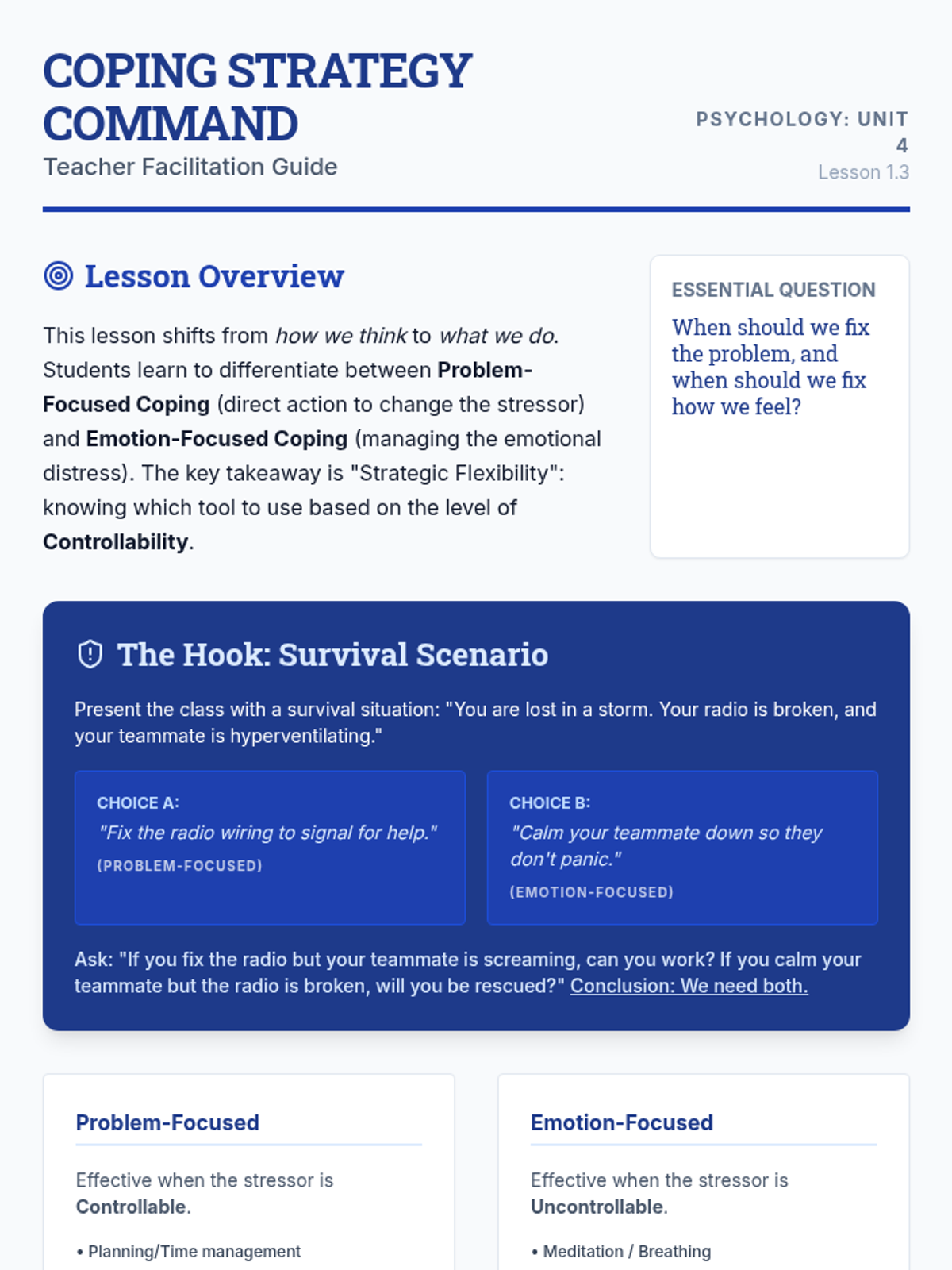Focuses on physiological de-escalation through TIPP skills. Students learn about the 'Hot Brain' and practice techniques to regulate their nervous systems during conflict.